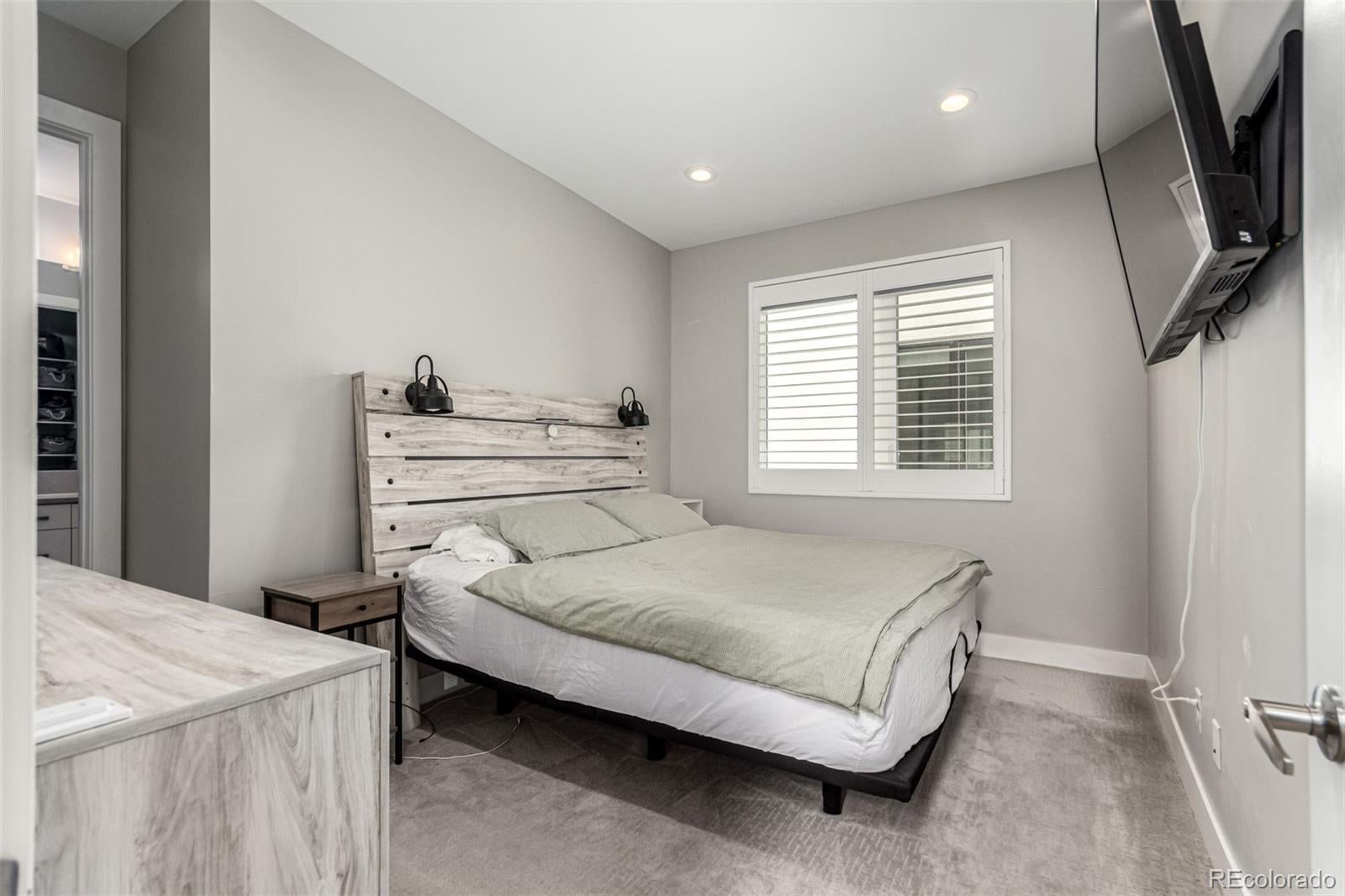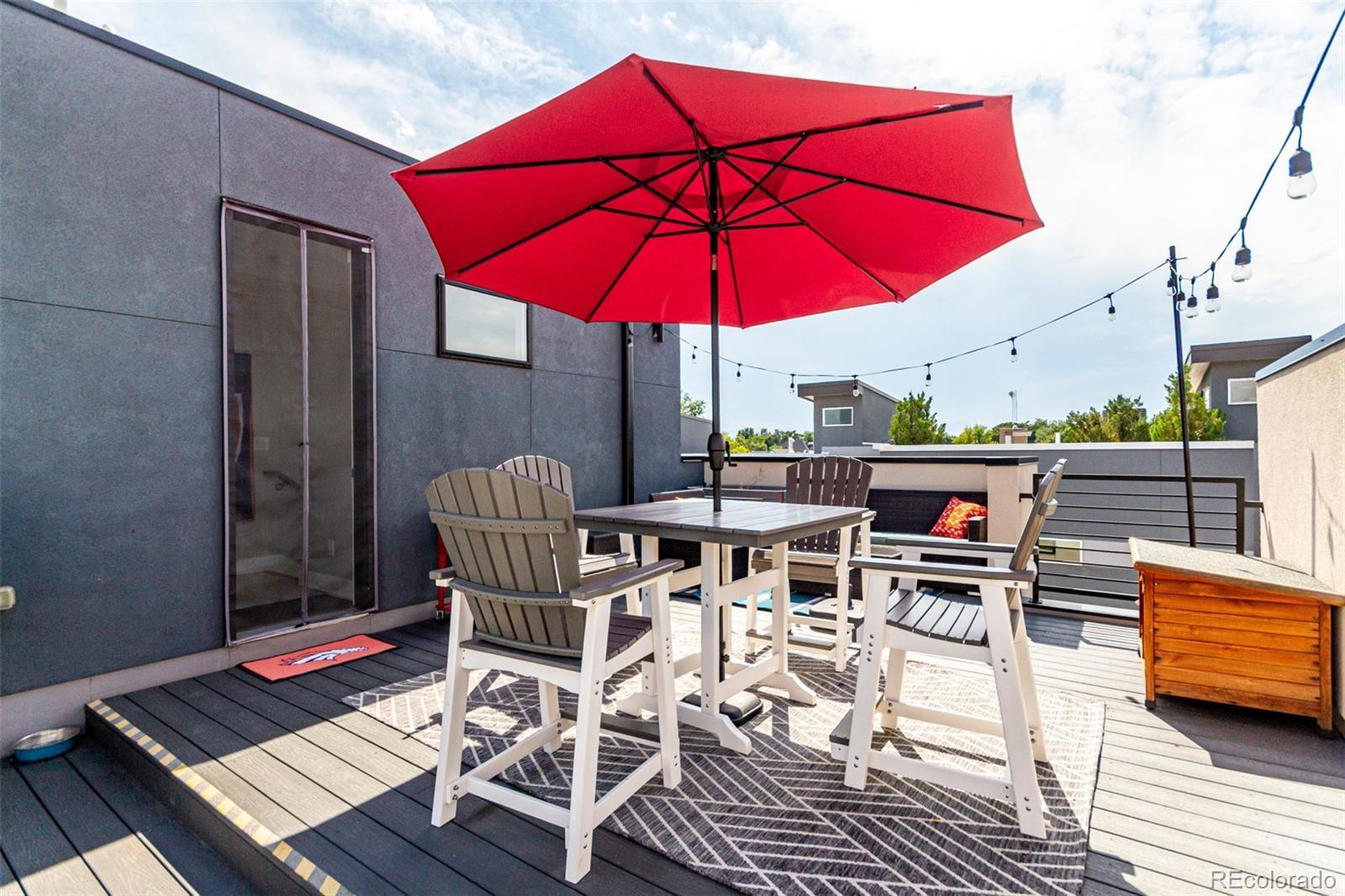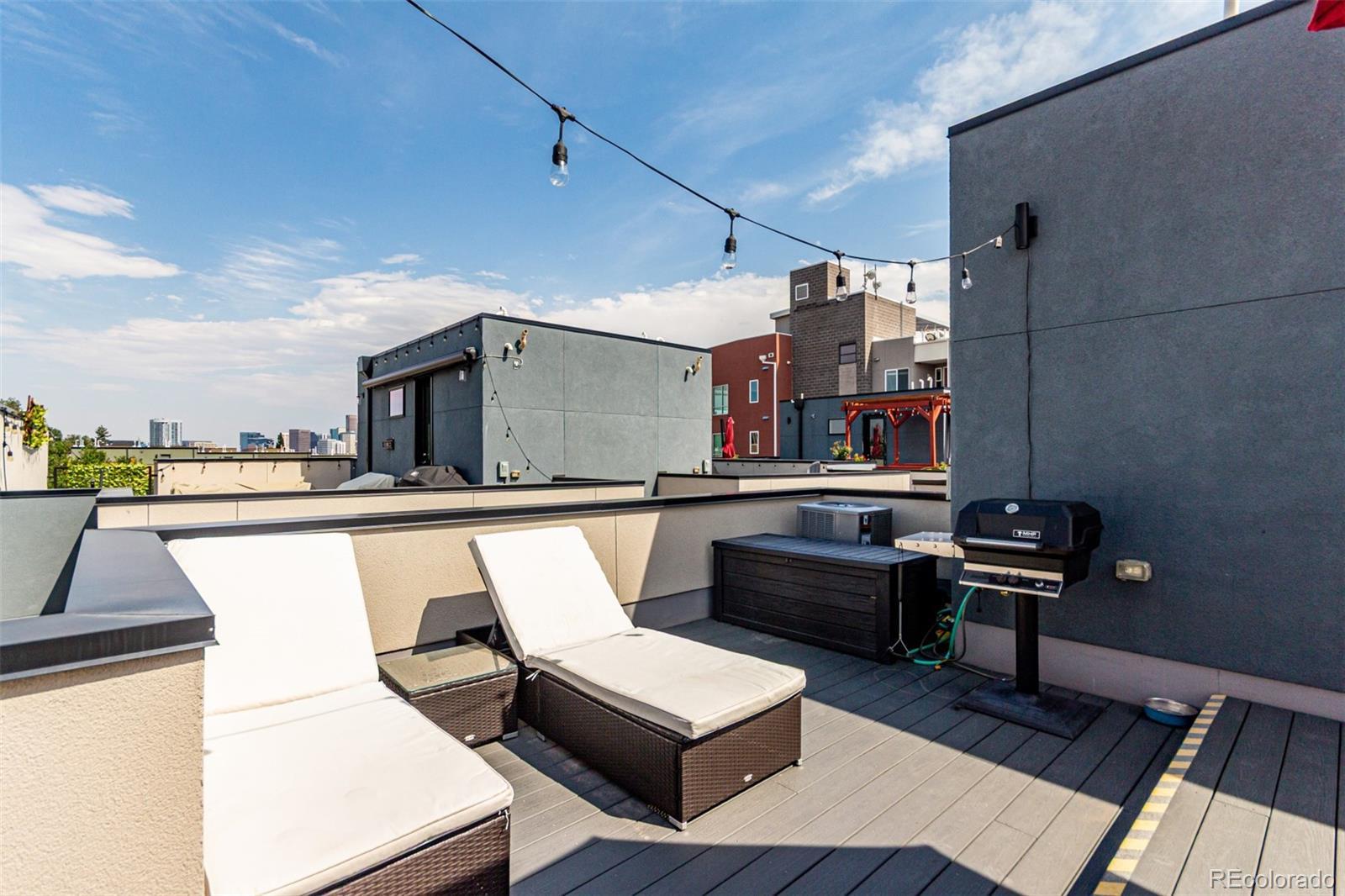 Sophisticated Urban Contemporary Townhome in Highly Coveted Jefferson Park. Nestled in the heart of one of Denver’s most walkable and vibrant neighborhoods, this elegant multi-level townhouse offers the perfect blend of modern luxury and everyday comfort. Located in highly sought-after Jefferson Park, you’ll enjoy effortless access to trendy restaurants, boutique shops, lush green spaces, and downtown Denver—all just minutes from your door. Step inside to find a thoughtfully designed interior featuring durable tile flooring, a convenient half bath, wood stairs, and a calming neutral palette. The open-concept main level is bright and inviting, enhanced by plantation shutters, recessed lighting, and thick baseboards that add a polished touch. The stylish kitchen is a true showstopper, complete with stainless steel appliances, sleek white cabinetry, quartz countertops, a designer tile backsplash, and a generous island with breakfast bar—perfect for casual meals or entertaining guests. Upstairs, you’ll find two spacious bedrooms, each with its own private en-suite bathroom, plush carpeting, and a convenient stacked laundry area nearby. Cap off your day on the exquisite rooftop deck, where breathtaking city skyline views set the scene for relaxing mornings or unforgettable sunset gatherings. A 2-car garage provides plenty of room for your vehicles and extra storage. With designer finishes throughout and an unbeatable location in one of Denver’s most desirable neighborhoods, this stunning home truly has it all.