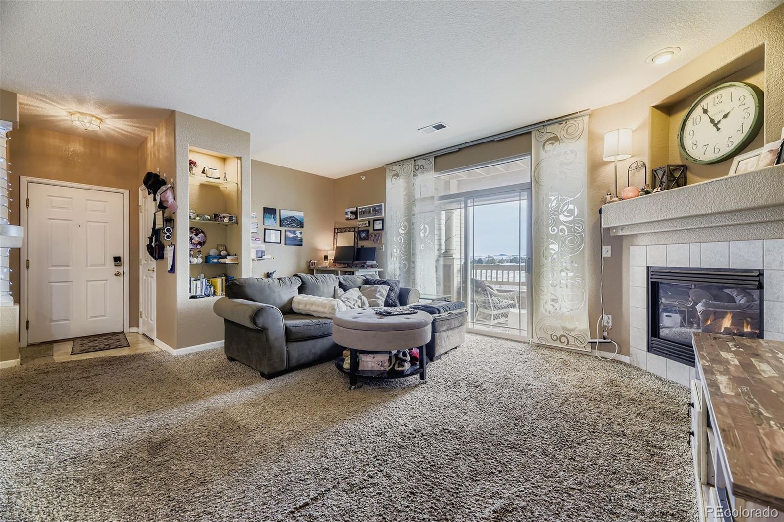 Discover comfort and convenience in this bright 1 bed/1 bath Littleton condo. Spacious Kitchen with ample storage, southwest-facing windows and large covered patio with beautiful mountain views, gas fireplace, easy access to nearby shops, restaurants, and C-470. Direct connection to local bike and walking paths. The home includes a detached 1-car garage, a reserved carport space, and plenty of guest parking. Community amenities feature a 24/7 fitness center, pool, and clubhouse—everything you need for Colorado living at its best.