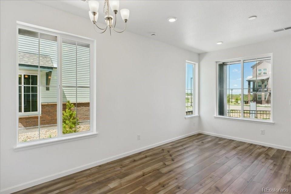 BRAND NEW CONSTRUCTION! Welcome to your Dream home in the charming community of Castle Pines. This stunning 1,369 sq. ft residence sits on a corner homesite and features 3 bedrooms and 2.5 modern bathrooms. Perfect for families or anyone seeking extra space. Step inside the beautifully designed kitchen equipped with Stainless steel whirlpool appliance including a gas cooktop, Elegant White cabinets and brushed nickel hardware, light fixtures and plumbing fixtures throughout. Photos are not of this exact property. They are for representational purposes only. Please contact builder for specifics on this property. Ask about our incentives.