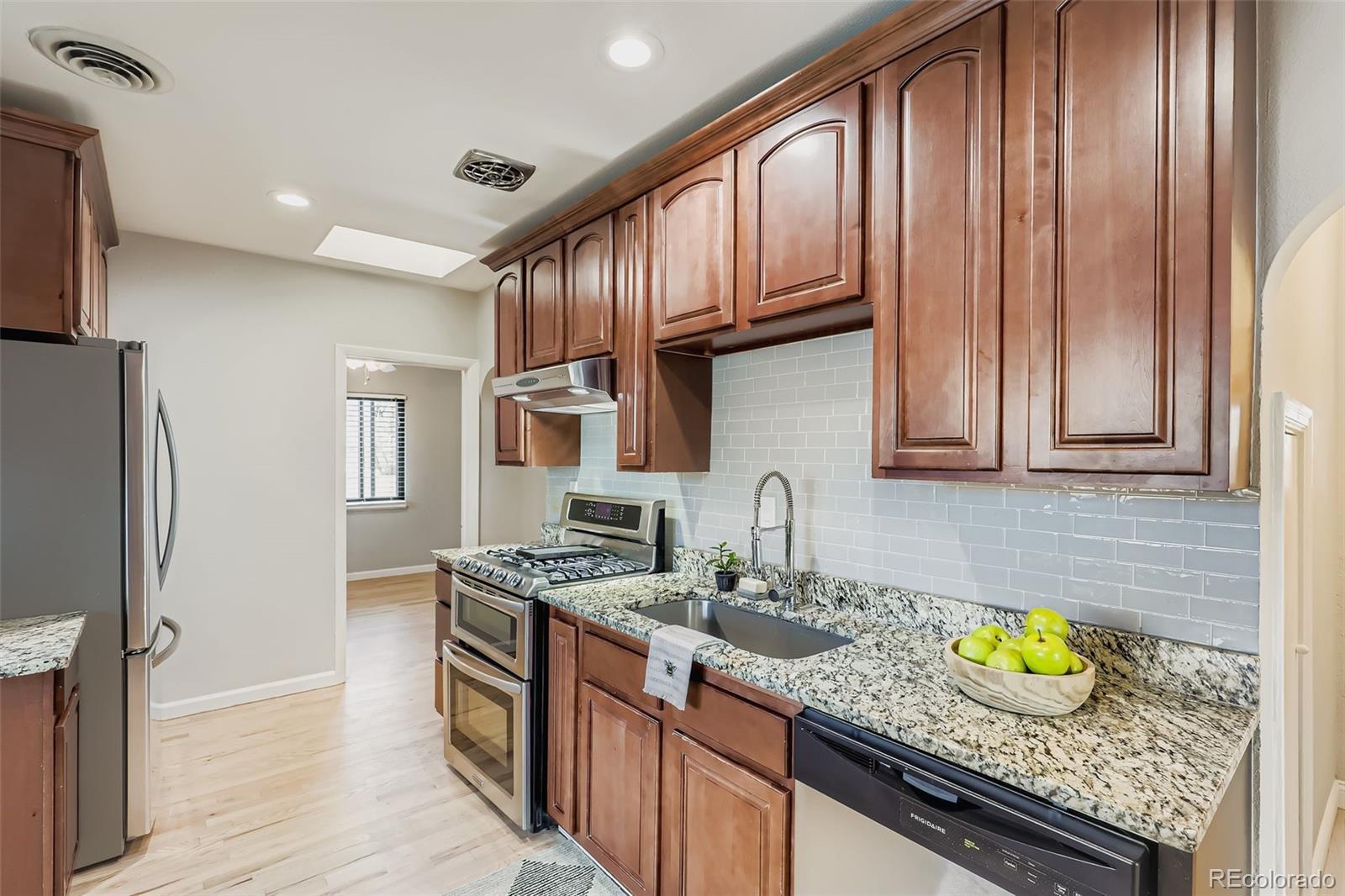 Open House Saturday 12-2pm. Beautiful remodeled 2br by Stanley Marketplace on 1/4 acre lot! This home boasts refinished hardwood floors throughout, new paint, granite countertops, and an attached 1-car garage. Huge 1/4 acre lot, fully fenced, with 2 sheds for storage. Walk 1 block to coffee @ 25th & Galena, 5 blocks to Stanley Marketplace, 3 blocks to Moorhead Rec Center (Weight and Cardio Room Area, Indoor Walking/Running Track, Full-Size Gymnasium, Drop-in Fitness Classes, Indoor Pool: lap pool, lazy river, leisure pool and hot tub) & Memorial Park. 5min drive to Central Park shopping & restaurants and University of Colorado Anschutz Medical Campus.
