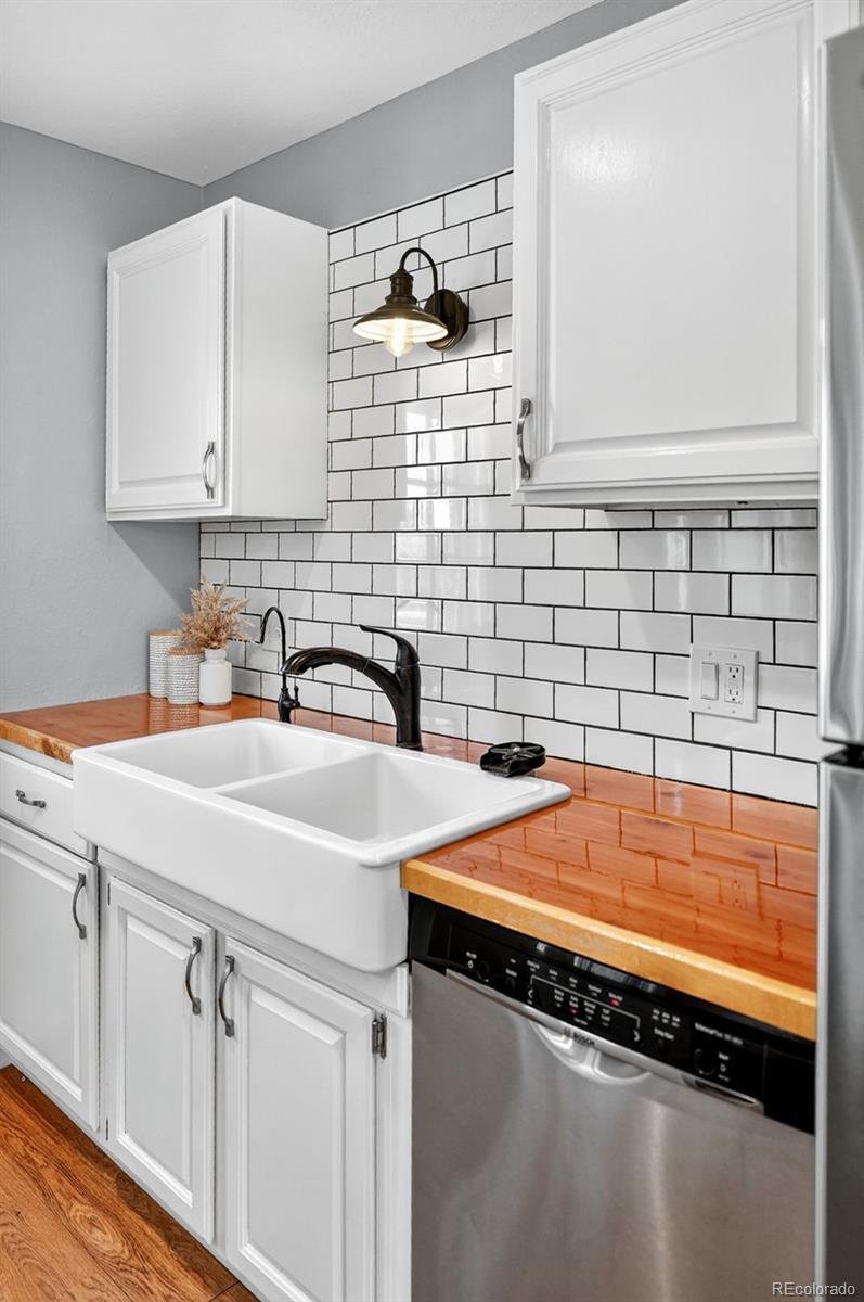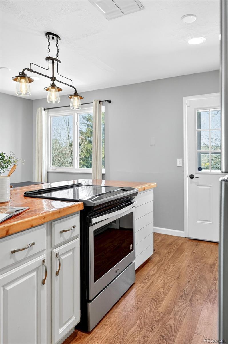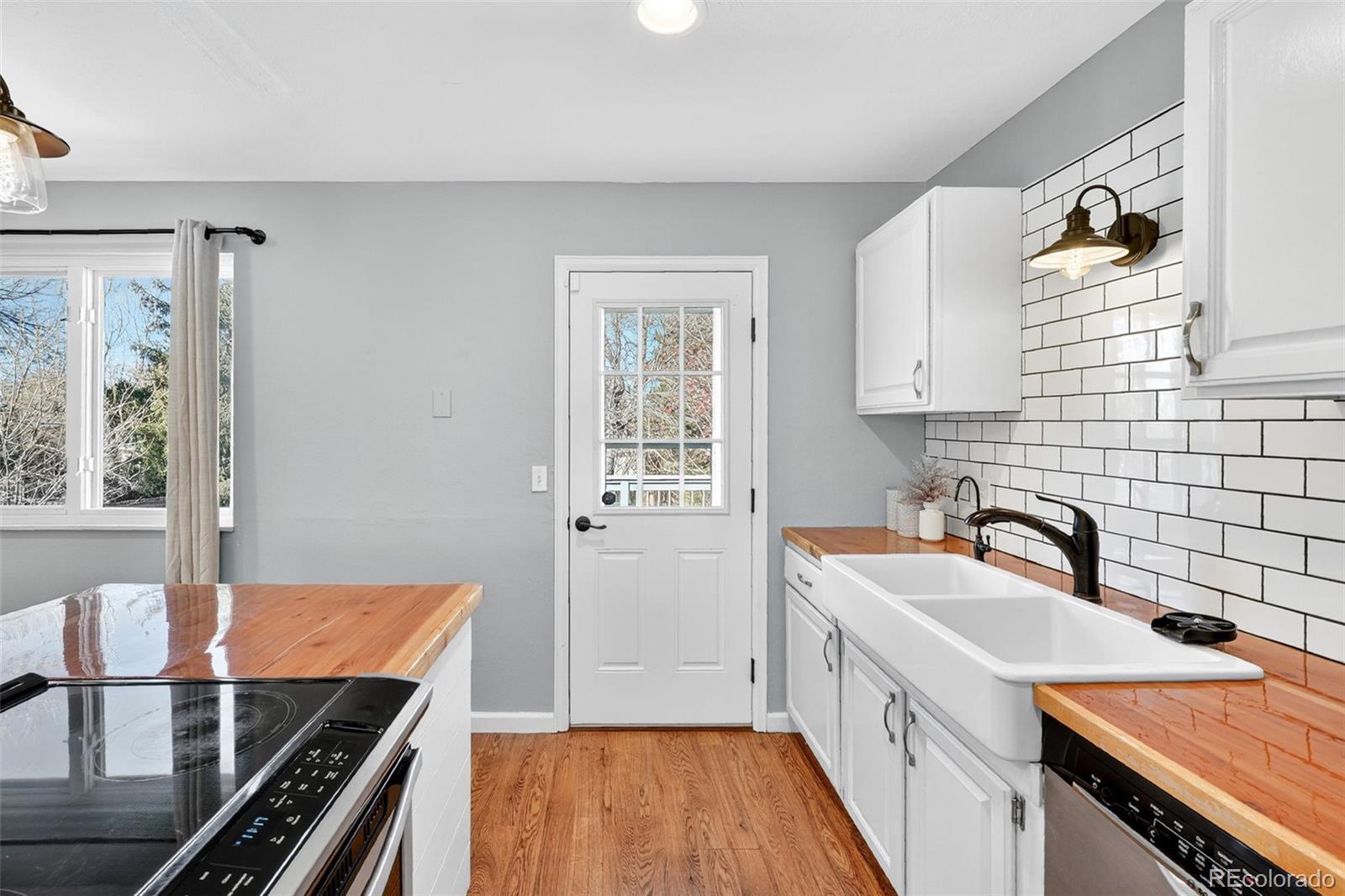 Welcome to 4355 S Eagle Circle; a beautifully maintained, move-in ready home tucked in a quiet neighborhood within the Cherry Creek School District. This stylish 4 bedroom 2 bath home perfectly blends modern updates with a warm, functional layout designed for everyday comfort and entertaining. The heart of the home is the open kitchen, featuring butcher-block counters, stainless steel appliances, subway tile backsplash, farmhouse sink, and crisp white cabinetry. The kitchen flows seamlessly to the dining and living areas, creating a bright and inviting space for gatherings. Step outside to the spacious deck overlooking the private, fenced yard — ideal for barbecues, gardening, and enjoying Colorado’s sunshine. Upstairs, you’ll find two bedrooms and a fully remodeled primary bathroom, completed with modern tilework, new fixtures, and a fresh, spa-like feel. The lower level adds two additional bedrooms, a full bath, and a flexible family room with a convenient kitchenette — perfect for guests, multi-generational living, or a home office setup. Major system upgrades provide peace of mind: new roof (2020), new furnace and A/C (2021), new hot water heater, and leased solar panels for energy efficiency. An attached two car garage adds everyday convenience and extra storage. Located minutes from Cherry Creek State Park, with quick access to I-225, I-25, shopping, and dining — this home combines modern comfort, thoughtful updates, and an unbeatable location.