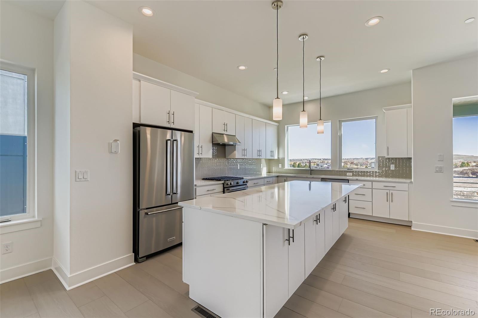 Brand New Toll Brothers Home – Tamarac – Modern Prairie – Ready September 2025. This home sits as a corner unit, providing a generous number of windows throughout the home. This home has been upgraded to show a bedroom and full bathroom on the lower level for guests, as well as an oversized kitchen island. All of the features in the home have been upgraded throughout to show upgraded cabinets, quartz countertops, and KitchenAid appliances in the kitchen. This home is located in the Erie Town Center community and the walk will only take a couple minutes from your front door to the future Erie Town Center! Only 10 minutes from I-25 and 30 minutes to Boulder. This home qualifies for special financing through Toll Brothers Mortgage, schedule an appointment to see this home today!