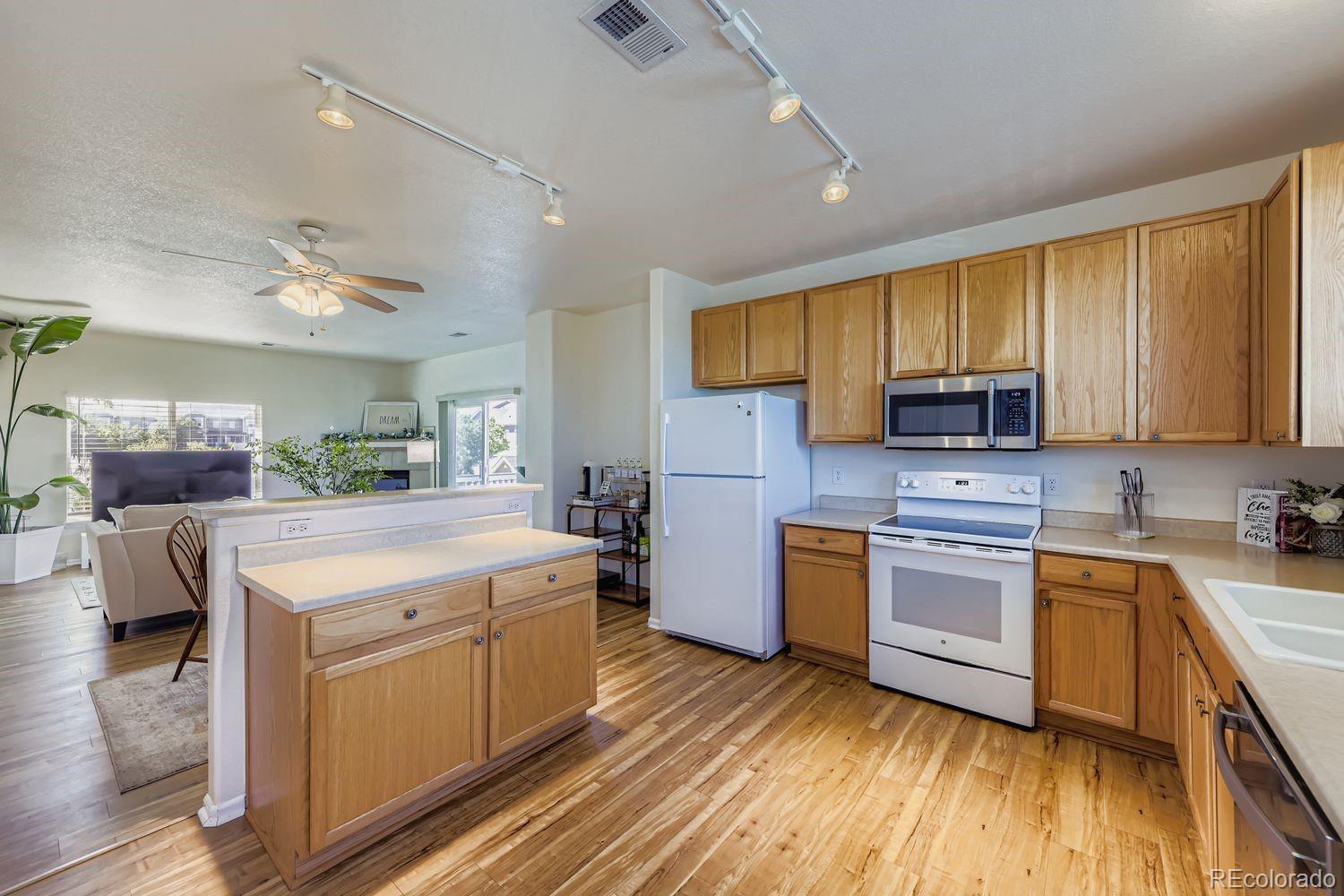 ***Lender Paid Incentives up to $3,500 - Ask For Details*** Tucked inside the sought-after Aspen Hills community, this end-unit townhome-style condo offers the perfect blend of comfort, convenience, and privacy. With no neighbors directly in front or beside your living room deck, you’ll enjoy expansive, unobstructed views of the wide-open plains — a rare find in condo living. Step inside from your private ground-level entrance and head upstairs to a thoughtfully designed second-floor layout that feels bright, airy, and open. The living room flows seamlessly onto a wood deck—ideal for morning coffee or evening unwinding — with nothing but sky and space in your line of sight. And because this is an end unit, you'll love the extra natural light and added privacy that comes with it. As an added bonus, this unit includes a detached 1-car garage located just to the left of your unit building — a rare perk in this community, as not every unit comes with a garage. Enjoy secure parking, extra storage, and peace of mind. It also comes with a reserved spot that is conveniently located right in front of your door for additional parking. And for added convenience, visitor parking is located right outside your doorstep, making it easy for guests or for additional parking when needed. Out front, enjoy the peaceful openness—no building directly across means your front views are just as serene as the side of your unit. Plus, you’re just a short walk to King Soopers, Ace Hardware, popular restaurants, and everyday conveniences like Starbucks. And with just a 25-minute drive to both Downtown Denver and Denver International Airport, this location is perfect for commuters and jet-setters alike. Whether you're a first-time homebuyer, or simply looking to simplify life without sacrificing space and views—this home offers something truly special.