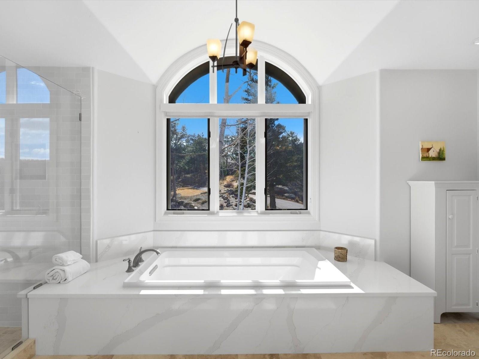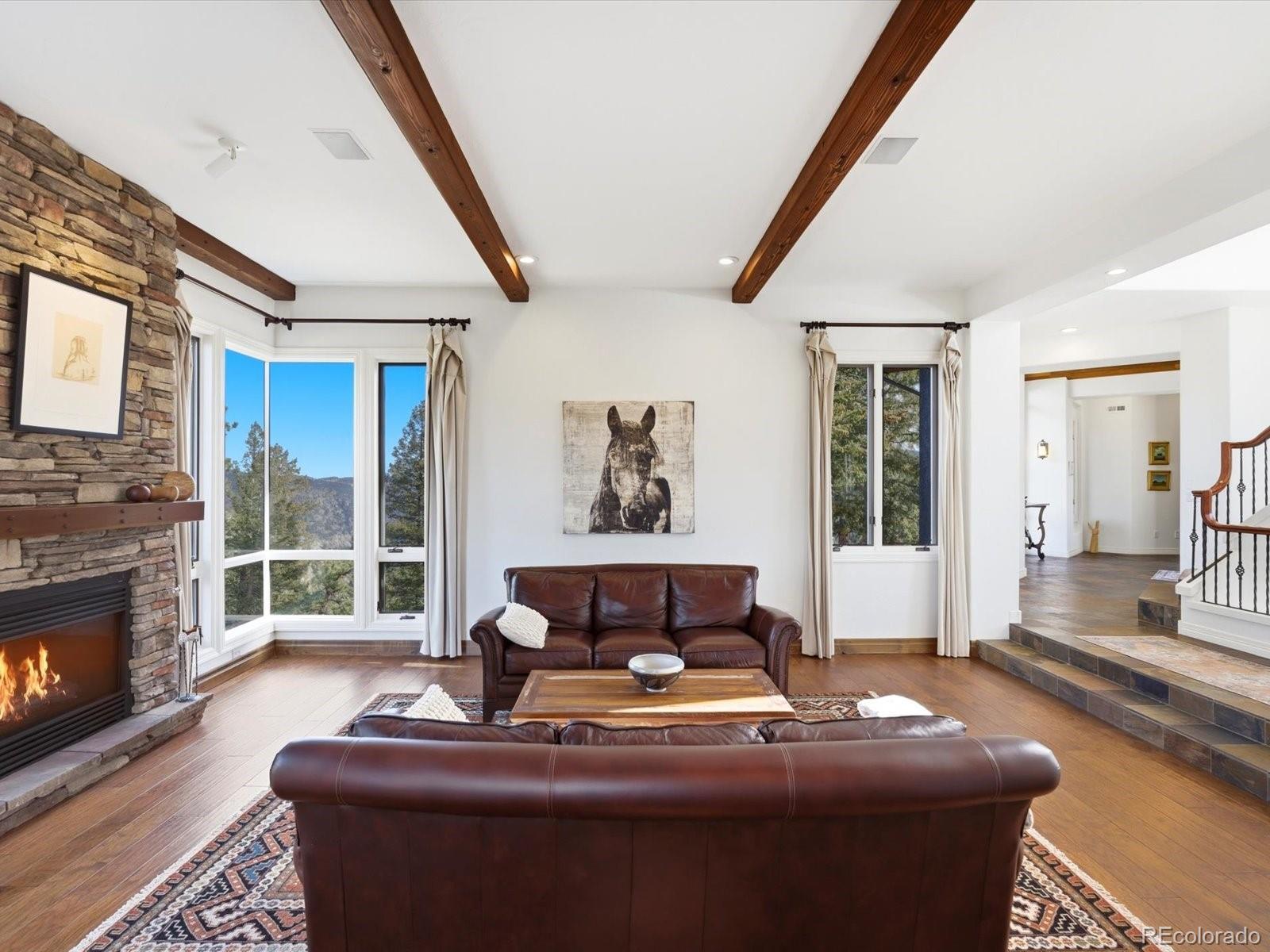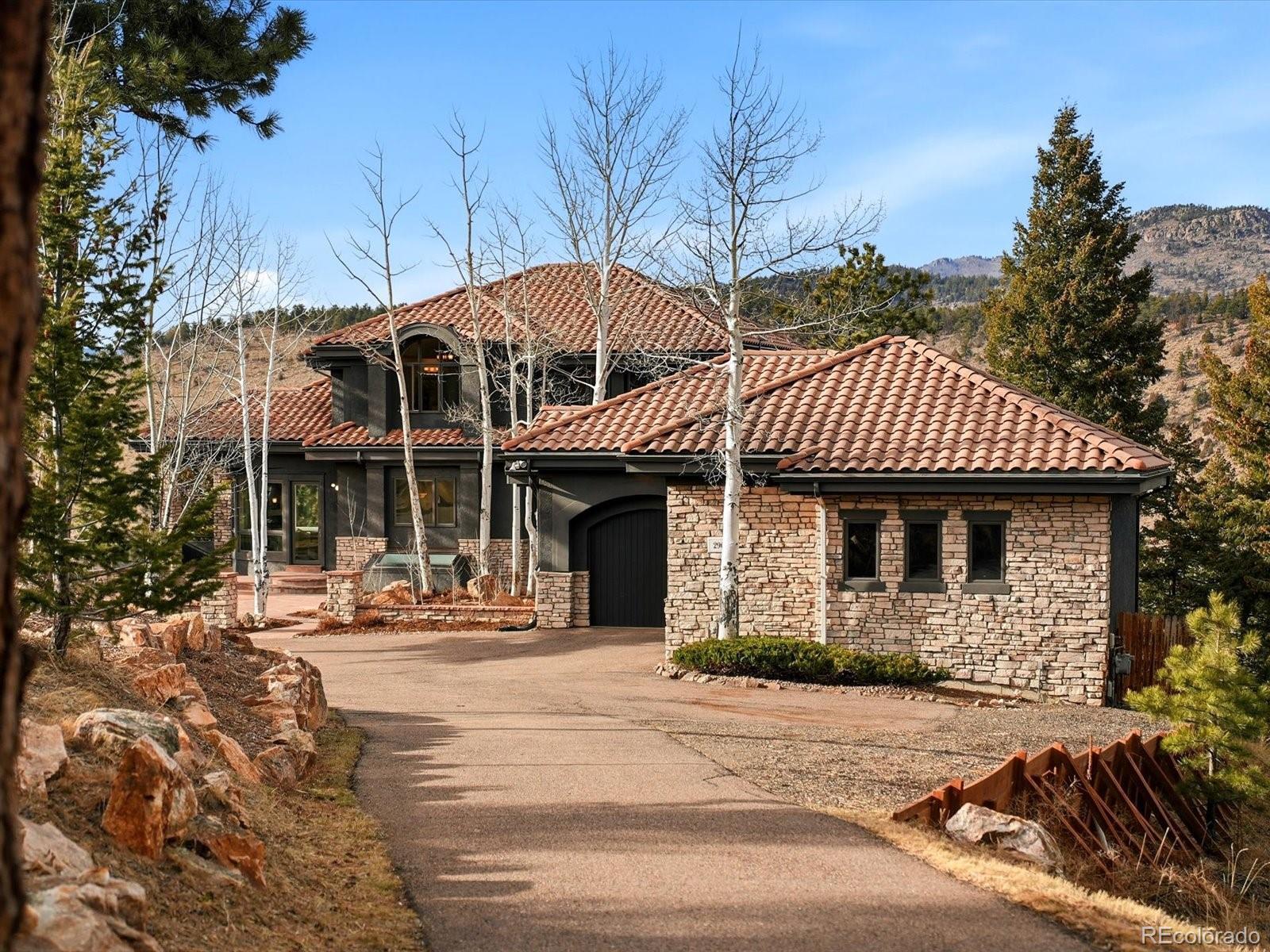 Top-of-the-World Views | 10 Private Acres | True Mountain Serenity. Set at the top of Skyhill Estates, 290 Skyhill offers a rare blend of privacy, infrastructure, and proximity. One of just six homes in this gated enclave of 10-acre estates, it sits at the end of the road with no visible neighbors and sweeping panoramic views. The 5,155 sq ft residence is positioned to capture mountain beauty from nearly every room. Soaring ceilings, dramatic windows, and Brazilian slate flooring create a refined aesthetic. Recent updates enhance the heart of the home, including refreshed kitchen finishes with a new Sub-Zero refrigerator and an updated primary bath with spa-quality surfaces and fixtures. The upper-level primary suite offers expansive views, a beautifully remodeled bath, and a generous walk-in closet. The walkout lower level features high ceilings, abundant natural light, a large TV/media room or office, two additional bedrooms, and a built-in reading nook—ideal for guests or work-from-home living. Infrastructure sets this property apart: radiant in-floor heat throughout (including the oversized three-car garage), a new whole-house generator, water filtration with reverse osmosis, fiber optic internet plus Starlink, and buried on-site power lines that preserve reliability and uninterrupted views. With convenient access to I-70 and Denver, the setting remains peaceful—highways and street noise are neither visible nor audible from the home, but remain close! The full 10 acres are usable and private, with established trails connecting toward Beaver Brook for hiking and exploration. Community tennis and pickleball are within Skyhill Estates, just minutes to Evergreen, Golden, Denver, and world-class skiing. 290 Skyhill delivers privacy without isolation, meaningful acreage, updated luxury finishes, top-tier infrastructure, and commanding views in a serene, gated Evergreen setting close to everything. Come visit today!