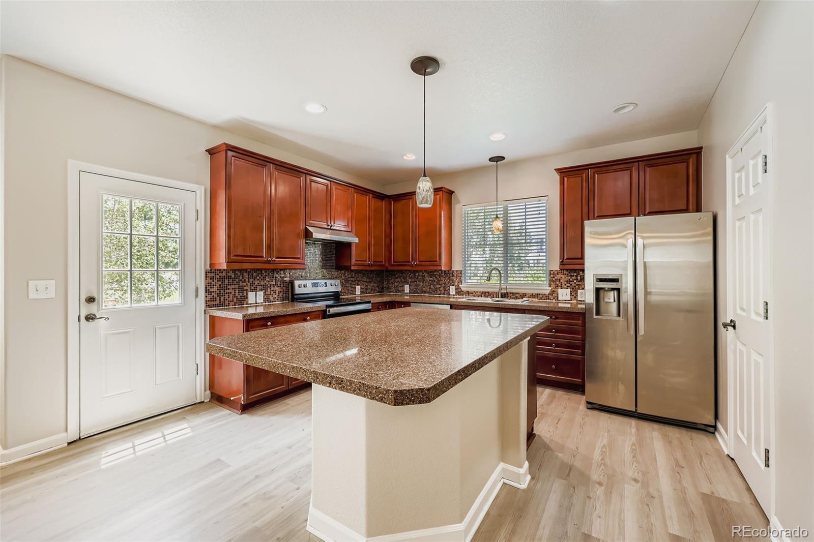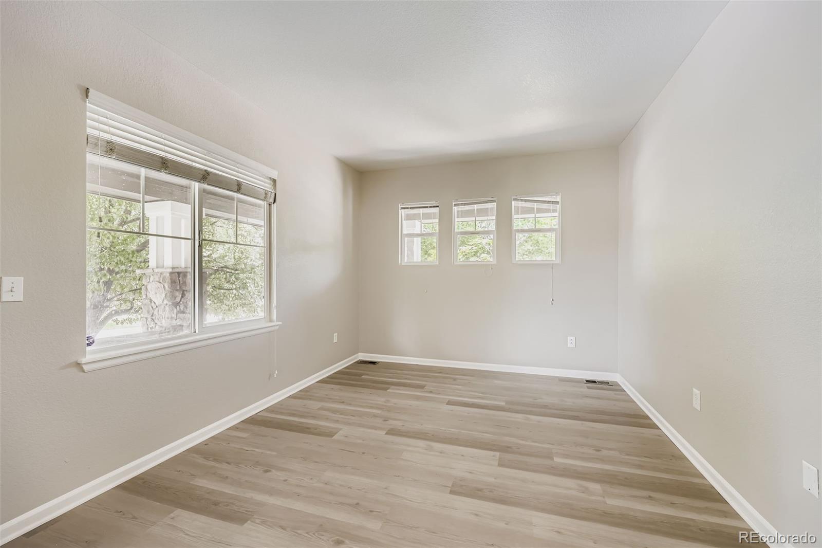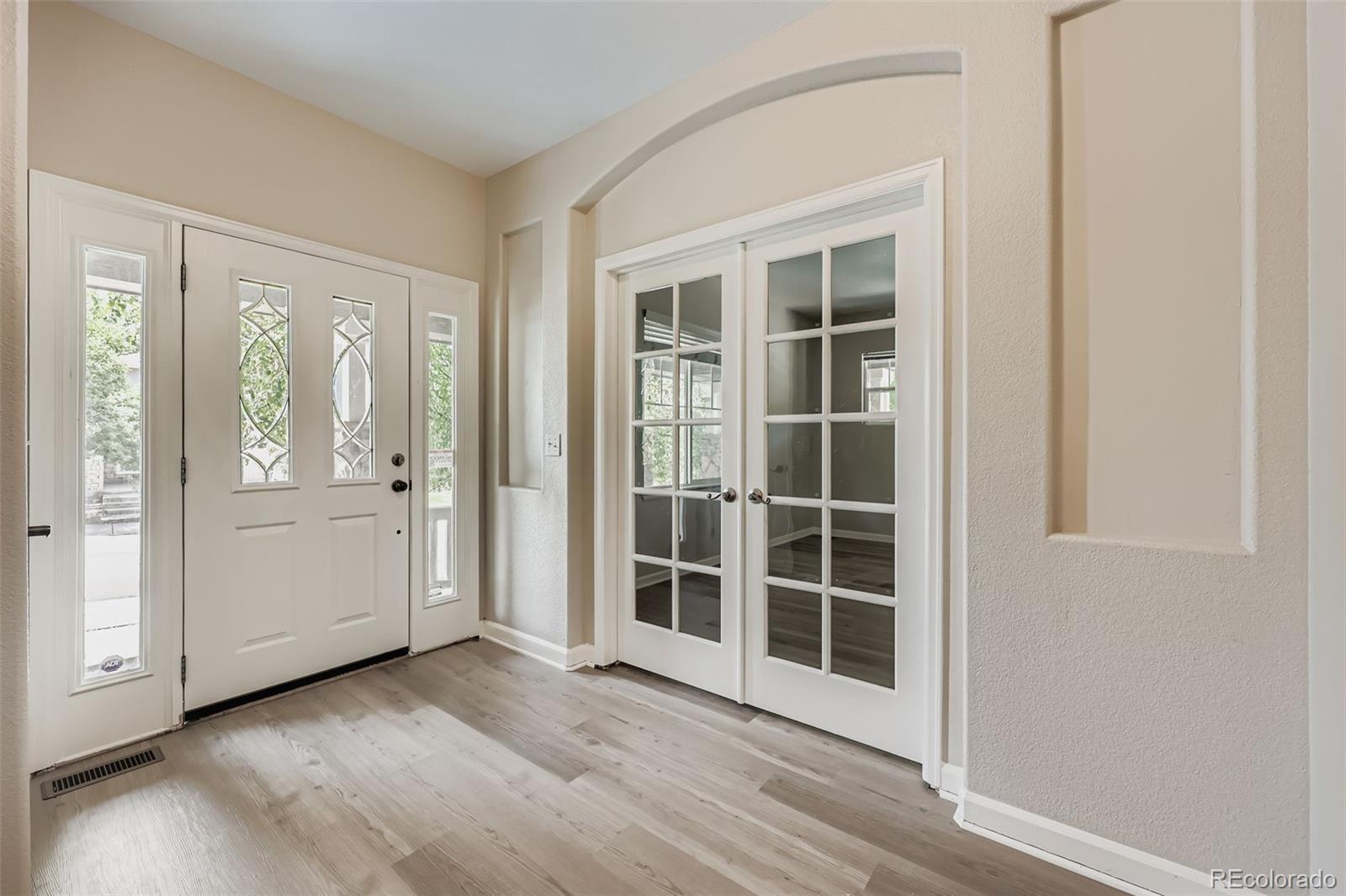Beautiful 4-Bedroom Home on Corner Lot in The Meadows Welcome to this updated 4-bedroom, 2.5-bathroom plus office home with an attached 2-car garage and an unfinished basement, perfectly situated on a desirable corner lot with no neighbors to the south. Enjoy outdoor living year-round on the charming wraparound covered porch. Inside, you'll find fresh interior paint and brand-new luxury vinyl plank flooring on the main-floor. The gourmet kitchen is a standout feature, offering granite countertops, a spacious island, and pantry—ideal for both everyday meals and entertaining guests. Located in the highly sought-after Meadows community, this home provides access to parks, pools, scenic walking trails, and is just minutes from shopping, dining, and I-25. Don’t miss your chance to call this move-in-ready home yours—schedule your showing today!