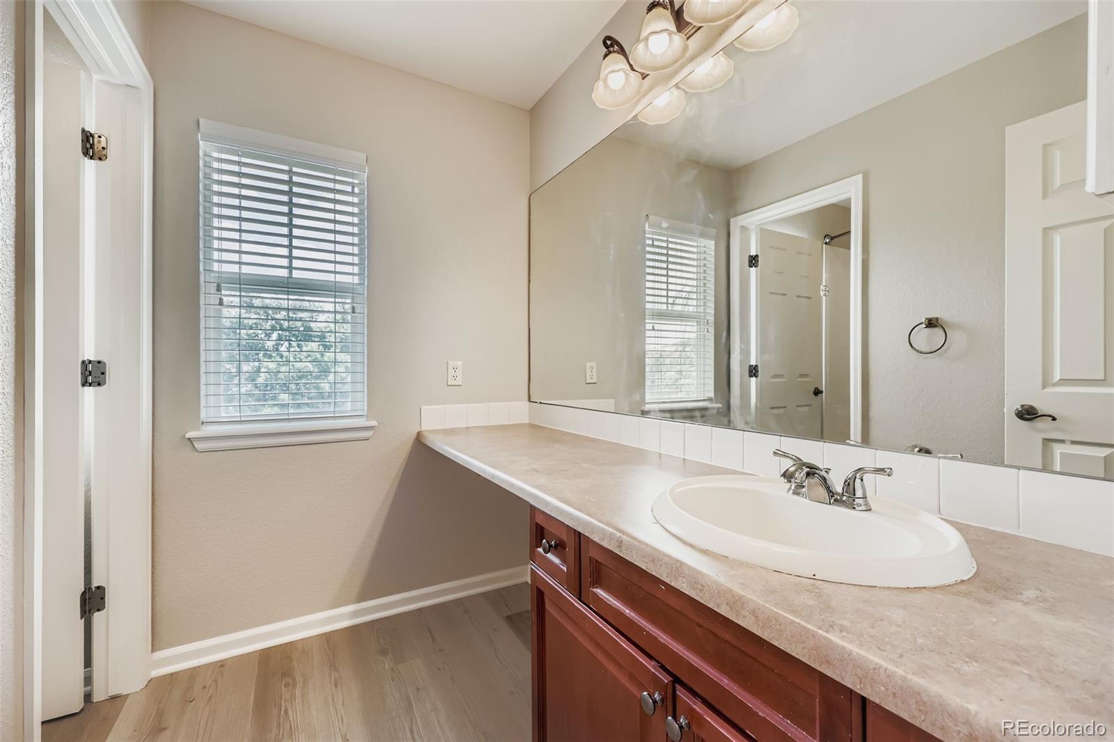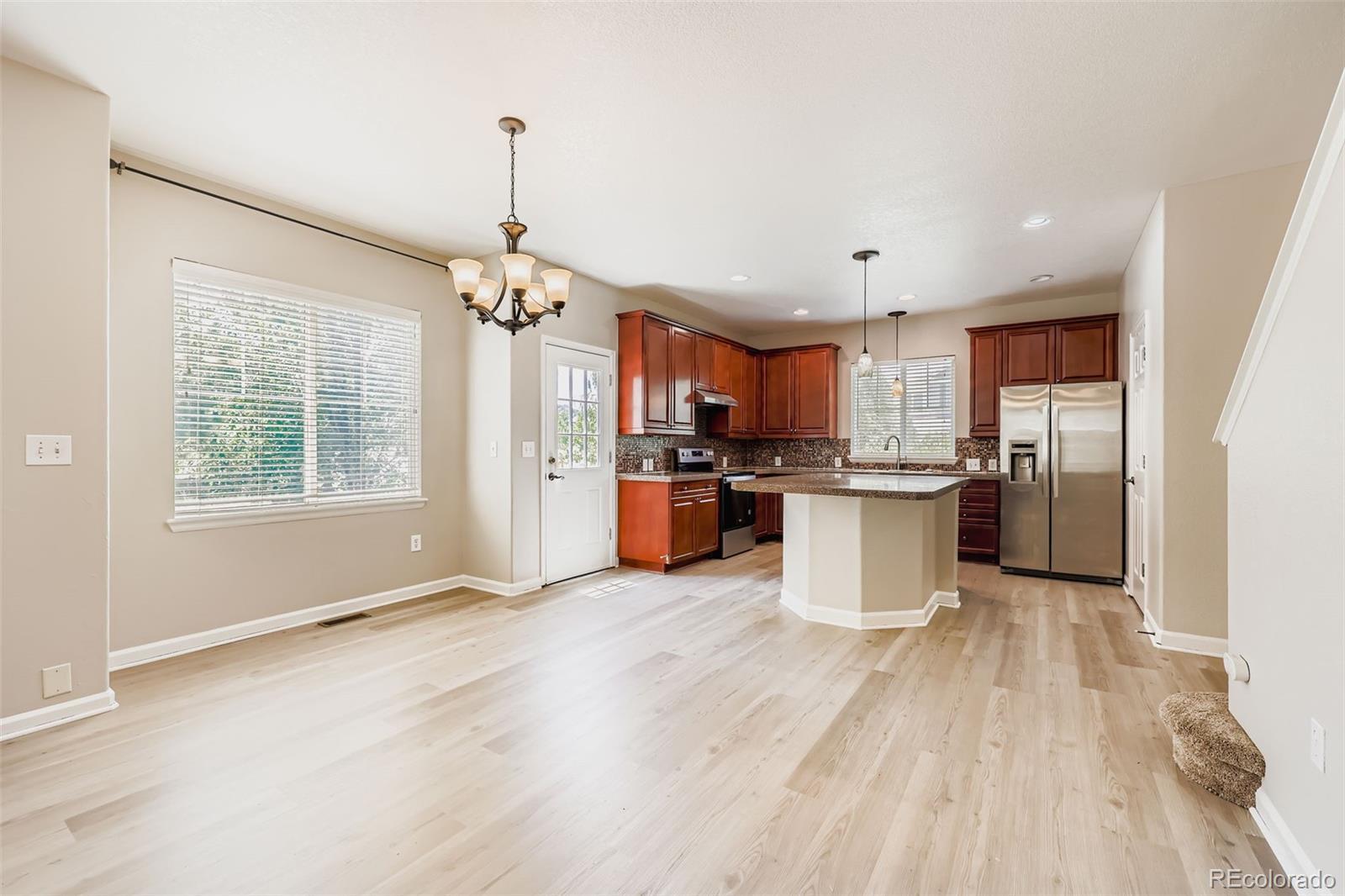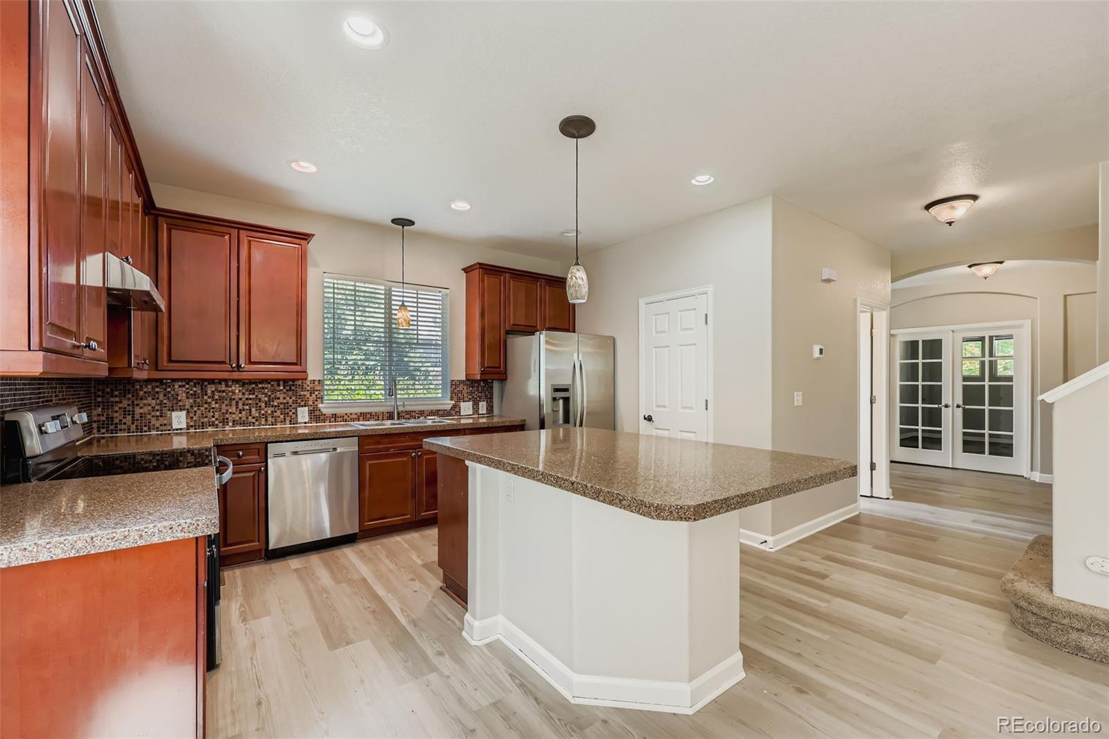 Beautiful 4-Bedroom Home on Corner Lot in The Meadows Welcome to this updated 4-bedroom, 2.5-bathroom plus office home with an attached 2-car garage and an unfinished basement, perfectly situated on a desirable corner lot with no neighbors to the south. Enjoy outdoor living year-round on the charming wraparound covered porch. Inside, you'll find fresh interior paint and brand-new luxury vinyl plank flooring on the main-floor. The gourmet kitchen is a standout feature, offering granite countertops, a spacious island, and pantry—ideal for both everyday meals and entertaining guests. Located in the highly sought-after Meadows community, this home provides access to parks, pools, scenic walking trails, and is just minutes from shopping, dining, and I-25. Don’t miss your chance to call this move-in-ready home yours—schedule your showing today!