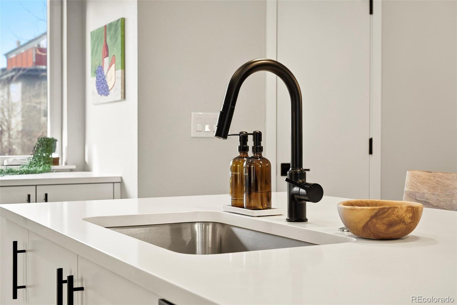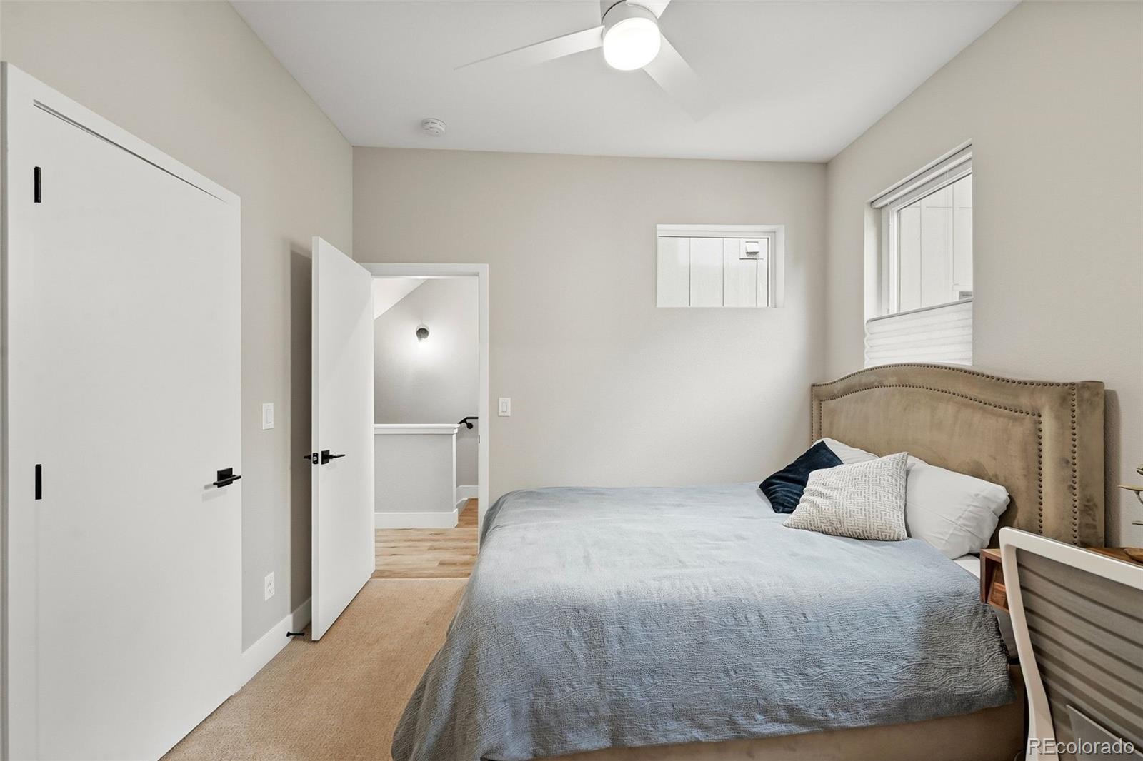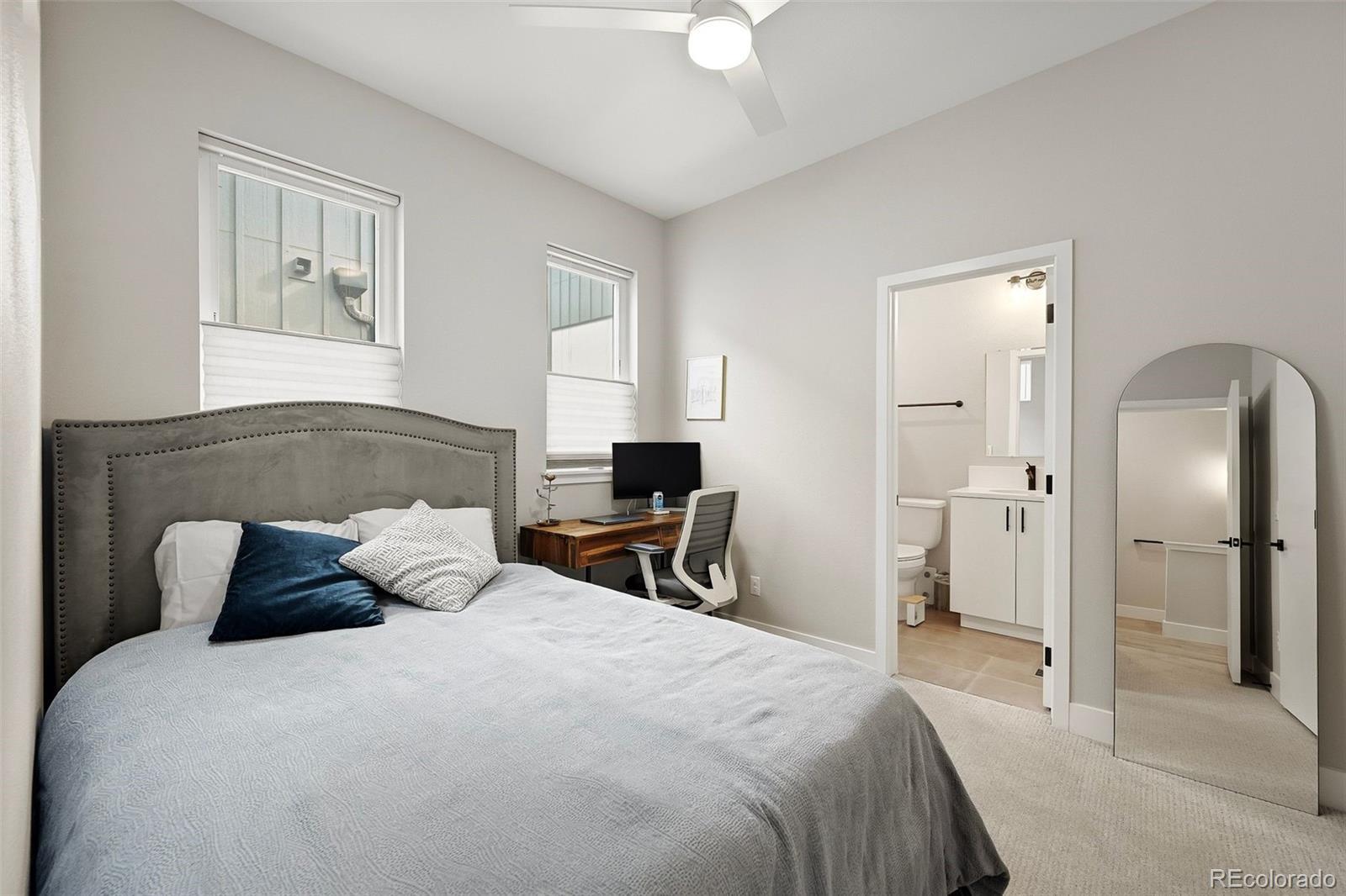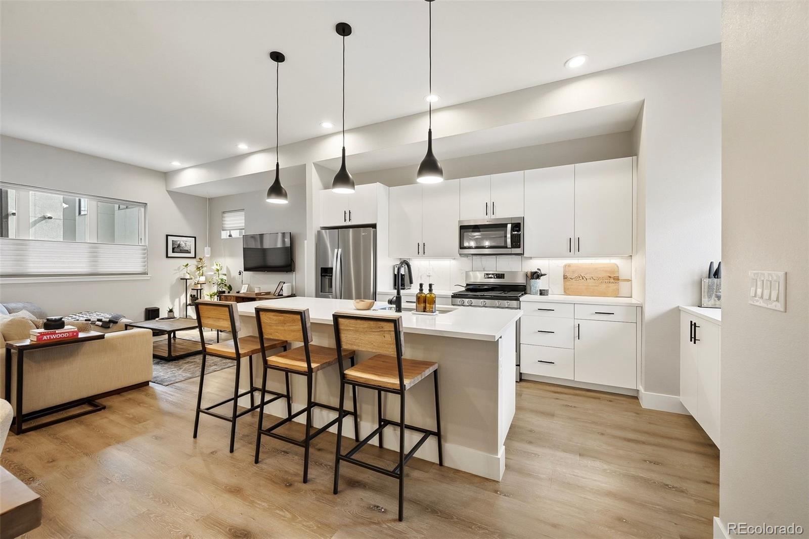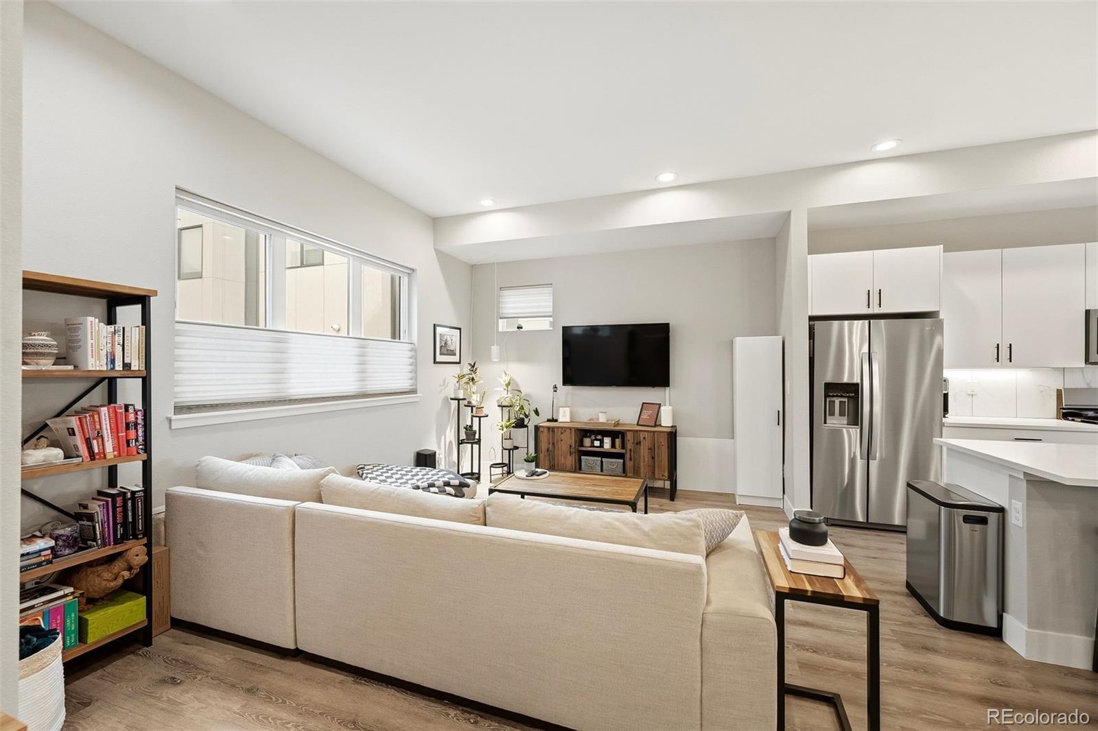 Modern design. Effortless living. Unforgettable views. // Built in 2022, this striking 2-bedroom, 4-bath townhome offers over 1,400 square feet of thoughtfully designed space in the heart of Sunnyside, adjacent to the Highlands. As an end unit, natural light pours through expansive windows, highlighting the clean architectural lines and contemporary finishes throughout. // The main level opens into a dramatic great room with soaring 11' ceilings and an airy, open layout that feels both spacious and intimate. The kitchen is sleek and timeless—featuring quartz countertops, soft-closing shaker cabinetry and stainless steel appliances. A generous island seamlessly connects kitchen and living spaces, making it perfect for weeknight dinners or hosting friends. The ample-sized dining room (often an afterthought in townhomes) can be extended to the 2nd fl covered patio. // Upstairs, the primary suite offers a calm retreat with a modern en-suite bath and refined finishes. This same floor includes the secondary bedroom with ensuite bath—ideal for guests or a home office, and in the large hallway the laundry room. // Crowning the home is an expansive third-floor rooftop deck with panoramic 360-degree views of the mountains and downtown Denver—an extraordinary extension of your living space. Whether enjoying morning coffee with mountain views or evening sunsets over the skyline, this rooftop is truly the highlight. // Laminate and tile flooring, modern lighting, hand-troweled walls and a straight-in two-car garage with storage add comfort and efficiency to everyday life. Low-maintenance, new construction in one of Denver’s most vibrant neighborhoods—just steps to local coffee shops, parks, restaurants, and easy access to downtown, I-70, and I-25—this home offers the perfect blend of style, simplicity, and location.