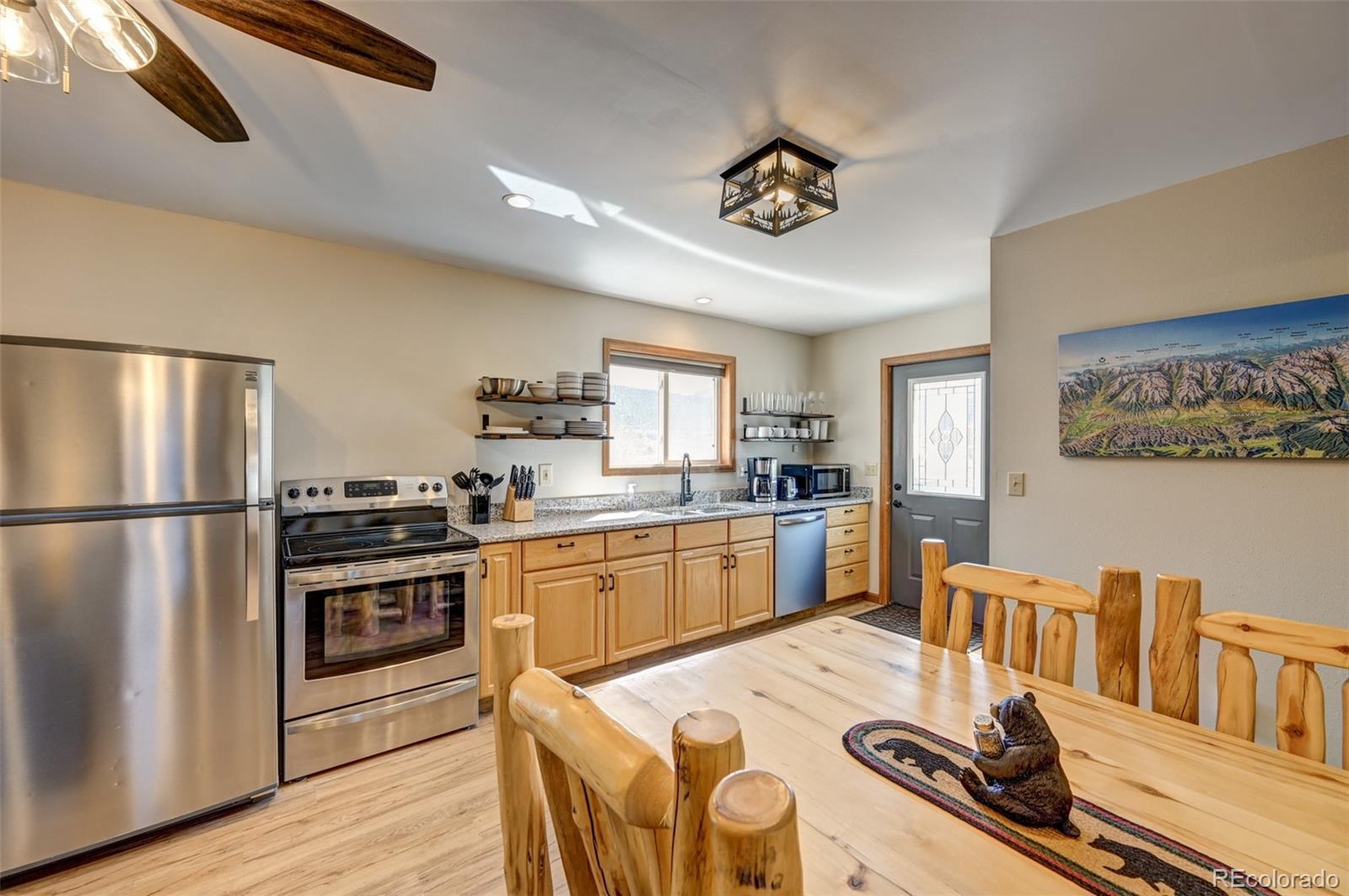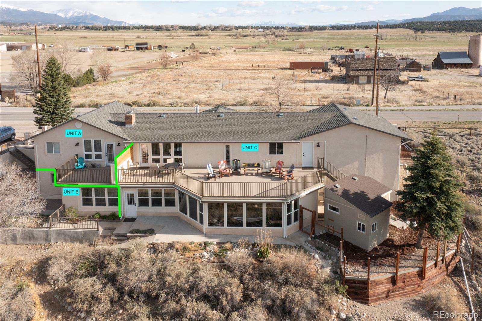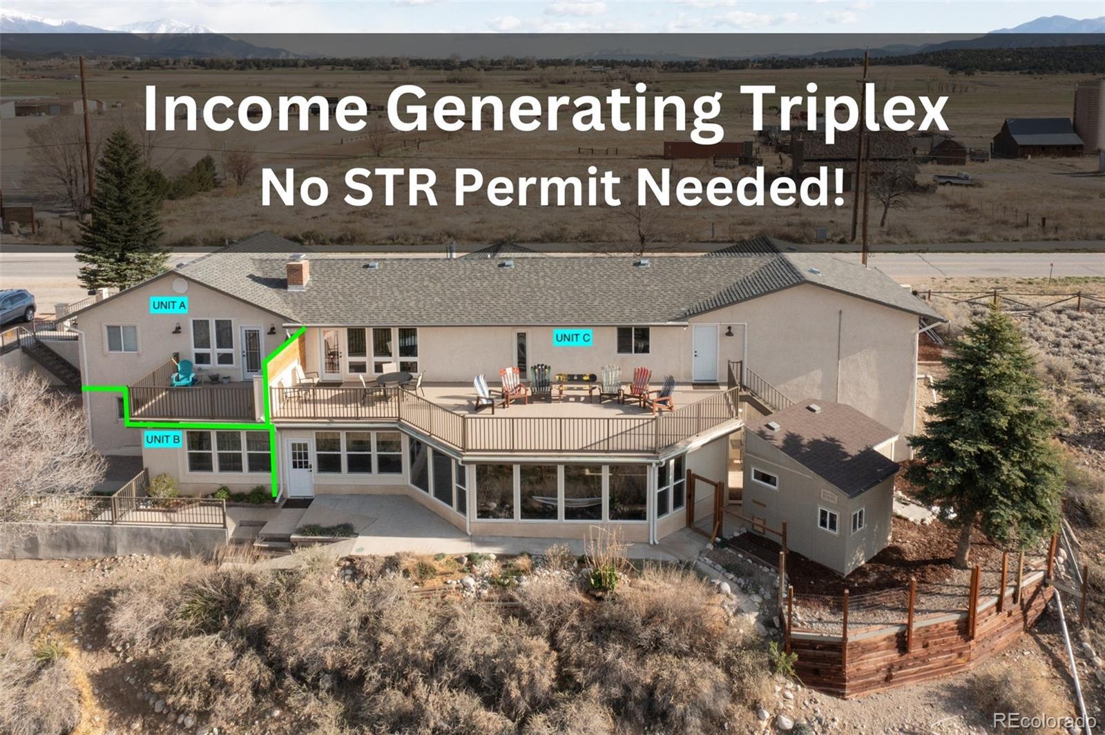 Exceptional Investment Property! This triplex offers versatility to suit your needs, whether you're seeking a primary residence, income-generating rentals, or a mix of both! Unit "C" boasts an impressive 3,077 sq. ft. of living space, offered fully furnished, complete with a massive back deck with 731' perfect for enjoying stunning southern views while soaking up plenty of Vitamin D. It has 3 bedrooms and 2 bathroom, the kitchen and family room upstairs and a wonderful great room on the lower level. Everyone will enjoy the sunroom with wet bar and hot tub outside. Unit "A," a charming 1-bedroom, 1-bath space, could serve as a "mother-in-law" suite, or a long-term/short-term rental. With 610 sq. ft., it’s the perfect private retreat. Unit "B" features 2 bedrooms and 1 bath, which could also be either a STR or long term. Very well established. This property has been fully remodeled and is in excellent condition, being very bright, open and inviting. Each unit includes its own kitchen, private living spaces, and laundry room for convenience. The large back deck is perfect for entertaining, while Unit "A" and Unit "B" enjoy private patios and courtyards for more intimate relaxation. Additional highlights include a 2-car attached garage, which can double as a game room, desirable radiant heated floors, granite countertops, walk in closets and very nice bathrooms in every unit. With Commercial Zoning and Board House C/O designation, this property allows up to 10 occupants and does not require a short-term rental permit. Generating a NOI of $85,075 in 2024, this property is truly "turn-key." Just 20 minutes from Monarch Ski Area, close to the Arkansas River for rafting and fishing, and a mere 10 minutes to downtown dining, shopping, and entertainment, this property is an investor's dream. Don't miss the opportunity to own this stunning and versatile mountain retreat! Call now for private showing. For further information pull up the 6 pg. brochure attached.