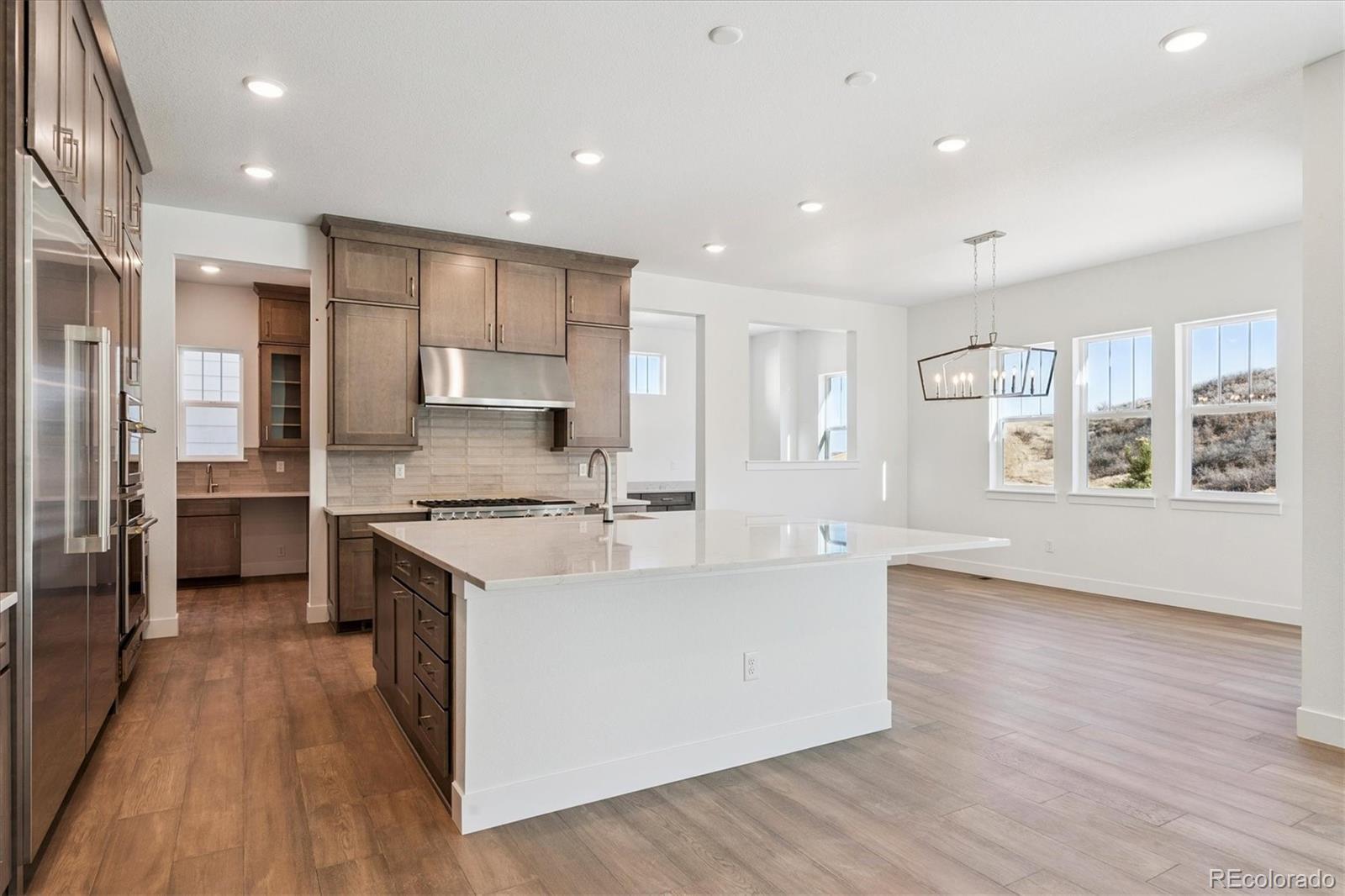 **!!AVAILABLE NOW/MOVE IN READY!!**SPECIAL FINANCING AVAILABLE**AMAZING VIEWS**BASEMENT WET BAR** The Harmon embodies elegance and sophistication, this remarkable two-story home showcases brilliantly designed living spaces and impeccable designer finishes, leaving a lasting impression. As you step into the grand foyer, you are greeted by a curved staircase, sunny living room and adjoining formal dining room. The true centerpiece of this home is the professional kitchen, outfitted with Monogram appliances for an elevated culinary experience. A striking 72” built-in refrigerator and freezer column set offers ample cold storage with a seamless, high-end look. The 48” commercial-style range with double ovens and a powerful vent hood invites everything from weeknight meals to holiday feasts. At the center, a massive quartz-topped island anchors the space - ideal for prepping, gathering, or entertaining. The stand-out kitchen seamlessly opens up to the spacious great room, breakfast nook and large covered patio. Continuing through the home, you'll find a private study, 3/4 bath and a conveniently located laundry room offering added convenience and functionality. Retreat upstairs to discover three generous secondary bedrooms, each offering their own unique features. Two bedrooms boast walk-in closets and share a Jack & Jill bathroom, while the third bedroom provides the luxury of an en-suite bath. The primary suite showcases a spacious retreat with a dual sided fireplace, a lavish deluxe bath, and massive walk-in closet. The basement boasts a flex room that can adapt to your needs, as well as a wide-open rec room with wet bar perfect for hosting gatherings and creating lasting memories. Additionally, there is a 5th bedroom with a walk-in closet and a hall bathroom.