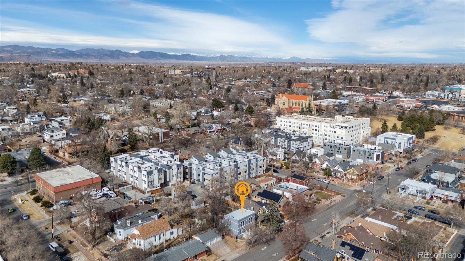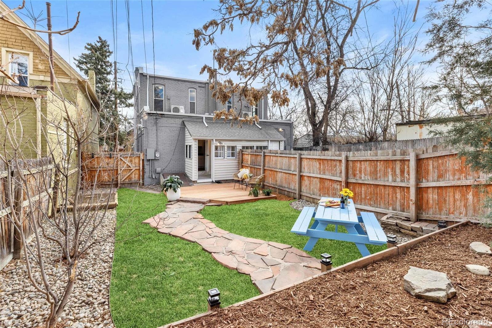 Step into this charming 1896 townhouse, completely reimagined in 2024 with thoughtful, top-to-bottom updates. Modern essentials include a new furnace, AC, water heater, roof, washer and dryer, refrigerator, electric oven, microwave, disposal, ceiling fan, lighting, carpet, wood flooring, paint, and even a new doorbell — offering true move-in peace of mind. Located in the highly sought-after Jefferson Park neighborhood, this beautifully updated 2-bedroom, 2-bath home blends historic character with contemporary comfort. The living room features a striking centerpiece fireplace and soaring 12-foot ceilings, while the kitchen showcases granite countertops ideal for modern living. A dedicated laundry/mud room adds everyday convenience, and additional cellar storage provides extra flexibility. Outside, the private fenced backyard includes a brand-new deck — perfect for relaxing or entertaining outdoors. Just minutes from Downtown Denver, the Highlands, and LoDo, you’ll enjoy easy access to vibrant nightlife, shops, museums, sports venues, and cultural attractions. This home offers the perfect balance of style, comfort, and location. Please note: Backyard grass shown in photos has been virtually enhanced