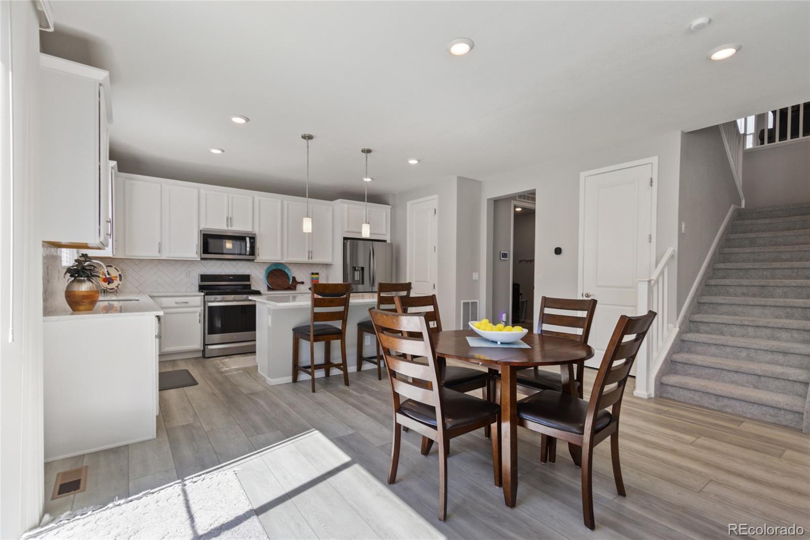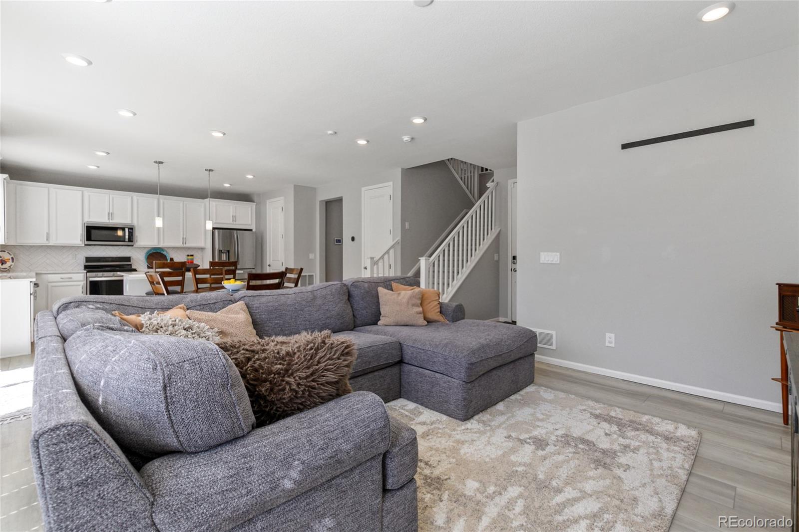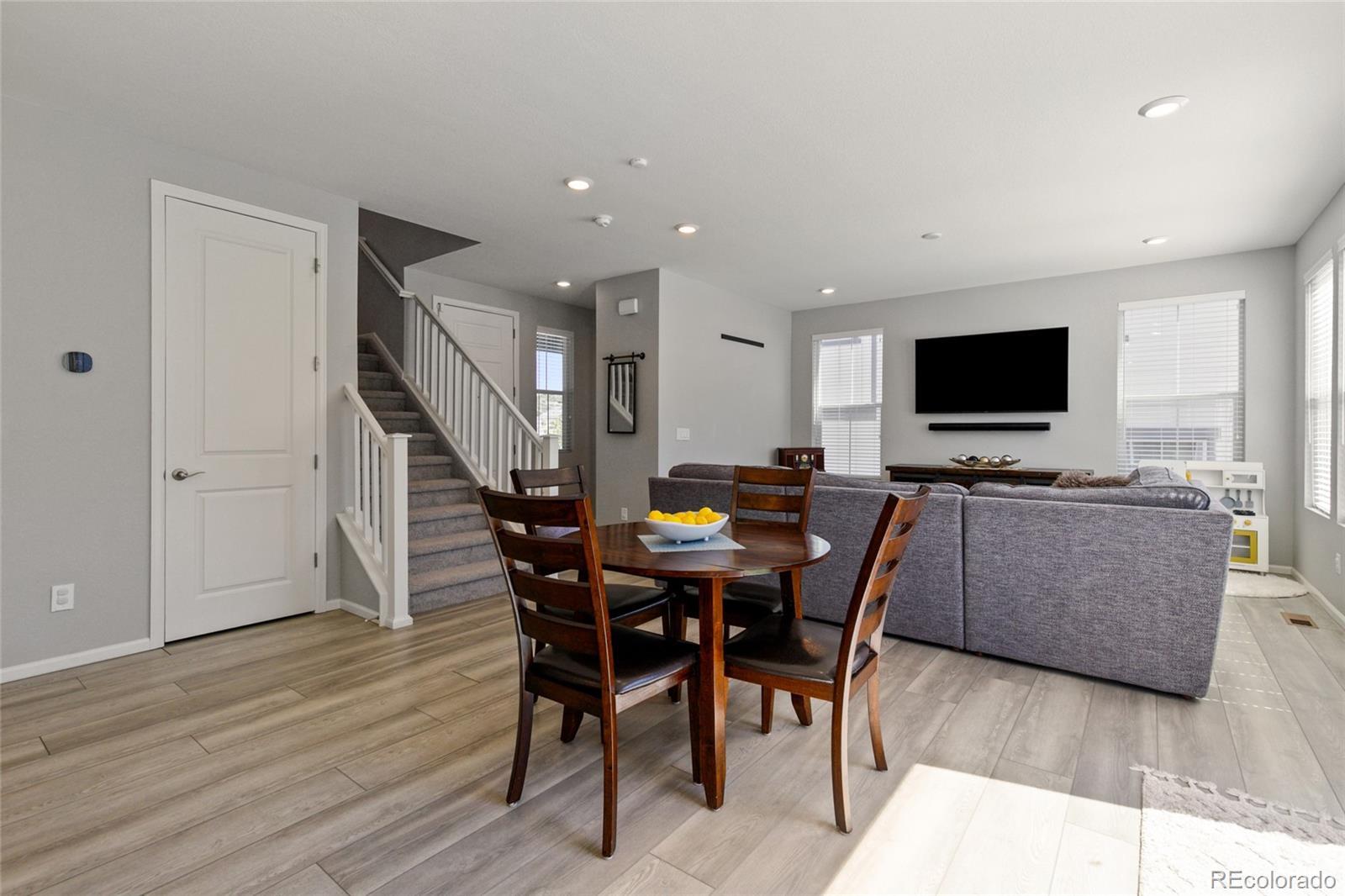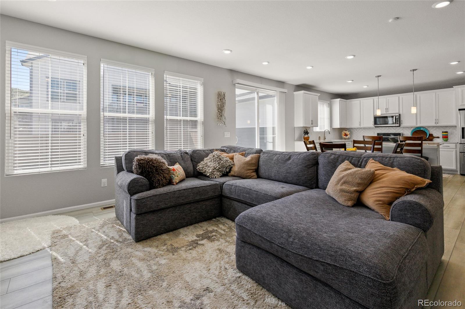 Step inside and experience a home that feels fresh, modern, and filled with light. From the moment you enter, sunshine pours into the open kitchen and living spaces, creating a setting where mornings feel brighter and evenings gather naturally around the island. The kitchen is designed as the true heart of the home, with a large island that welcomes conversation and connection, an adjacent dining area, and an easy flow to the back patio. Whether it is a casual breakfast, an afternoon with friends, or dinner that spills outdoors, this is a space built for everyday living. Upstairs, the loft becomes a cozy hideaway, offering just the right balance of comfort and flexibility. It is the perfect spot for a movie night, a quiet reading corner, or a productive space for remote work. Throughout the home, natural light enhances the sense of openness and calm, creating a place that feels both uplifting and welcoming. Built only three years ago, this home combines contemporary design with peace of mind. Updates such as a tankless water heater, smart thermostat, humidifier, and water softener make daily life easier and more efficient. Durable LVT flooring adds style and warmth, while a fully finished garage provides clean, organized storage. With its thoughtful design and newer systems, this home allows you to spend less time worrying about maintenance and more time enjoying life. Beyond the front door, The Meadows offers a lifestyle that blends activity and community. Enjoy summer afternoons at the pool, concerts in the park, fall festivals, and holiday traditions. Trails, parks, and open space invite biking and hiking just minutes away, while Castle Rock’s shopping, dining, and events add the charm of a small town with modern conveniences. This is not just a house, it is a place where everyday routines become lasting memories. Come and feel the story that could be yours.