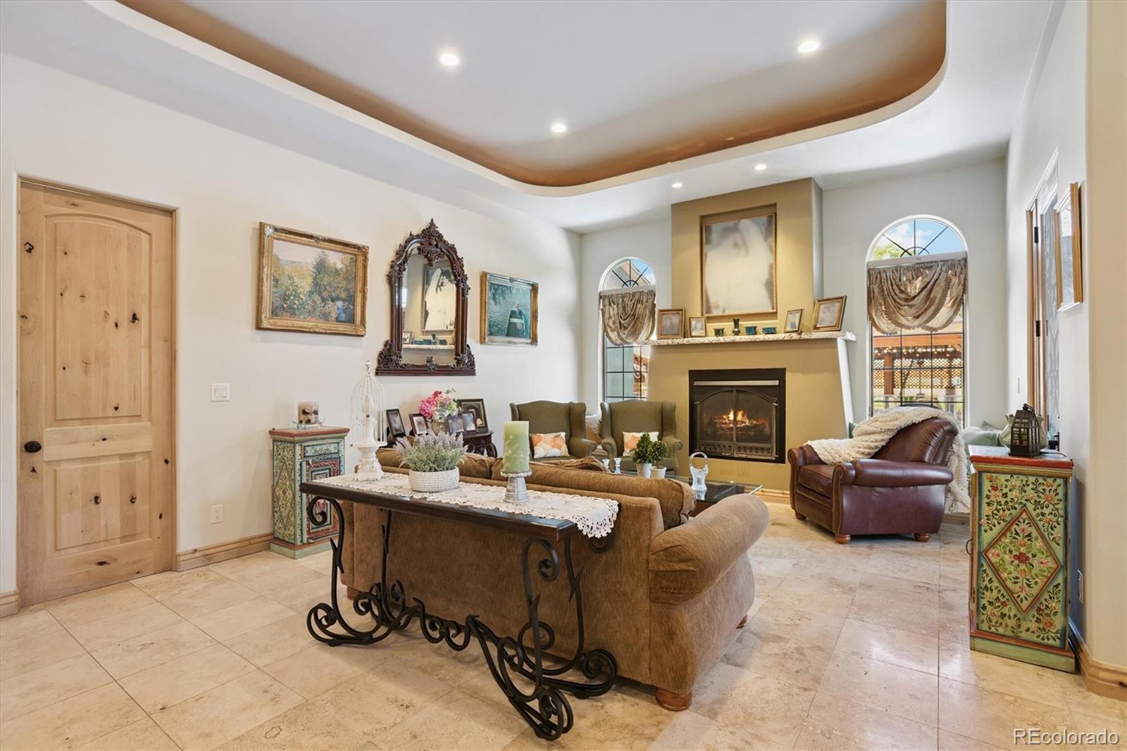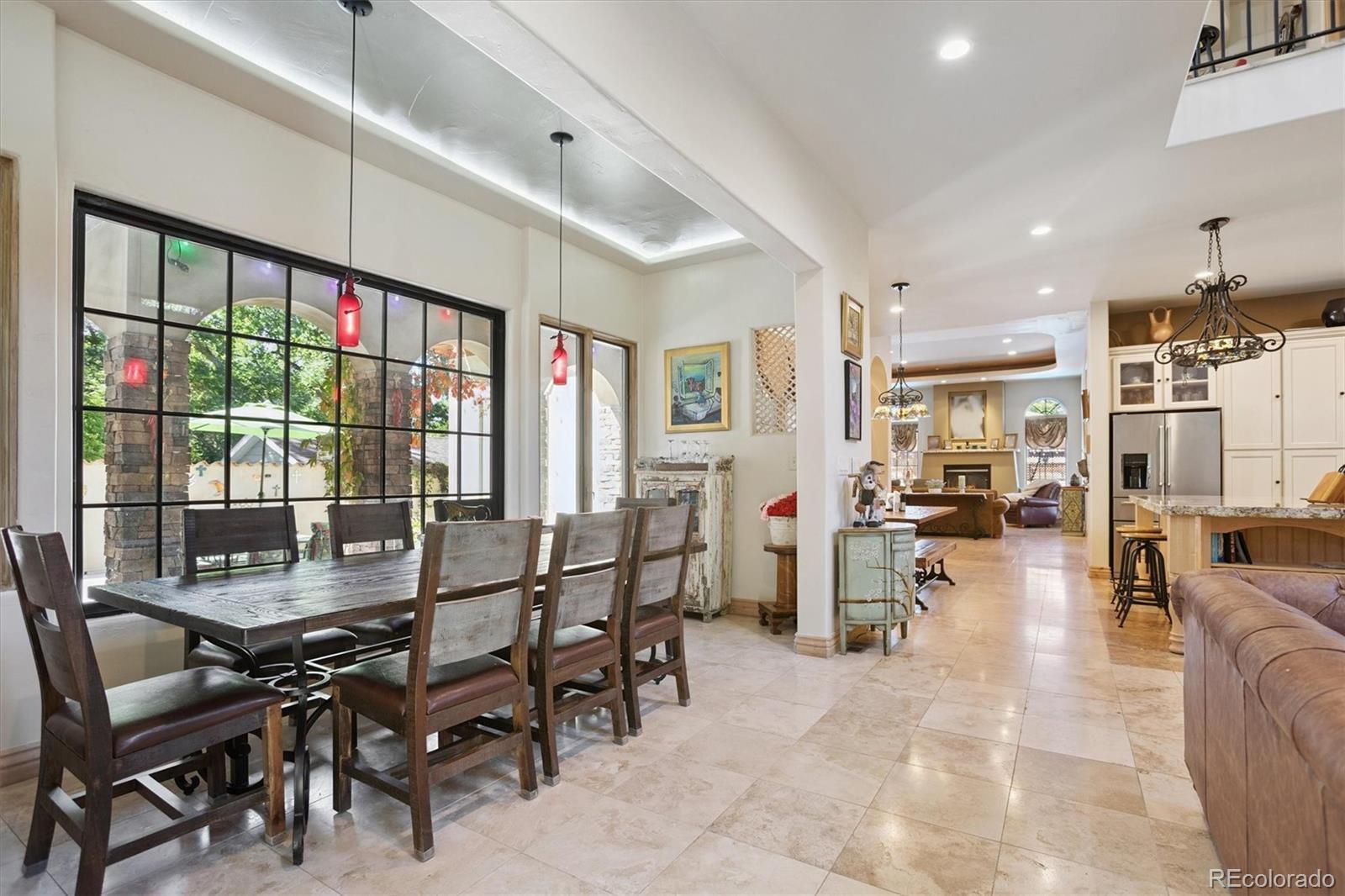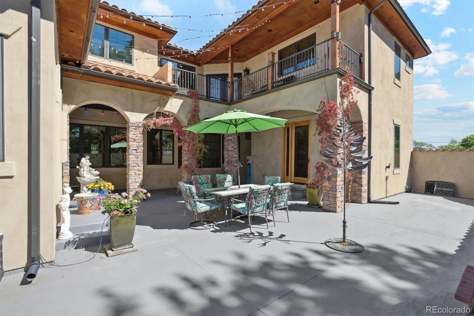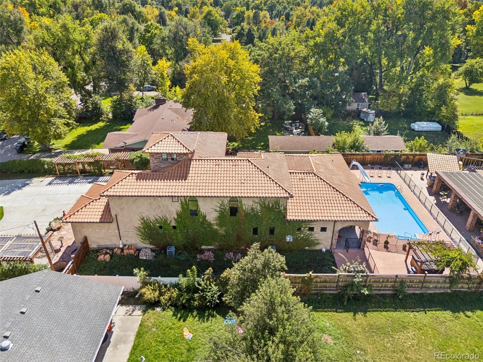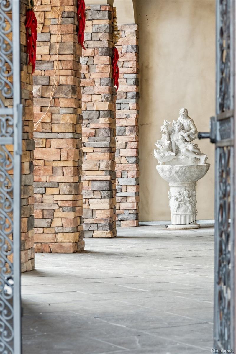 This Tuscan inspired estate, designed by renowned architect Dan Sater, sits on a rare oversized lot in West Lakewood, Colorado, directly bordering Crownhill Lake Park. Blending timeless European elegance with modern luxury, the home features redwood framed pergolas, soaring Tuscan clay rooflines, and rustic stucco and stone details that evoke the charm of the Old World. A gated entry opens to a private south facing courtyard adorned with imported accents from Italy and India, an inviting inground pool, and a pergola covered hot tub. Inside, refined finishes include travertine floors, Alder wood trim, and a grand living room centered around a stately fireplace. The primary suite offers a secluded retreat with its own dressing room and spa like ensuite. A gourmet kitchen with custom cabinetry and granite countertops flows seamlessly into a dramatic family room with vaulted ceilings and an adjoining wine tasting room. Upstairs, an entertainment lounge with a full bar overlooks the family room, while two spacious bedrooms capture breathtaking views. A third floor studio offers panoramic vistas of both the mountains and downtown Denver. The lower level extends the living space with two additional bedrooms, a game room, and a full bath. Beyond the main residence, a detached home office, workshop, and mechanical room provide flexibility and function. Resort style amenities include a covered pavilion and bar, perfect for year round entertaining.With its blend of seclusion and convenience, just minutes from trails, fine dining, skiing, and downtown Denver, this estate delivers the perfect balance of luxury, privacy, and Colorado lifestyle.
