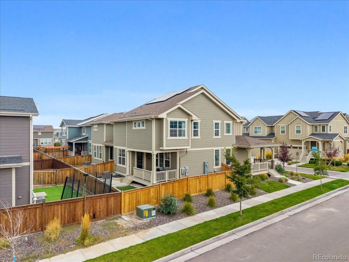 Welcome to this like new paired home, built in 2022, offering modern design and comfort on a desirable corner lot. The corner placement not only gives you added privacy but also the bonus of extra street parking right next to your home. Relax outdoors on the charming front porch or the spacious back deck—perfect for morning coffee or evening get-togethers. Step inside to an inviting open-concept kitchen, perfect for entertaining. The oversized island is the centerpiece, offering plenty of prep space and room for gathering. From the kitchen, enjoy easy flow into the living and dining areas. The unfinished basement comes with rough-in plumbing, giving you the opportunity to expand and customize to fit your needs in the future. Upstairs, you’ll find three generously sized bedrooms, each with its own walk-in closet. The primary suite and additional bedrooms are complemented by two full baths and a versatile loft area—ideal for a home office, playroom, or lounge. This home also comes with leased solar panels, helping to keep utility costs down while supporting energy efficiency. As an added bonus, $5,000 incentive with preferred lender, giving you more flexibility to lower your closing costs or interest rate.