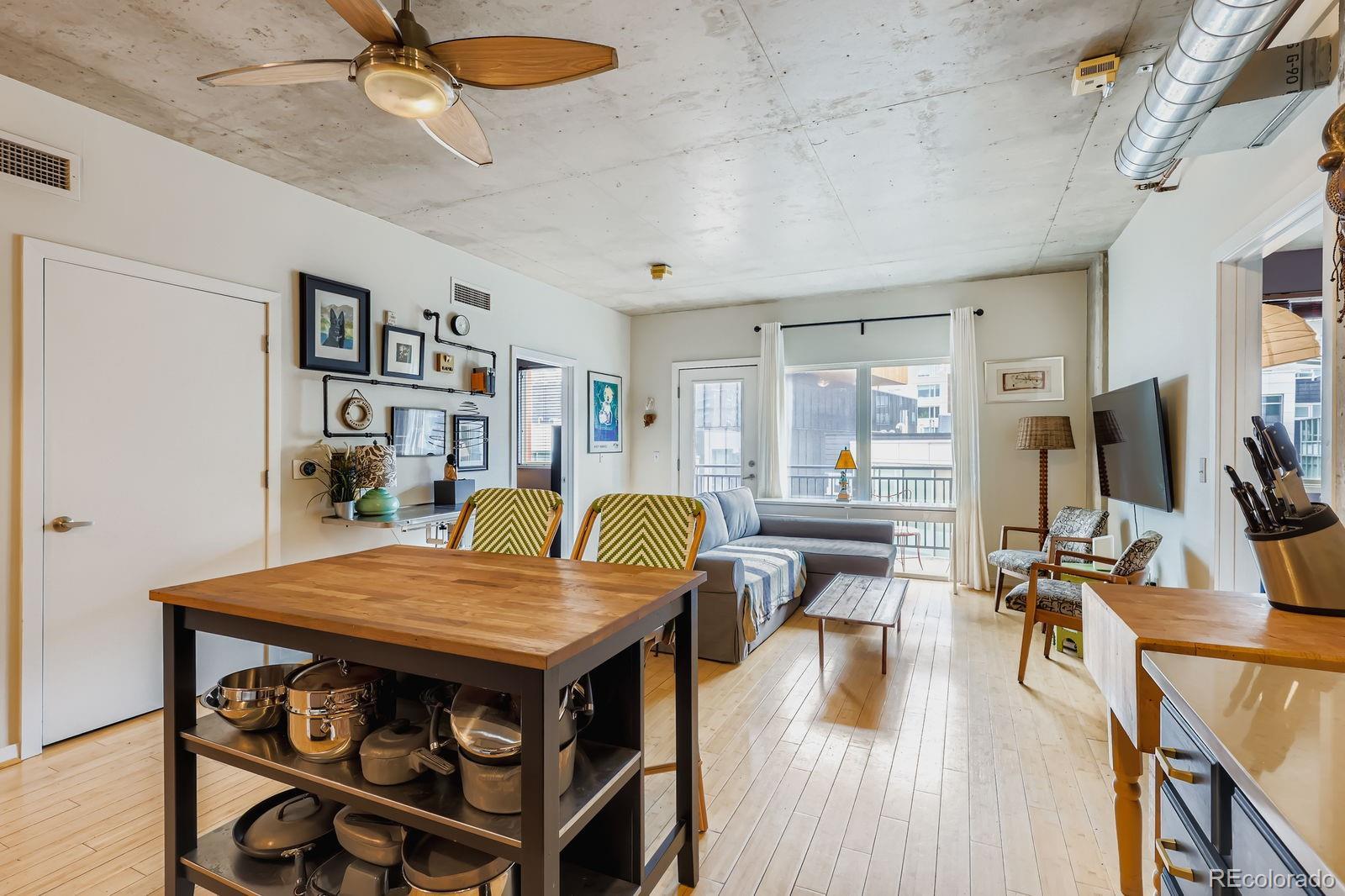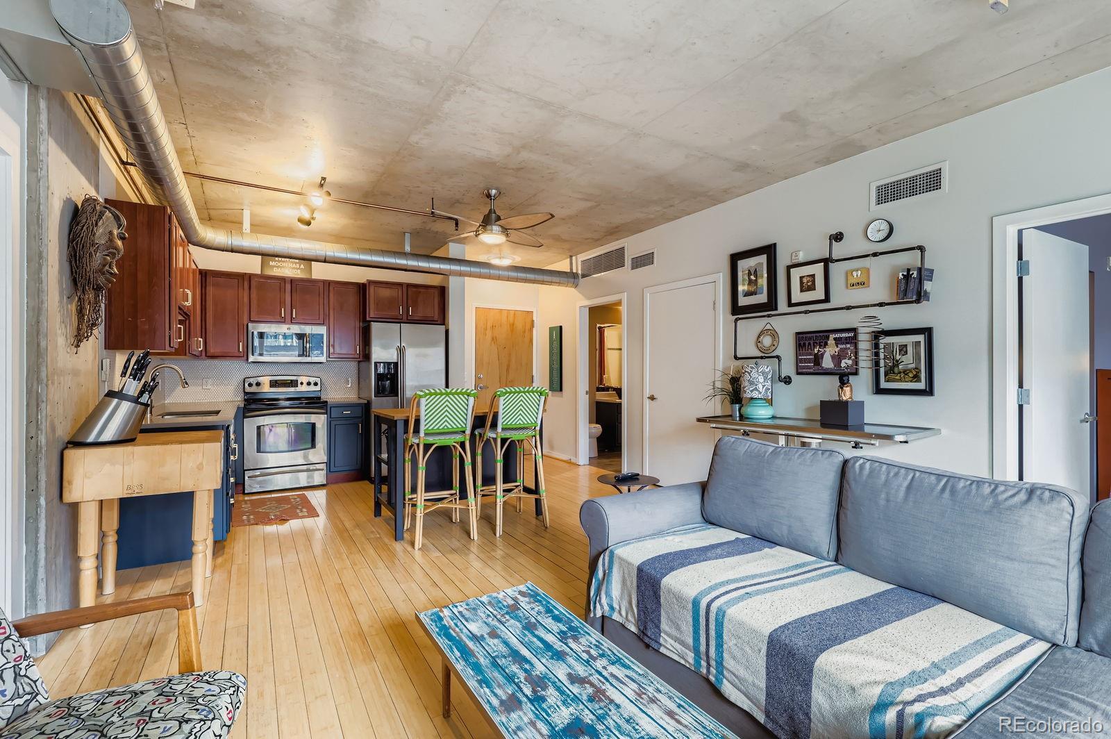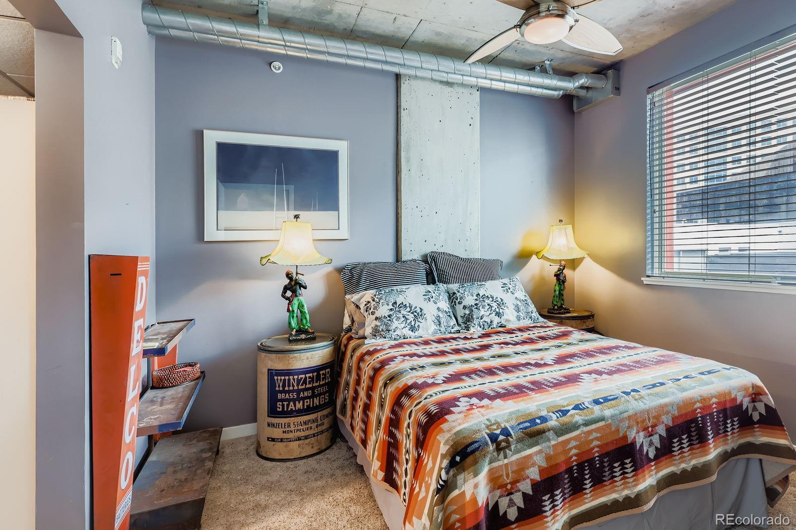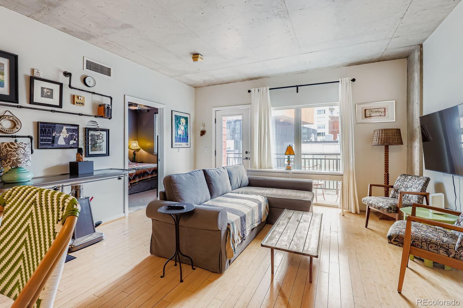 Don't miss an opportunity to buy in this beautifully maintained LoDo condo building! For the first time in 20 years, this unit is now available with no income restriction covenant. This 3rd floor true 2 bedroom, 1 bathroom unit faces southeast towards downtown so railroad traffic noise is not an issue. The kitchen features quartz countertops, stainless steel appliances, and modern two-tone cabinets. The kitchen flows into the living area that is filled with natural light. The spacious and private balcony offers great views of the city. The primary bedroom features a massive walk-in closet that also houses the included washer & dryer. The spare bedroom is on the opposite side of the unit from the primary and would also function well as an office. The jack-and-jill style bathroom is tucked away at the entrance of the unit and features modern tile and an oversized vanity. This unit has 1 deeded parking space in the secured and covered parking garage. Excellent location with all the amenities Denver has to offer at your doorstep!