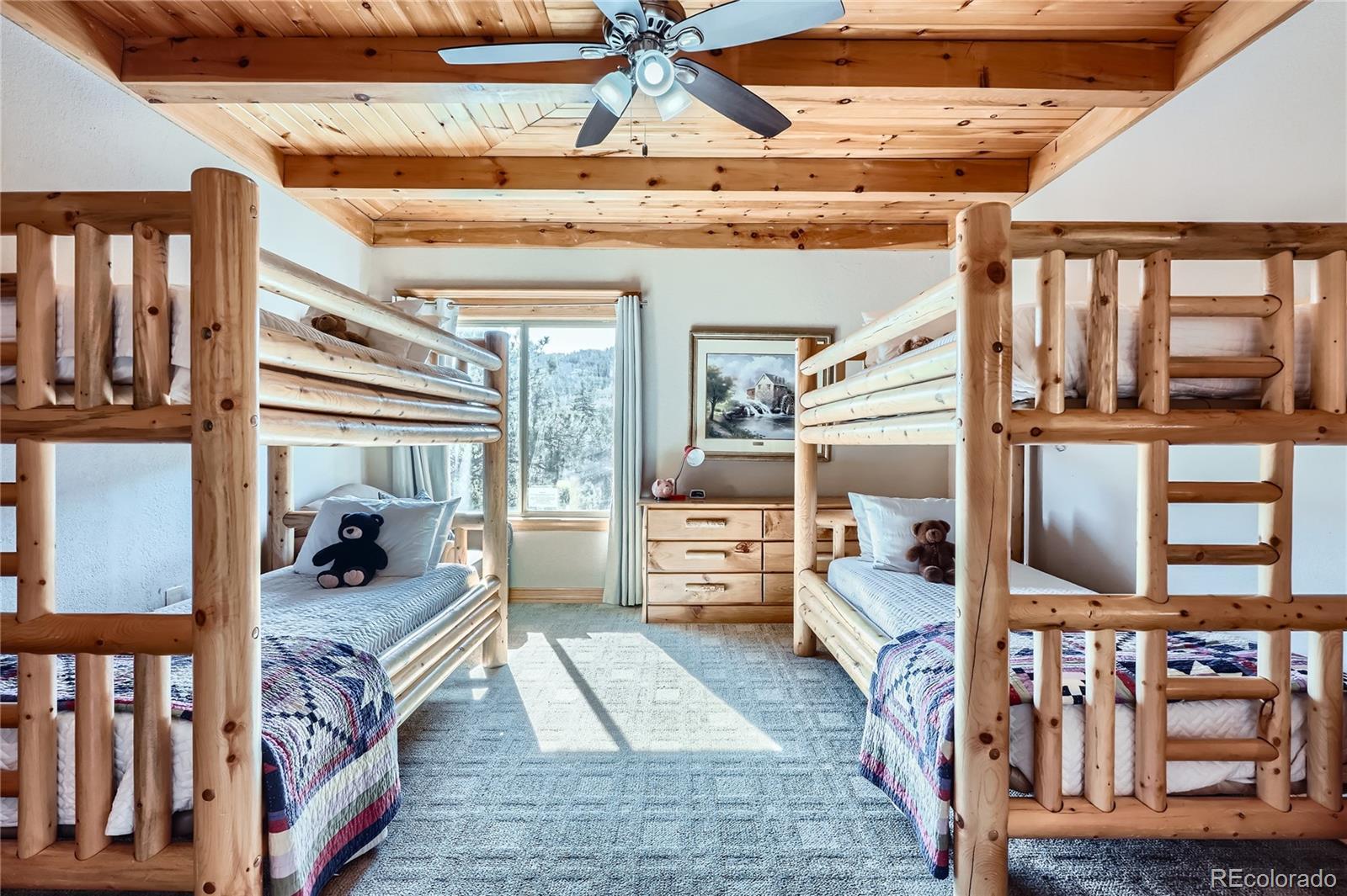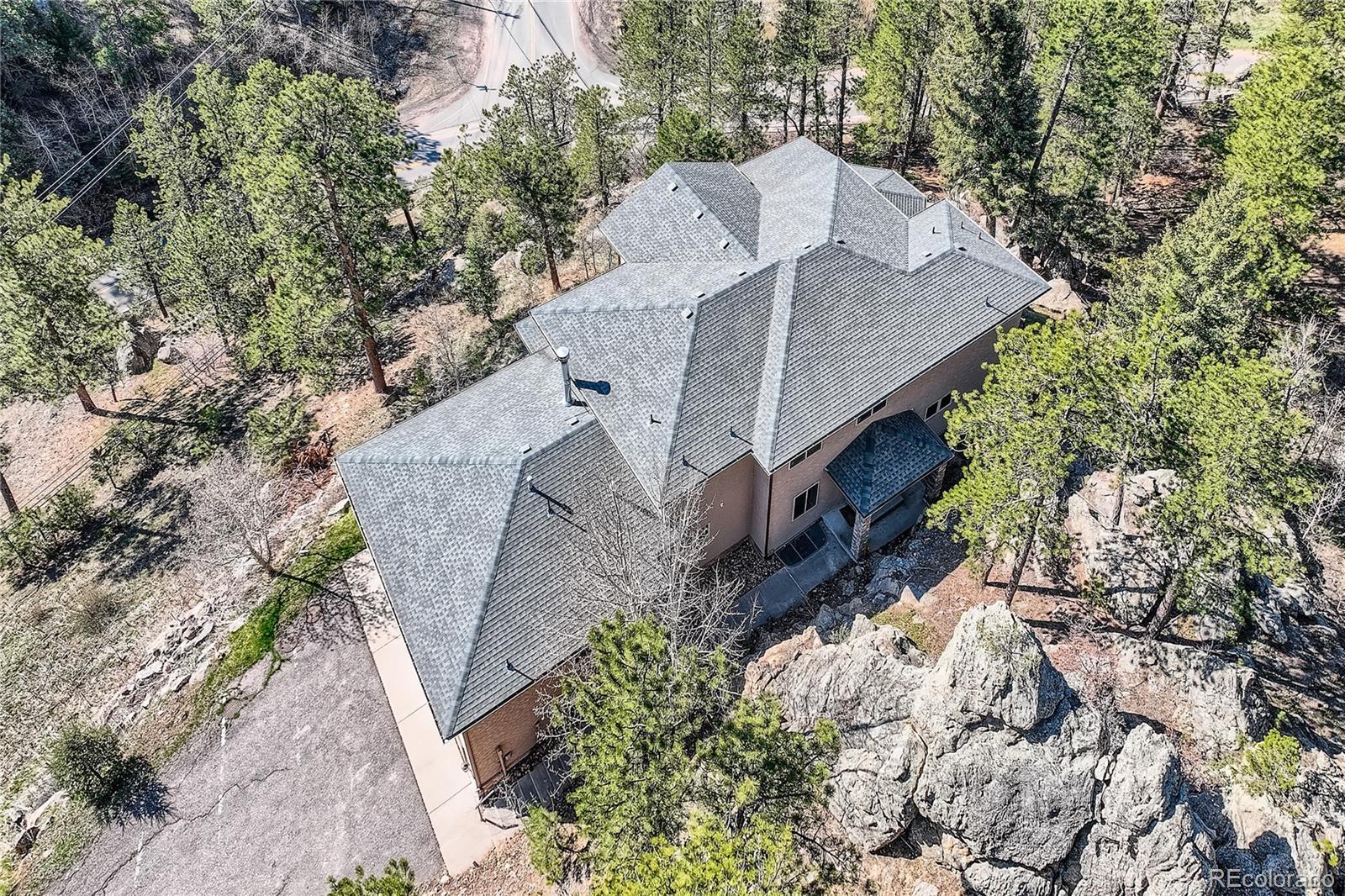 Welcome to a beautifully crafted multi-generational mountain home overlooking Turkey Creek Canyon. This peaceful oasis has everything you could want in a mountain home; designed with scenic surroundings, a spacious layout, and versatile living spaces. The main floor features a home office with hillside views, a stunning great room, vaulted ceilings, and a dramatic two-story stone gas fireplace. Enjoy the large dining room, main floor laundry, guest bath with a shower, wrap-around deck, and an upscale cook’s kitchen, complete with hickory cabinetry, 2 dishwashers, a 48” refrigerator, 6 burner gas stove, double oven, and 2 sinks. A highlight of the home is the main-floor primary suite, which could easily serve as an in-law suite. This suite has a sitting room, a private deck, a kitchenette, a stone-enclosed gas fireplace, and a spa-like bathroom, with a jetted tub overlooking the canyon, a walk-in shower, and a spacious closet with built-in cabinets. Upstairs are two large bedrooms, each with walk-in closets and a connecting full bath with two sinks. Cross the open bridge to the second primary bedroom suite with a private deck, a large 5-piece bathroom including separate sinks, jetted tub, marble shower, and another large walk-in closet with built-ins. The walk-out basement has 10’ ceilings, a large game/media area, two bedrooms, a full laundry closet, a flex room, and a wood-burning fireplace. Built with craftsmanship, this home offers too many extras to list them all. Highlights are: whole house radiant floor heating with 10 thermostats for zoned heat control, timber integration, solid wood doors, marble and sandstone tiling, granite counters, and much more. Recent improvements include a 50-year roof, a new high-efficiency boiler system, upgraded insulation, and more. All this is within 5 minutes of retail or hiking trails, but after hearing the creek running and watching all the wildlife. This one-of-a-kind mountain home is a rare find—schedule your showing today!