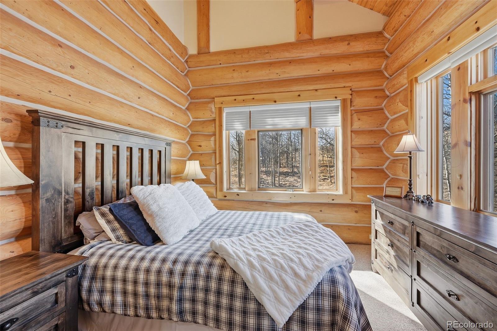 Escape to your own private mountain retreat just outside of Fairplay in the coveted Silverheels Ranch — where refined luxury meets untouched Colorado wilderness across five breathtaking acres. This extraordinary custom log estate spans 6,200 square feet of masterfully crafted living space, seamlessly blending rustic grandeur with elevated comfort. Soaring vaulted ceilings, intricate hand-hewn log beams, and expansive windows fill the home with natural light while framing stunning alpine views. A dramatic floor-to-ceiling moss rock fireplace anchors the great room, creating an inviting space perfect for cozy mountain evenings. The gourmet chef’s kitchen is thoughtfully designed for both everyday living and elevated entertaining, featuring top-tier appliances, generous prep space, and effortless flow into the open-concept living and dining areas. With six spacious bedrooms and six bathrooms, the home comfortably accommodates family and guests alike. The fully finished walkout basement expands the living space with direct patio access —ideal for entertaining or relaxing under Colorado’s star-filled skies. A private lock-off apartment above the garage offers additional guest or caretaker accommodations, adding flexibility and income potential. The property also boasts a newer custom log barn complete with an oversized garage, office, fitness room, and entertainment space—perfect for recreation, hobbies, or remote work. An expansive deck invites you to enjoy crisp mountain air and unforgettable sunsets. Homeowners may also keep up to two horses on site. Enjoy the nearby private fishing ponds and hiking trails. Park County offers a wide array of outdoor recreation and access to world-class skiing in Summit County which make this an unparalleled mountain lifestyle opportunity. Whether you envision a full-time luxury residence, an income-producing retreat, or a private outdoor sanctuary, this remarkable Colorado estate delivers the ultimate mountain living experience.
