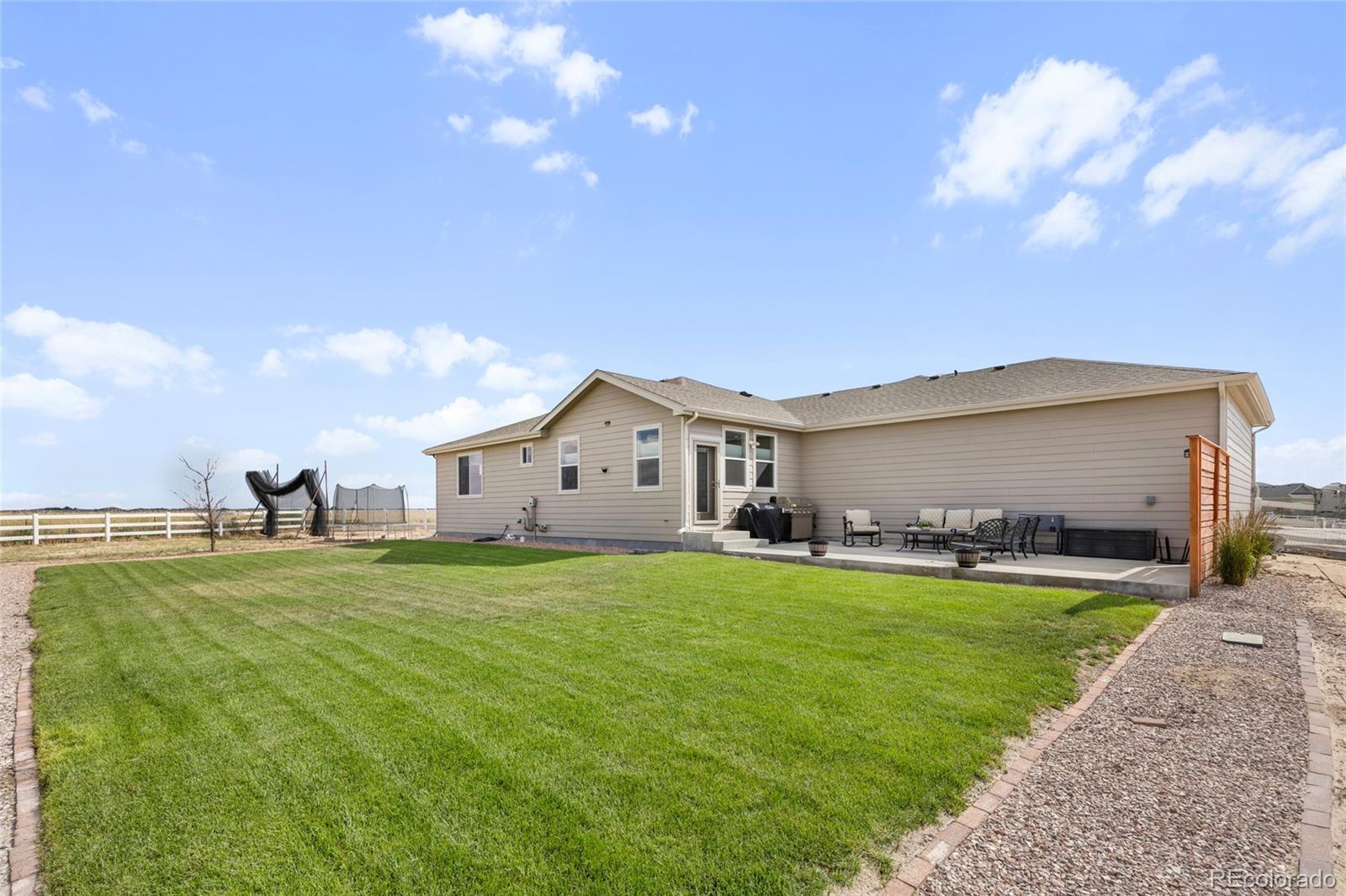 Come discover where space, style, and scenic views come together beautifully in this stunning ranch-style home located in the sought-after Box Elder Creek Ranch community. Nestled on just over an acre at the end of a quiet cul-de-sac, this home offers peaceful surroundings, wide-open skies, and breathtaking mountain views — the perfect blend of comfort and Colorado living. Step inside and you’re welcomed by an open, light-filled floor plan featuring vaulted ceilings, sleek laminate hardwood floors, and a cozy gas fireplace anchoring the main living area. The heart of the home is a chef-worthy kitchen complete with a large quartz island, 42” cabinets, matte black appliances, and an eye-catching tile backsplash, all framed by oversized windows that capture views of the rolling plains and distant peaks. The main-floor primary suite provides a private retreat with a spacious walk-in closet and a walk-in shower. Downstairs, the fully finished basement expands the living space with a generous family room, two additional bedrooms, and a full bathroom — ideal for guests, teens, or multi-generational living. Step outside to enjoy a thoughtfully landscaped backyard with an open patio, gas BBQ hookup, and 50-amp hot tub connection ready for relaxing evenings under Colorado’s famous sunsets and star-filled skies. The fully fenced yard offers room for pets, gardening, or simply enjoying the serenity of your over one-acre property. Perfectly positioned to offer peaceful country living while maintaining convenient access to daily amenities, the home is just minutes from Horse Creek Reservoir, Barr Lake State Park, and offers easy access to Brighton, Hudson, DIA, and major commuting routes for shopping, dining, and travel convenience. If you’ve been searching for space, functionality, and modern comfort away from city congestion yet still within reach of everything you need, this Hudson gem is ready to welcome you home.