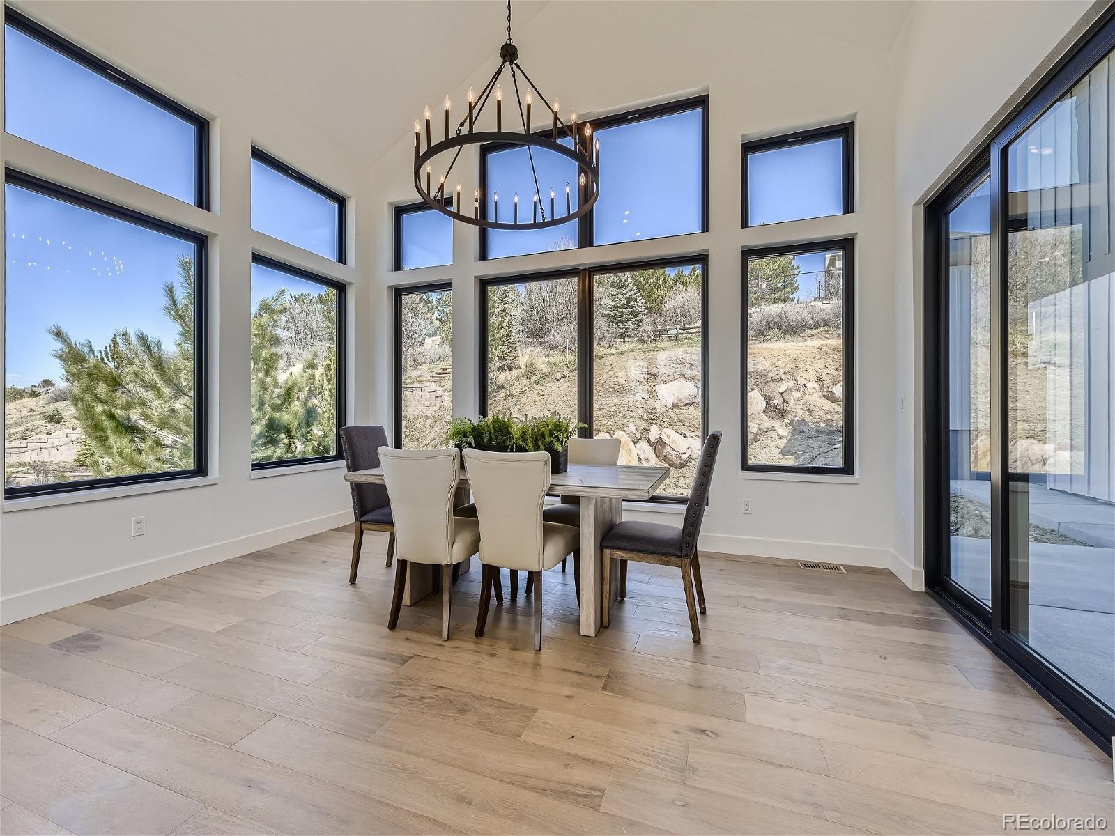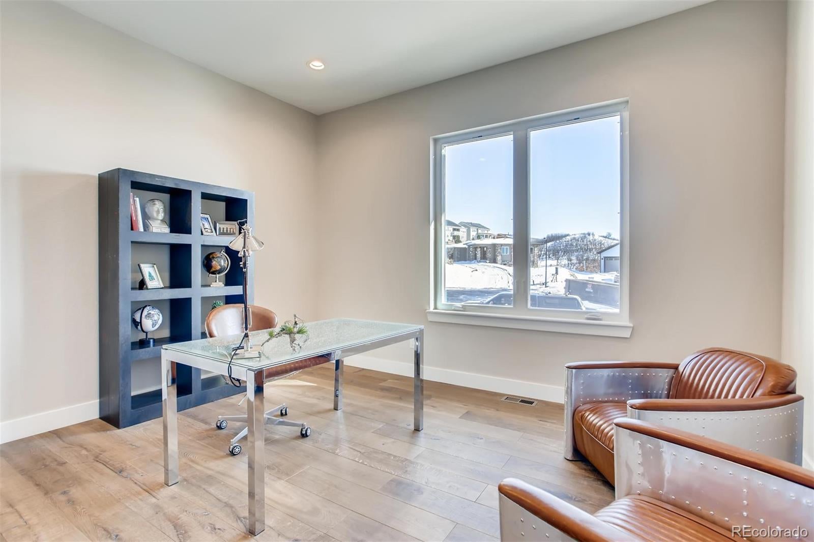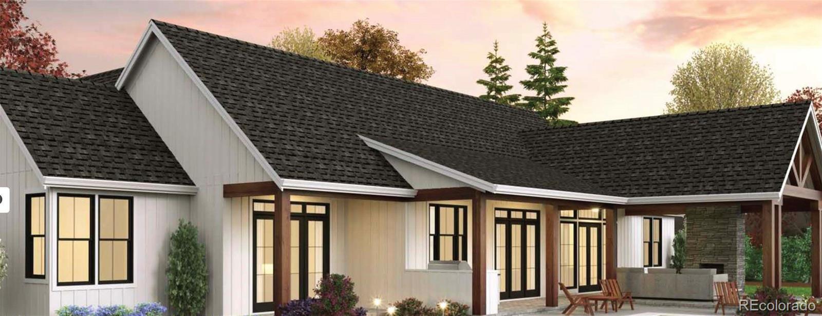 This custom ranch home sits on 1/2 an acre with unobstructed views of Pikes Peak from the great room, dining, expansive rear covered deck and master bedroom. Located in a quiet cul-de-sac, you'll live the Colorado dream. The home features 3 bedrooms + flex room + executive suite on the main floor with private garage and large open walkout basement, which can be customized to your liking. The main floor spans 3,775 sq' (585 sq' is the executive suite) and the basement boasts an additional 3,488. (Aprrox. 1,650 sq' of the basement finished with 1 bedroom, 1 bathroom, open area with walk-up wetter). Finished basement can be customized and upgraded). Finishes include hardwood floors, large island, designer lighting, stone accents, soft close cabinetry and light quartz countertops throughout. Notable features include: Flex room (office, additional bedroom, library, craft room or gym) and executive suite w/ separate exterior entrance and garage. This custom feature is perfect for a professional business owner that needs a working office space that is separate from the main living area. The executive suite includes a separate entrance, separate garage, large front welcoming lobby, restroom and private office that exits to the south side of the property. This is perfect for a business that needs to showcase a studio or design showroom, professional meeting space, workspace for a few employees, salon owner, etc. (space could otherwise be used as a Guest casita for an au pair or live in nanny. ) Covered rear deck with outdoor fireplace and kitchen, bonus flex room, mudroom, walk-in pantry/butler prep, upgraded appliance package, open-concept, hardwood floors. Interior finishes have been chosen: urban modern with clean lines. Some finishes can be chosen by Buyer. Photos depict other custom homes and are representative of the quality of included design finishes. All information is deemed reliable but not guaranteed.
