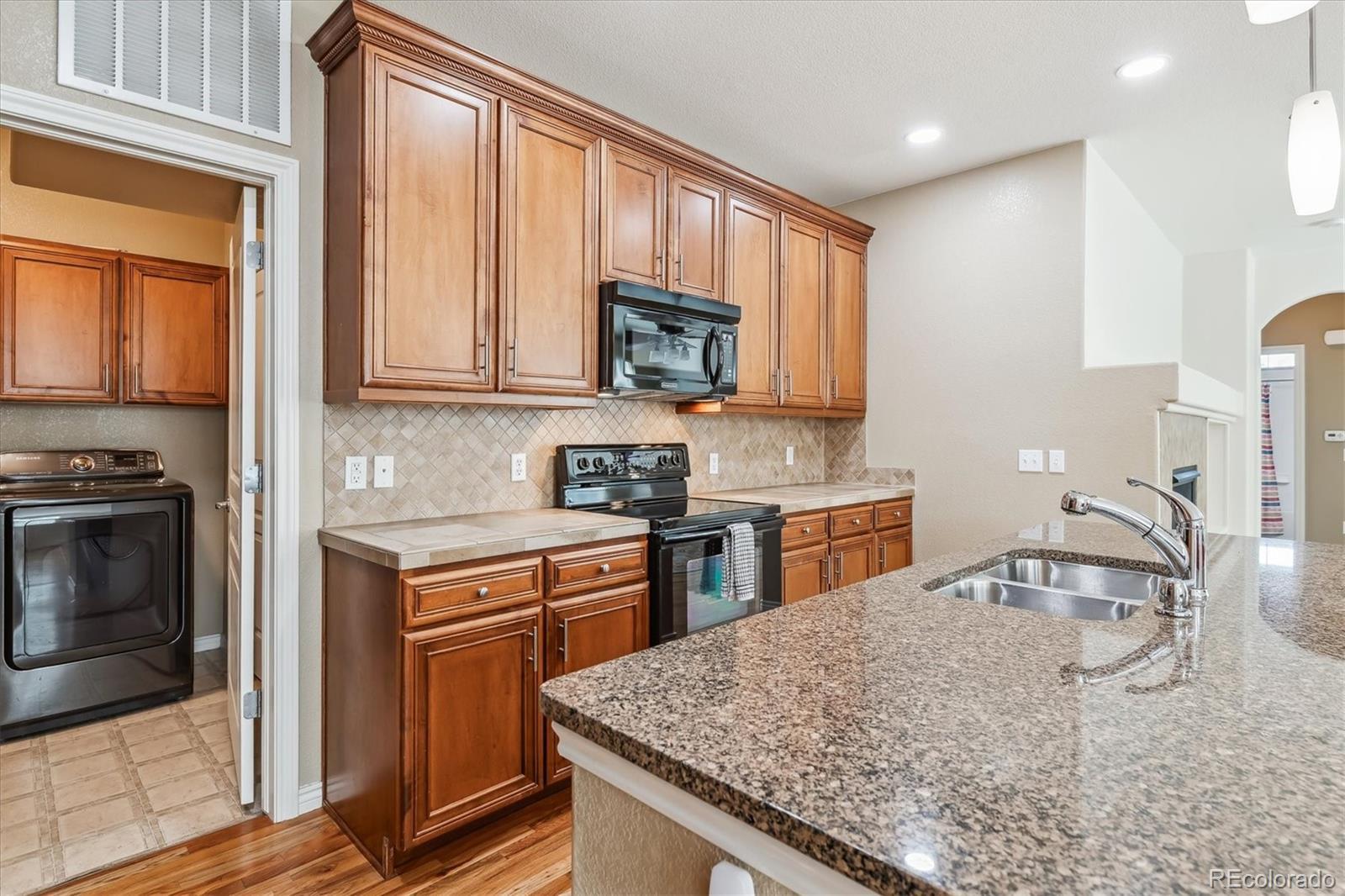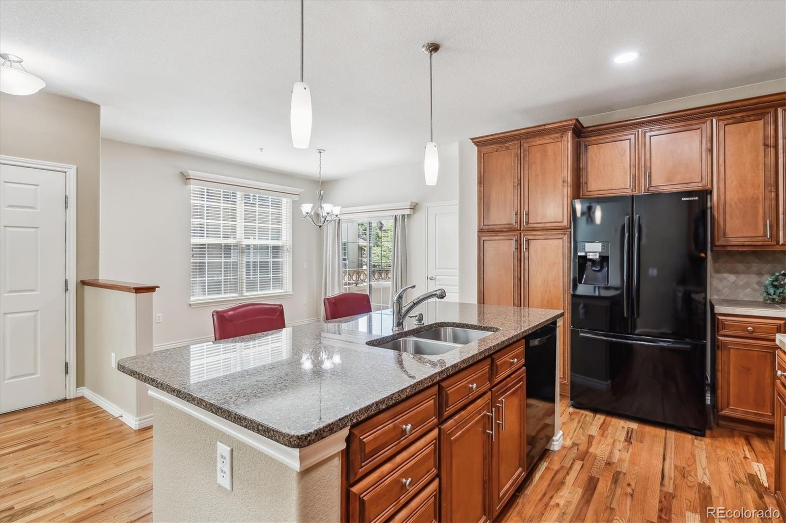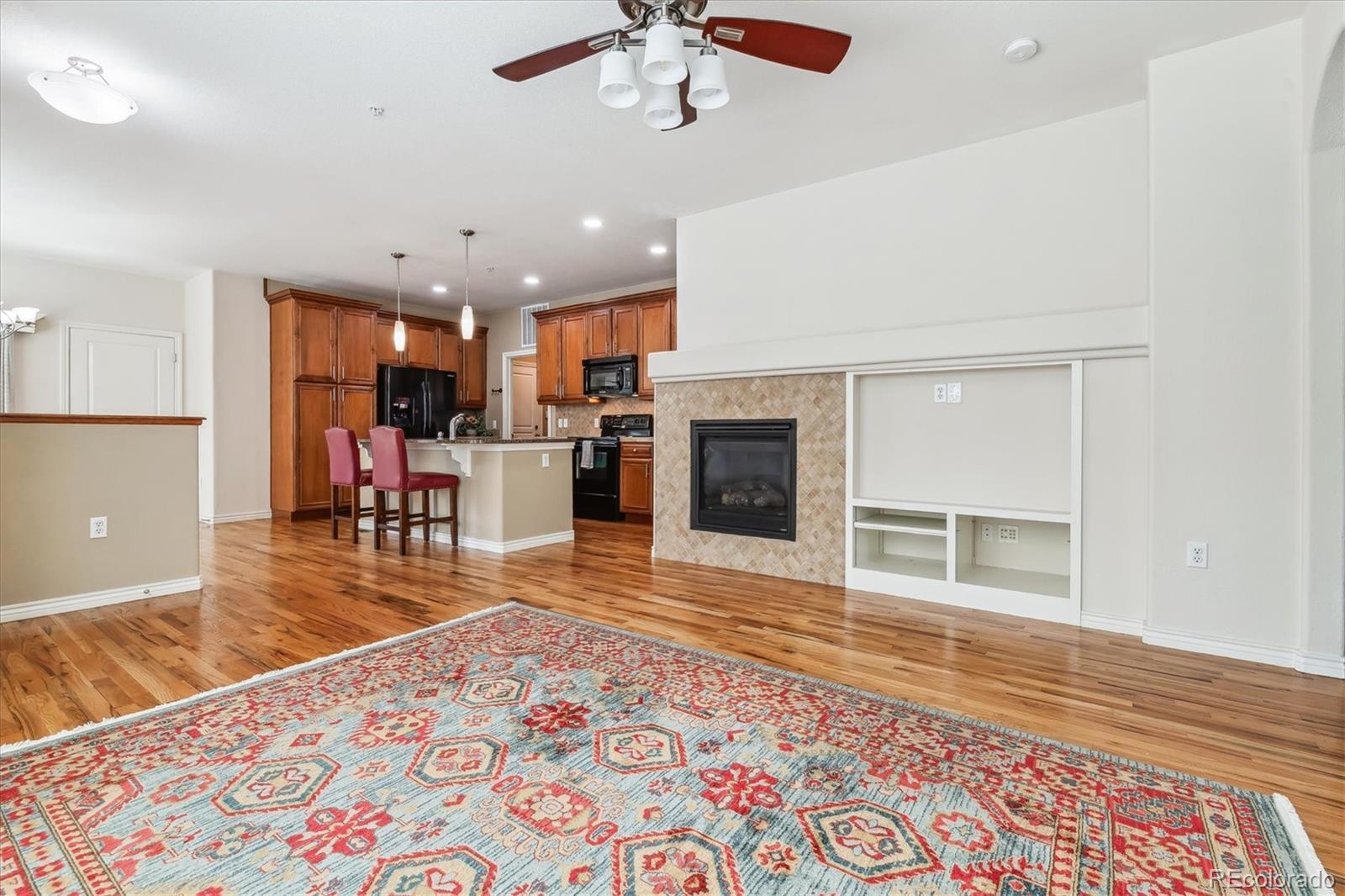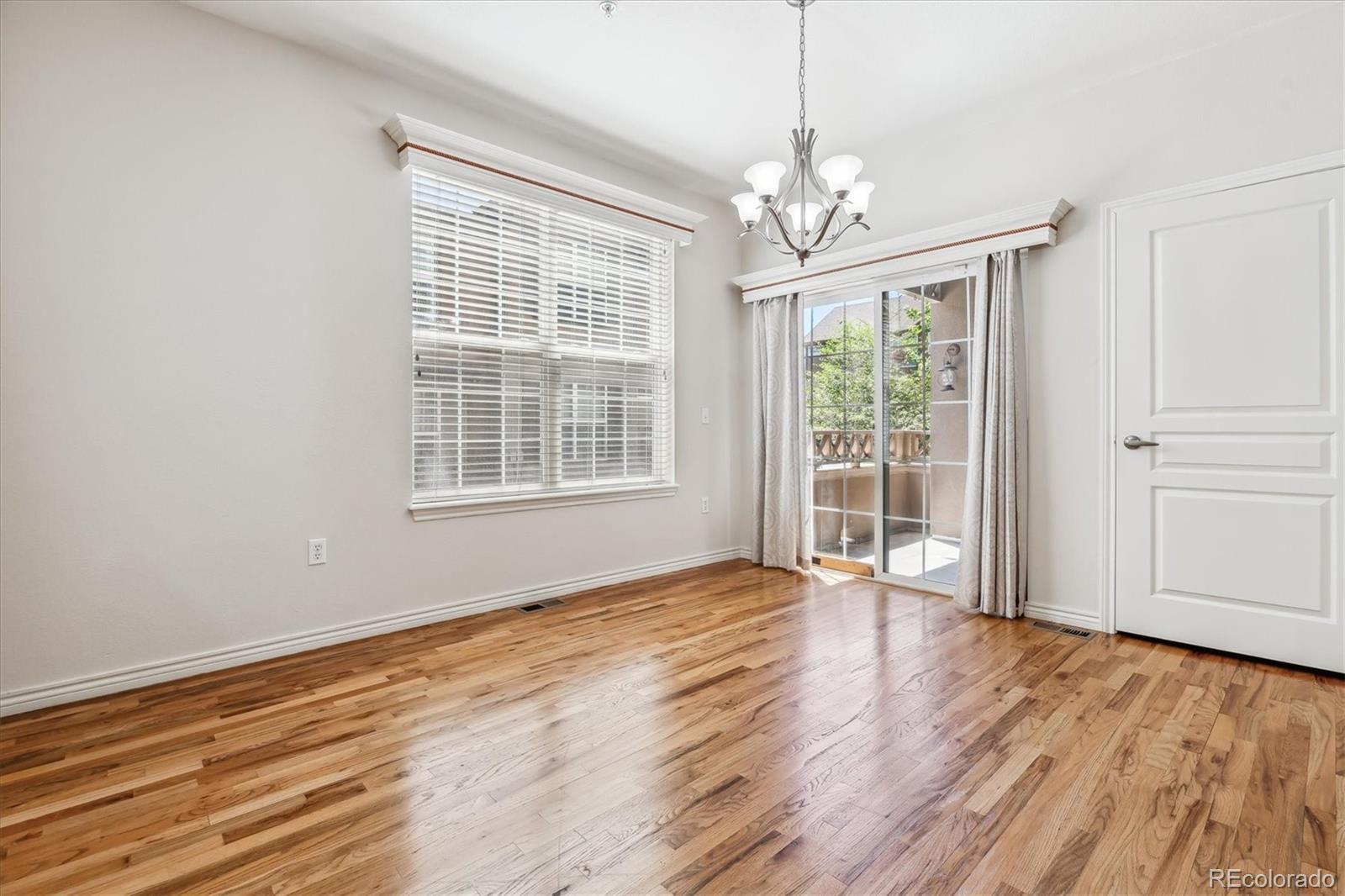 Spectacular turn-key ranch style end unit condo in the highly desirable Dancing Willows subdivision. All main floor living with one of a kind views of a large open space with native meadow plants and trees. Light and bright with lots of windows. Open floor plan, that is set up perfectly for entertaining. Enter thru the private East facing entrance and into a large living room with beautiful site finished hardwood floors, gas log fireplace with blower and custom tile surround built including built in niches. Just off of the living room is the well appointed eat-in kitchen dining/nook area that overlooks the private covered patio with large storage closet thru a large glass sliding door. Large kitchen with custom wood cabinetry including 42" upper cabinets, eat-in island with slab granite countertop, pantry, appliances including french door refrigerator, and custom tiled backsplash. Conveniently, located mud/laundry room (includes washer and dryer) just off of the private entrance to the South facing one car garage and private driveway. Updated main full bathroom. Large guest room with open space views. Primary bedroom with meadow views and large 5 piece primary bathroom with soaking tubc, custom glass shower enclosure, dual vanities, tiled floors, tub and shower surrround. Large walk in closet with custom built ins. Fresh interior paint, new carpet (in bedrooms). Updated plumbing, hardware and lighting (including ceiling fans and LED can lights), window blinds and treatments. Affordable HOA dues that cover most services and include community pool, spa/hot tub, playgound, trails, community pond plus much more. Close to evrything including, restaurants, shopping (SouthWest Plaza), parks, trails, schools, major highways (C-470 I-70, HWY 285) and throughfares plus much more!