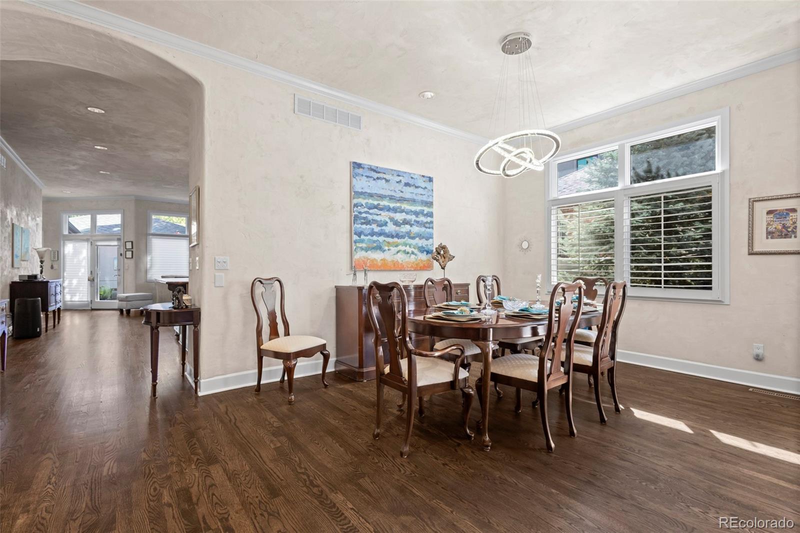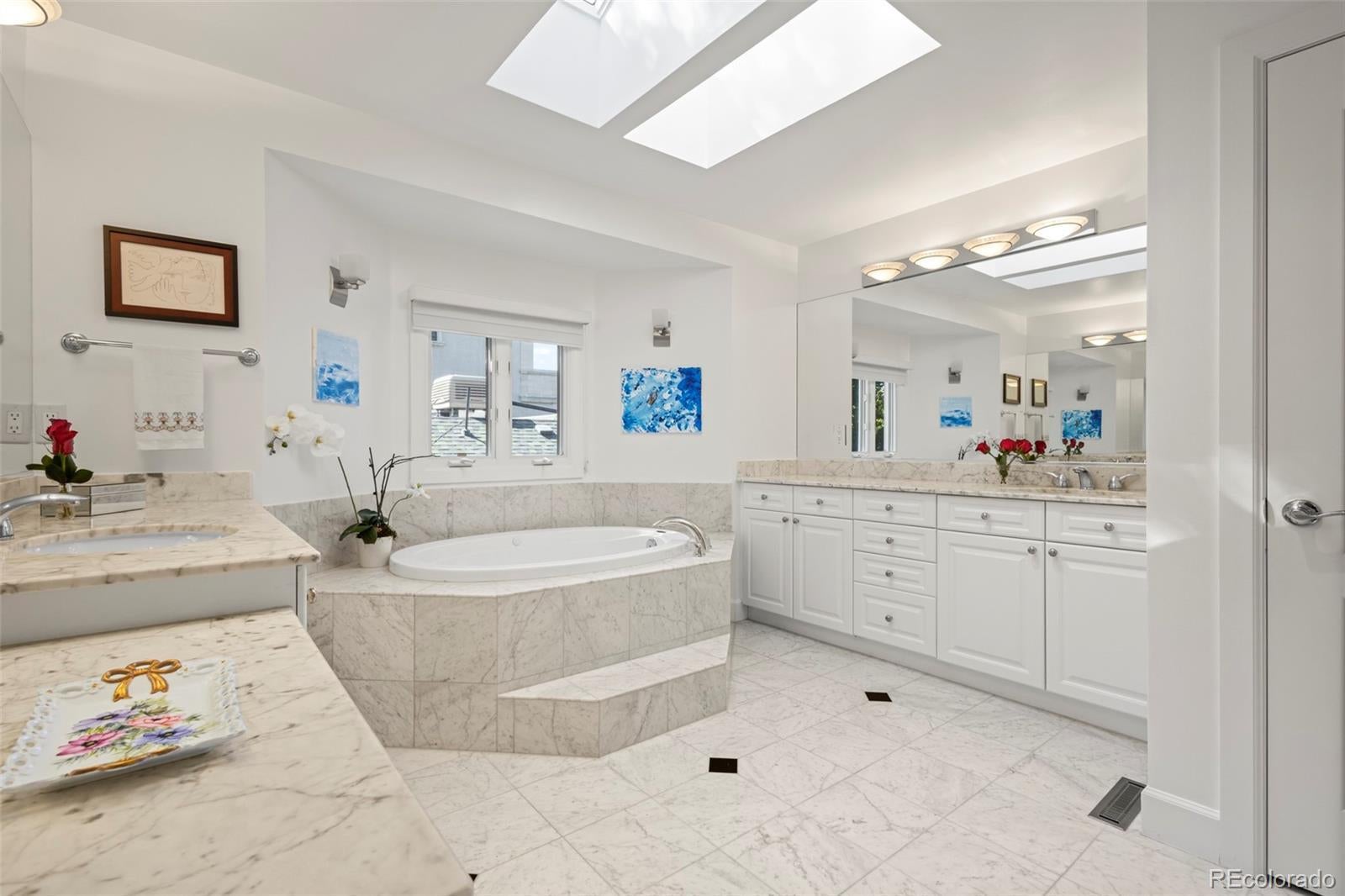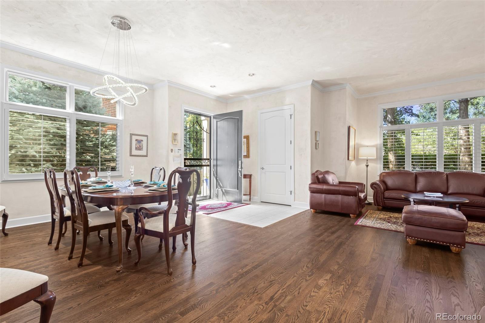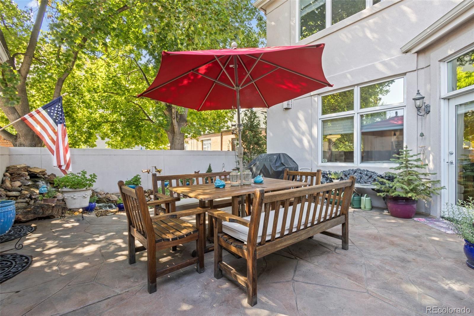 Luxury details abound as well as natural light, extra windows, extra wide unit, sophisticated finishes. With privacy and green surroundings, this corner unit feels like a single family home. Located in the prestigious Cherry Creek North neighborhood, where restaurants, Whole Foods, Post Office, banks, Cherry Creek shopping mall and luxury shops are minutes away. Formal living room and dining room w/ fireplace, refinished hard wood floors, hand plastered walls that resemble a Tuscan villa, extra windows that allow for natural light and a dreamy patio to spend most of the year w/ a waterfall, pond and fire pit. A quiet urban oasis! The main floor features a formal living room and dining room with a spacious coat closet, refinished hard wood floors, ample kitchen has slab granite counters, some new stainless appliances, a wine cooler, gas stove, surrounded by pine trees. The guest bathroom is luxurious with a stunning chandelier and hand finished walls. Heated garage is attached and it has extra storage. The upper floor features 3 bedrooms, 2 baths and a laundry closet. The extra large main bathroom has impressive large new glass skylights, marble floors and counters, shower and a jacuzzi tub. The second bedroom overlooks a private patio with a tree view, a perfect spot to check out the Country Club's fireworks. The basement with a large family room w fireplace, two bedrooms/one bath, wet bar, bar and gym area allows for multi family living. Bromwell Elementary as well as Good Shepperd Catholic School are a block away. A quarterly fee of $825 covers the landscaping, tree maintenance, snow removal and gutters cleaning. New roof, new gutters, new a/c, new furnace, new climate control system, new security cameras, new humidifier, new fridge, refinished hardwood floors, cleaned ducts, new skylights in principal bathroom and hallway, new garage door motor and springs. Quiet surroundings, a must see.