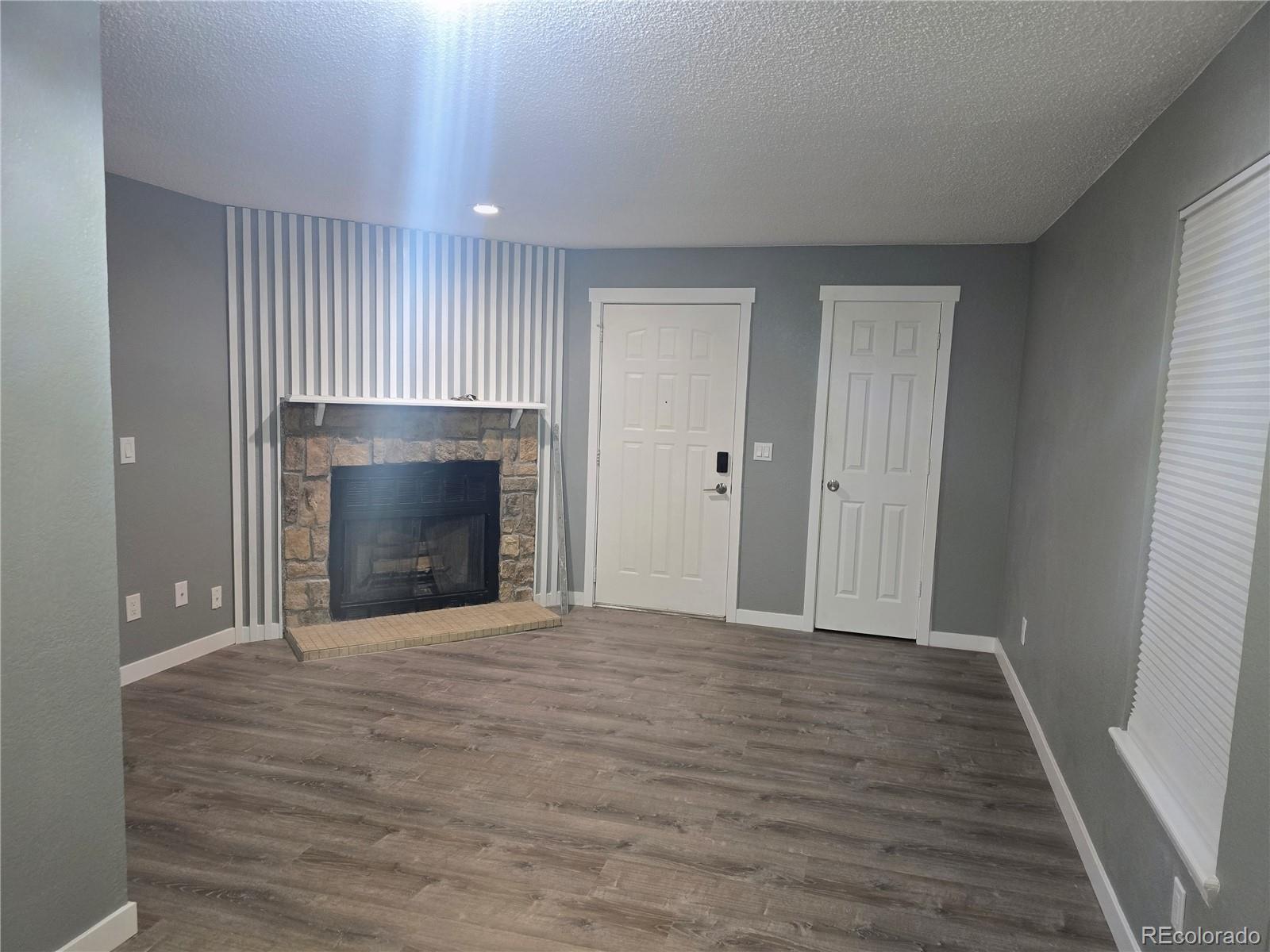 Updated 1-Bedroom, 1-Bathroom Condominium This residence offers an open floor plan with a newly remodeled kitchen. The spacious bedroom includes a walk-in closet, while the living room showcases a stone wood-burning fireplace. Recent updates include fresh interior paint and laminate flooring throughout. Conveniently located with easy access to I-225, light rail, and Aurora Town Square for shopping and dining.