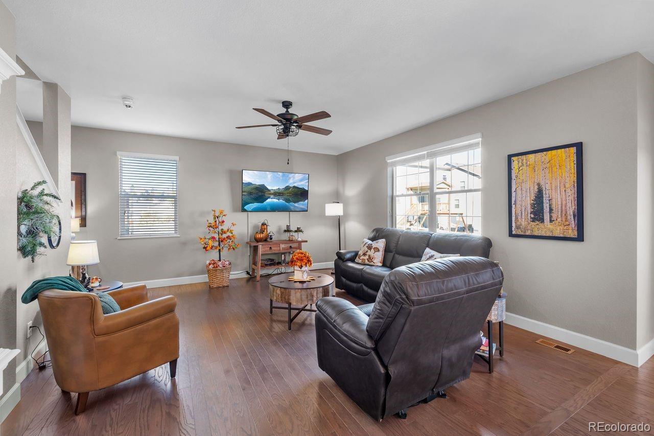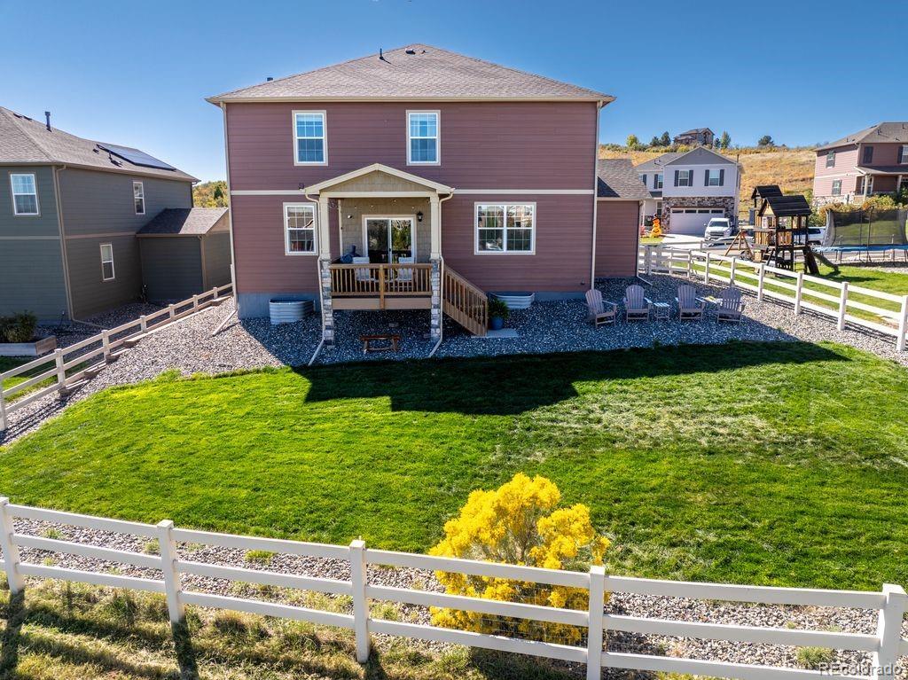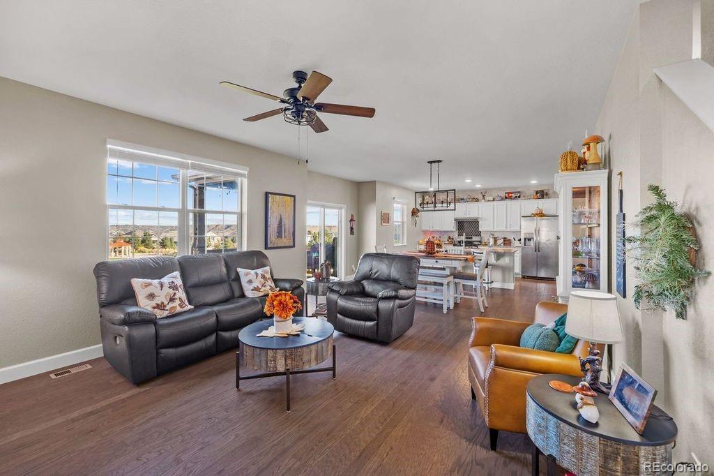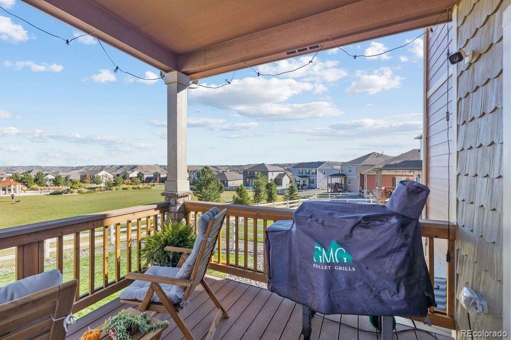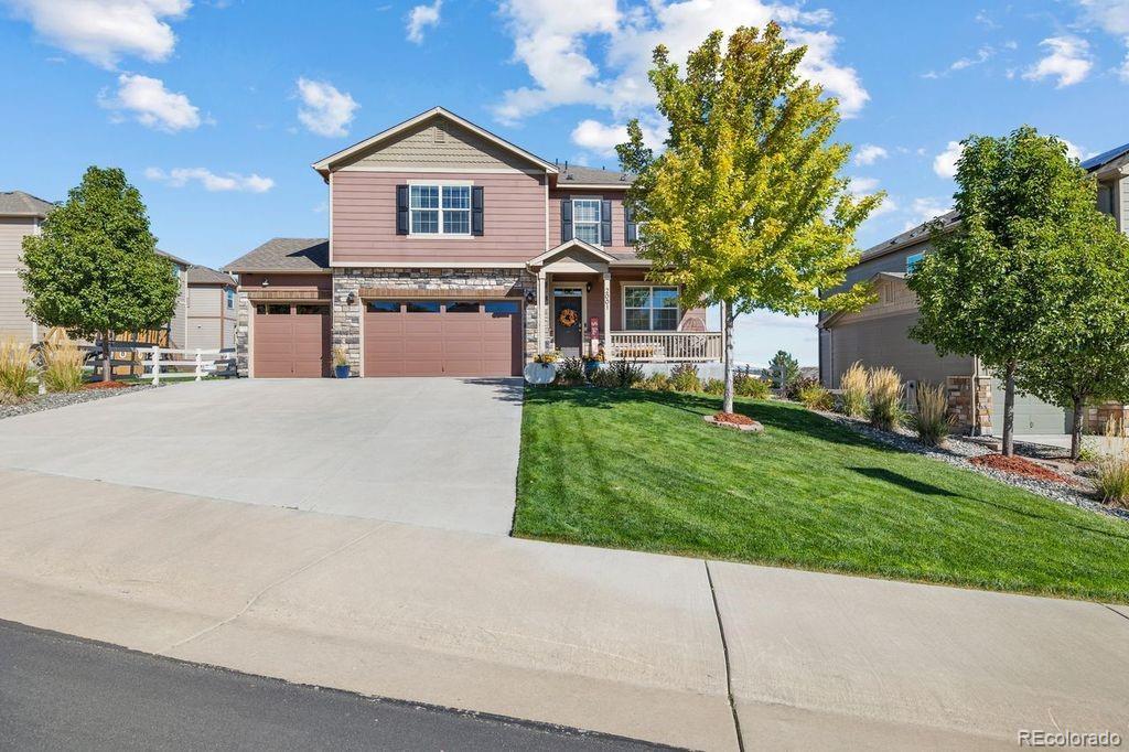 Extra . . . this home is extra in so many ways. Three car garage, opens to generous open space and a neighborhood playground, covered deck, customized pantry, all appliances included, I25 exit coming soon should shorten drive time to DTC/Denver, Costco and giant King Soopers coming soon as well, low property taxes and low HOA monthly dues, private office front of home could easily become the 5th bedroom, updated main floor half bath could easily be expanded into the walk in closet if you wanted more baths, excellent potential for an affordable partial basement finish if you wanted even more finished square footage. Enjoy the professional walk through video at https://www.youtube.com/watch?v=85PUAthHDXI&feature=youtu.be Book your showing today!
