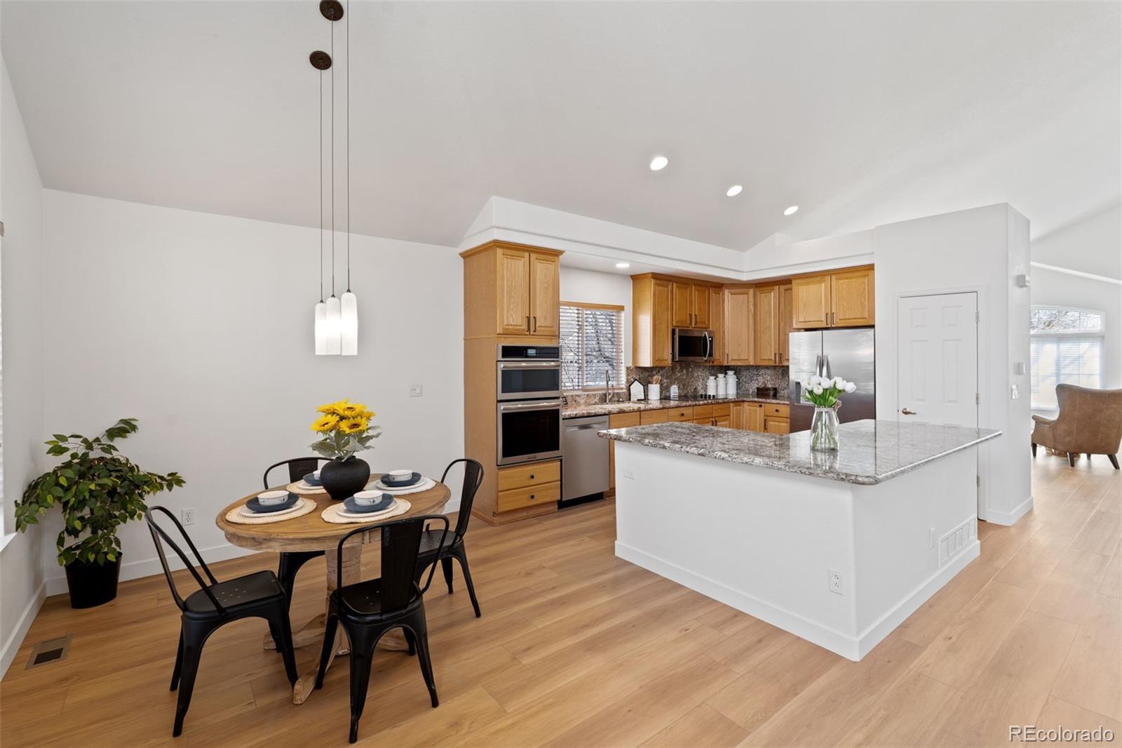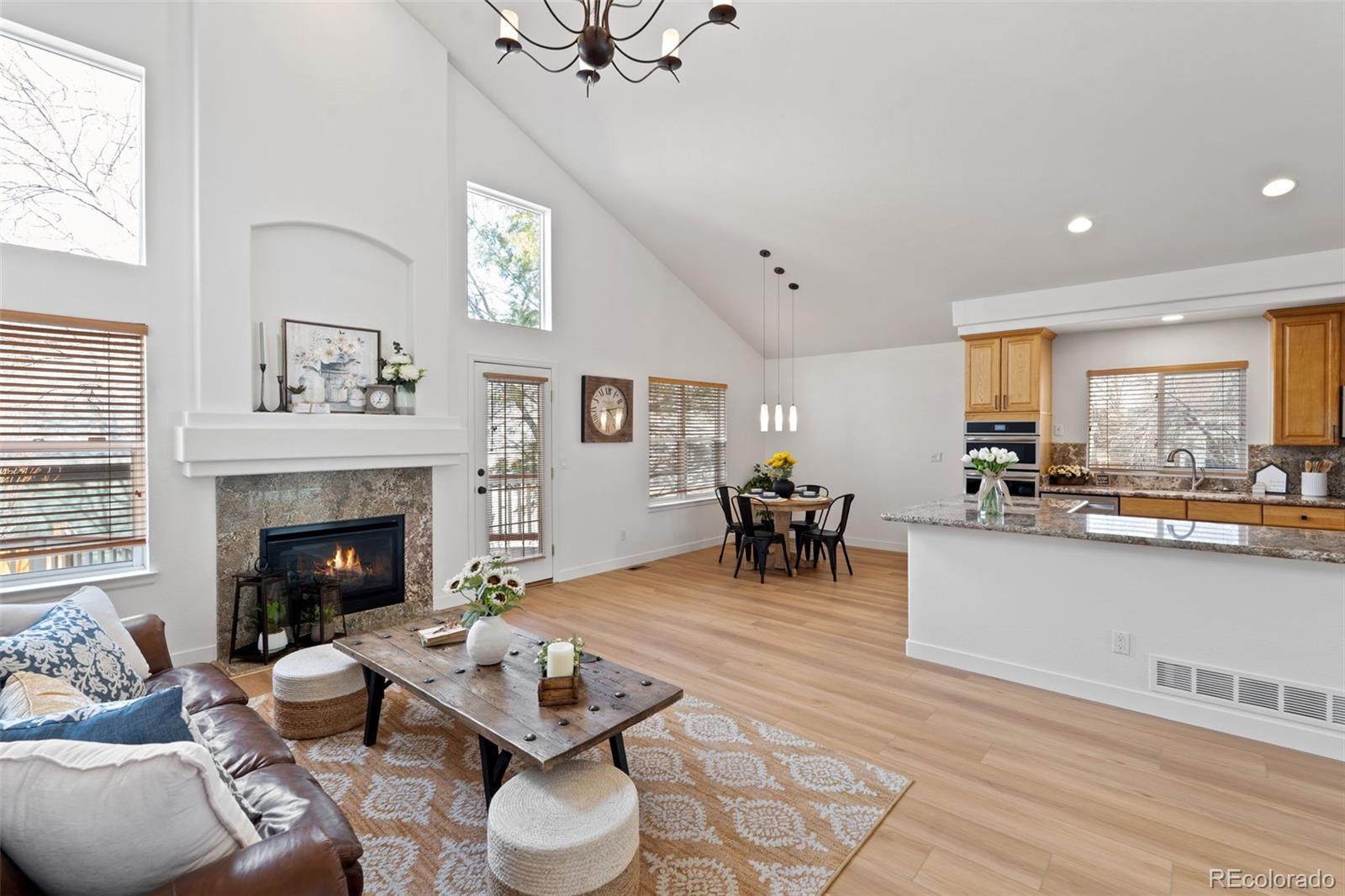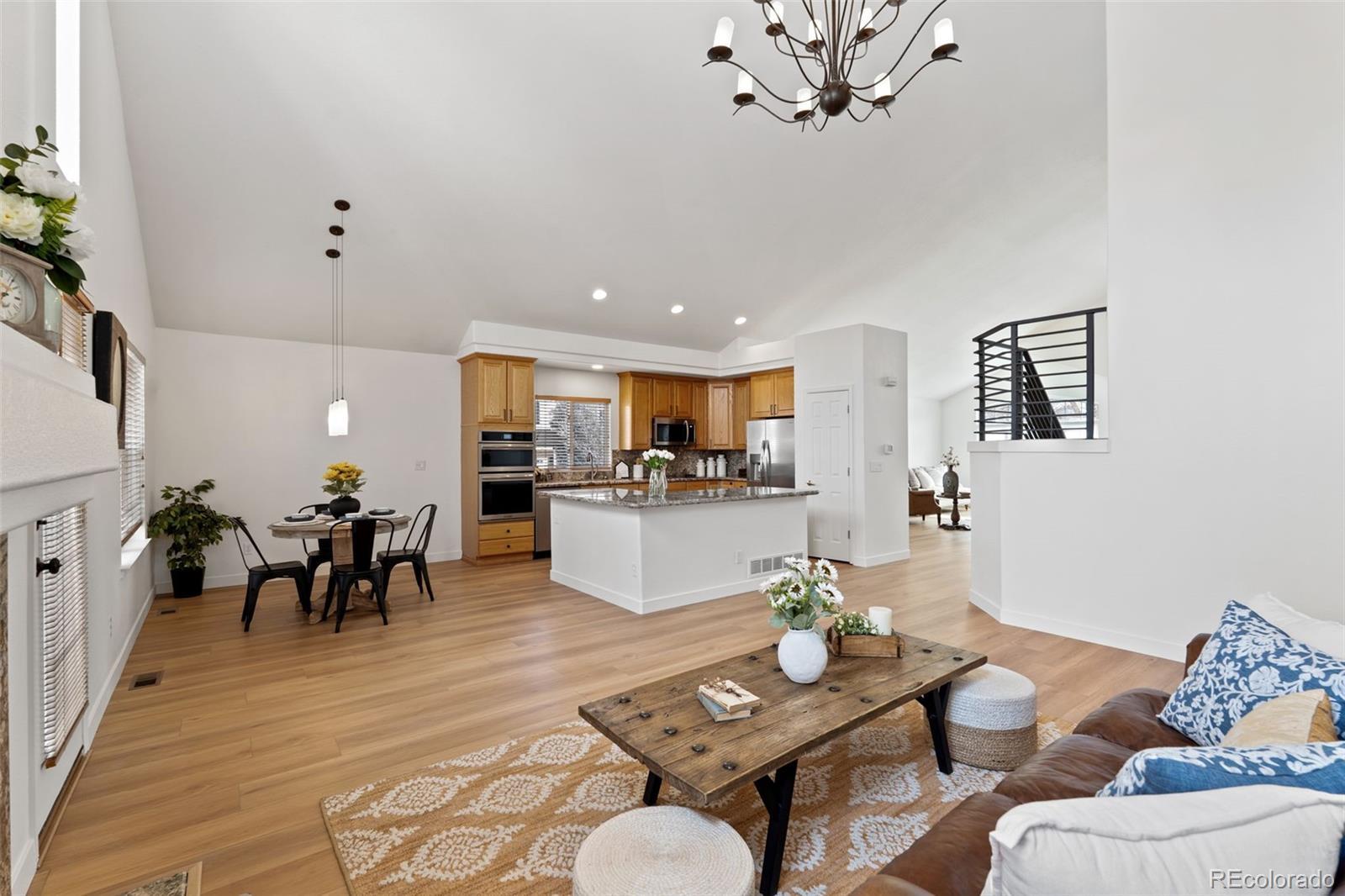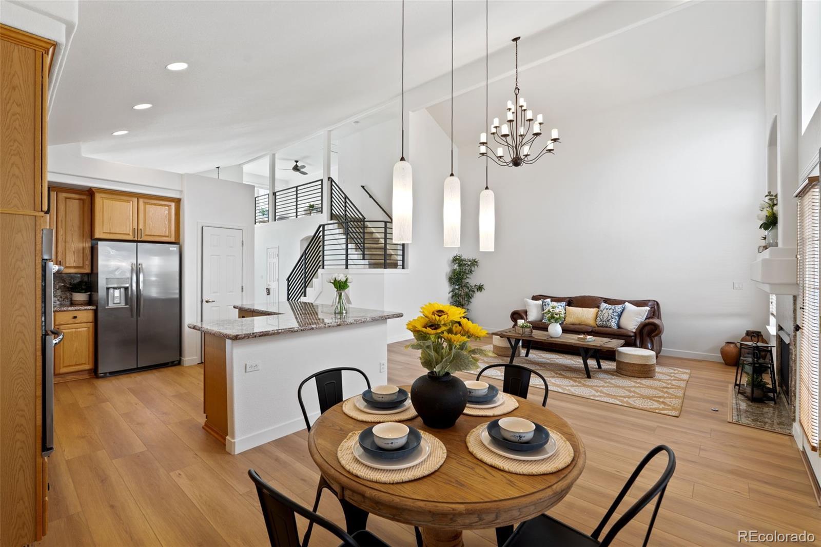 Experience refined living in this beautifully updated Lone Tree residence, where thoughtful upgrades and elegant design come together in perfect harmony. Step inside to soaring vaulted ceilings, gorgeous wood laminate flooring, brand-new carpet, and fresh designer paint that create a bright, sophisticated ambiance throughout the main living areas. The main-floor primary suite offers true luxury with its spacious layout and a stunning, fully remodeled en-suite bathroom featuring high-end finishes and spa-inspired details. The updated kitchen blends style and functionality, including all new appliances, stylish cabinetry and granite counters, ideal for both everyday living and elevated entertaining. Upstairs, you’ll find two additional generously sized bedrooms, a full bathroom, and a versatile loft — perfect for a home office, play area, or quiet reading retreat. Outdoor living shines with a brand new stamped concrete patio and privacy fence, creating a serene, private retreat perfect for gatherings or quiet evenings under the Colorado sky. The finished basement extends the home’s livability with a stylish den, additional bedroom, and full bathroom — an exceptional space for guests, recreation, or a private sanctuary. Perfectly positioned for convenience, this home is within walking distance to the Lone Tree Golf Course and offers effortless access to upscale dining, premier entertainment, Park Meadows Mall, the light rail, and major commuting highways, placing the best of Lone Tree and the Denver metro area right at your doorstep. Impeccably maintained and thoughtfully upgraded, this home delivers a luxurious lifestyle in one of Lone Tree’s most desirable neighborhoods, Cypress Greens. Don't let this one get away!