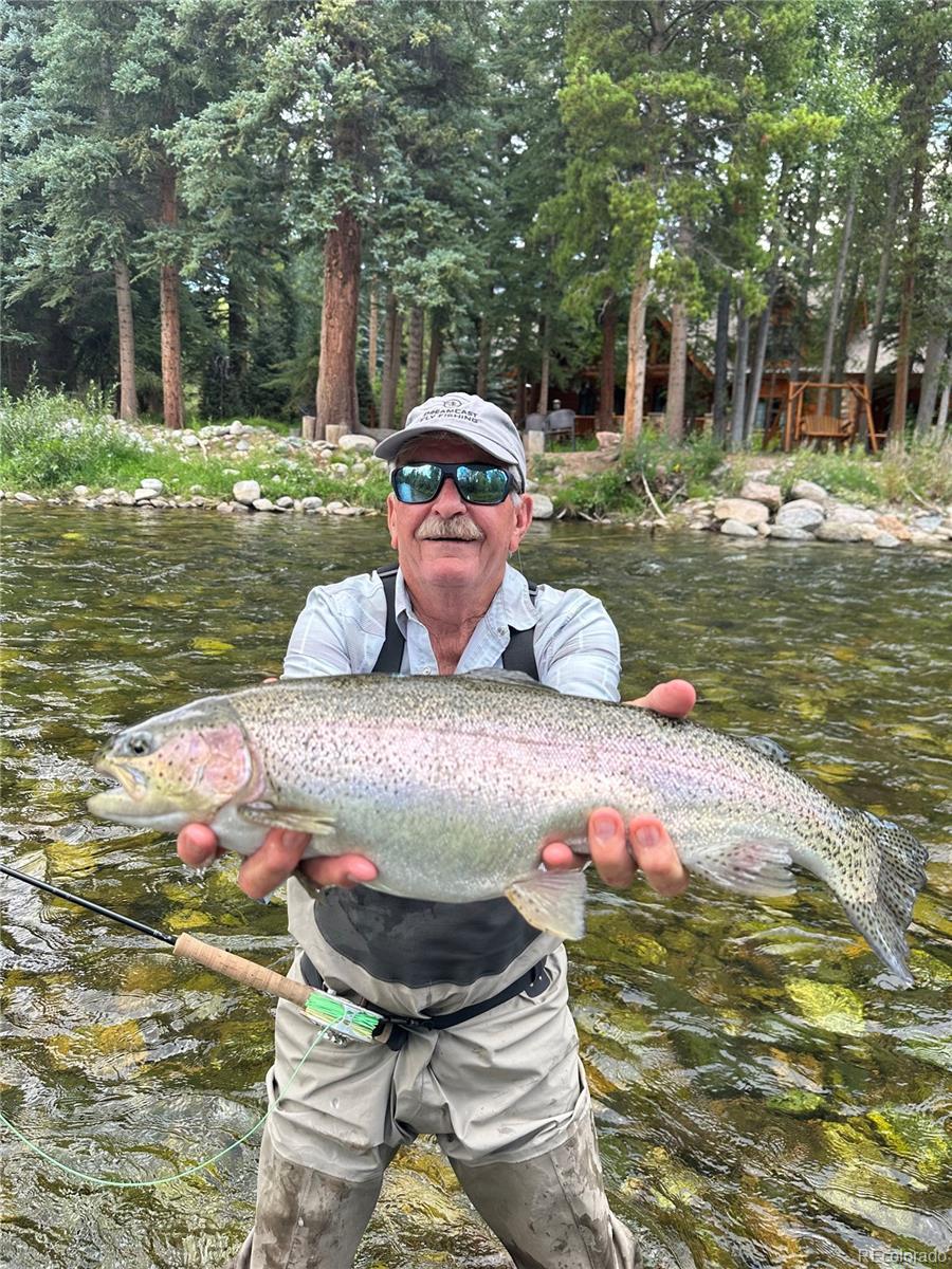 This exceptional riverfront home rests on the serene banks of the Lower Blue River in the coveted Sage Creek Canyon. The private river access allows you to cast a dry fly to selectively feeding Rainbow and native Brown trout before breakfast or after dinner. This meticulously maintained waterfront residence is the perfect blend of mountain elegance and refined craftsmanship. A multiple winner in the 2009 Parade of Homes, the 4,335 sq ft log home was built by longtime local home builder Brian Ray and was thoughtfully designed with a central log great room balanced by two wood-framed “wings” that harmoniously blend its open floor plan ethos with ample privacy for guests. Vaulted ceilings and a grand floor-to-ceiling stone wood-burning fireplace define the breathtaking great room and lofted office/game area. Custom details include unique, site-specific carved mantles, a hand-carved front door, and a dramatic, hand-tooled bald eagle head high atop the entryway ridge beam that keeps watch over the property. Finishes include solid hardwood maple floors, Red Dragon granite countertops, custom alder cabinetry, Ipe (aka "Brazilian Walnut”) decking, and fine woodwork in every room—offering timeless rustic charm with elevated design. The flexible layout includes four bedrooms (septic sized for a three-bedroom home) and 4.5 bathrooms, including a main-level primary suite, a spacious recreation room, and a bonus lock-off bedroom perfect for guests or multi-generational living. Beyond the walls, the professionally landscaped grounds feature mature perennial beds designed for three seasons of color, a private greenhouse, a fire pit, hot tub, and ample outdoor space to enjoy the natural surroundings. The home includes a heated three-car garage and a dedicated dog wash station. Riverfront is rare—don’t miss your opportunity.