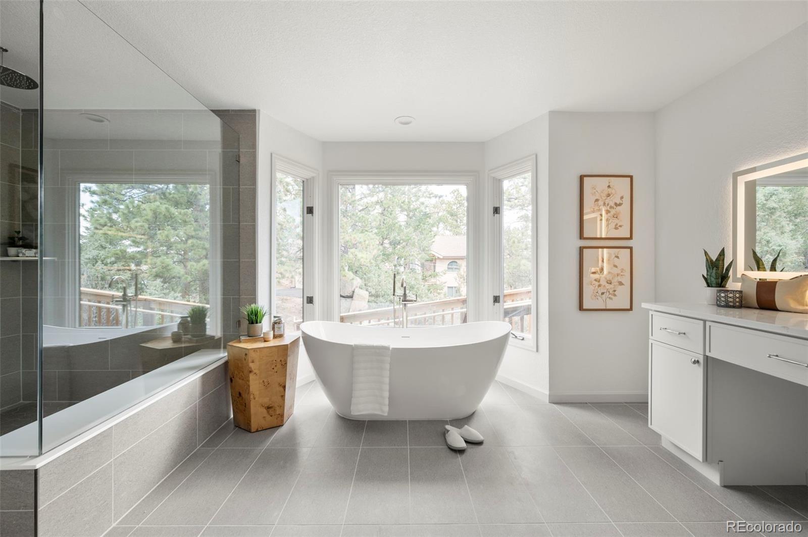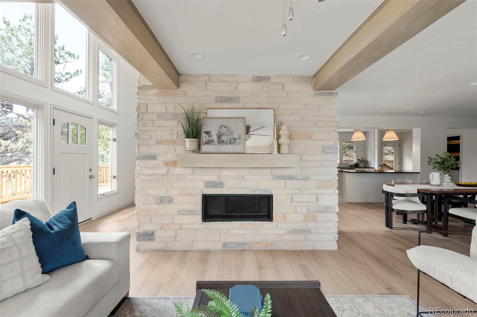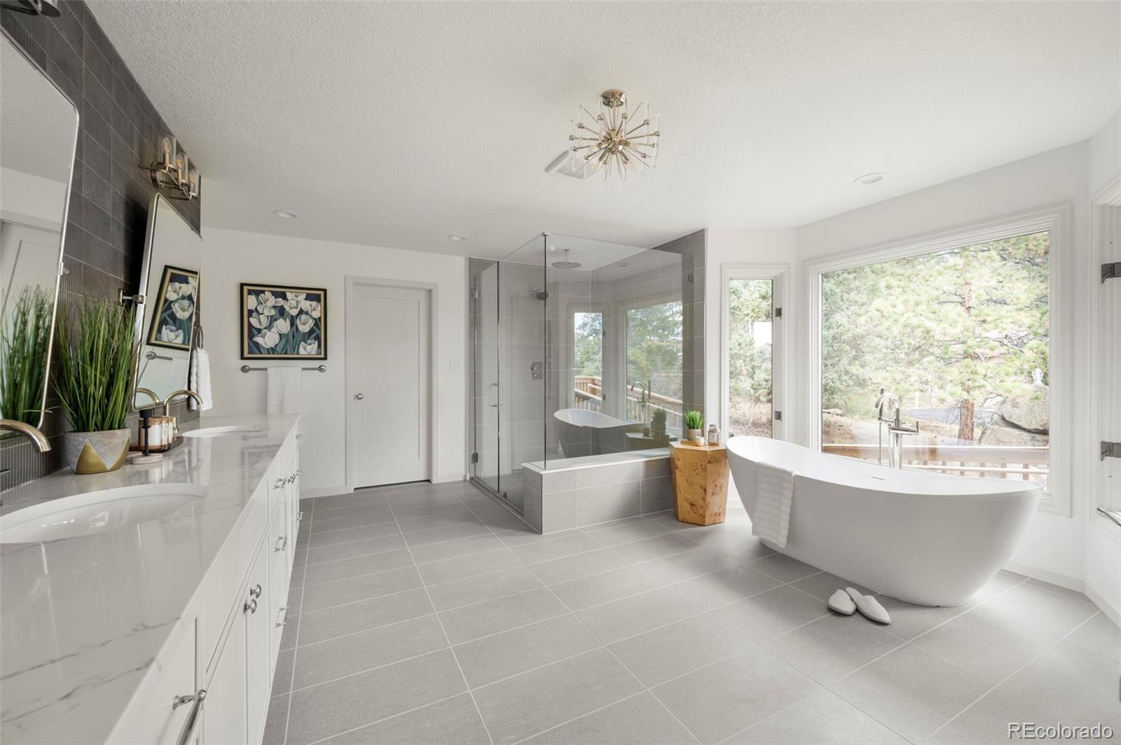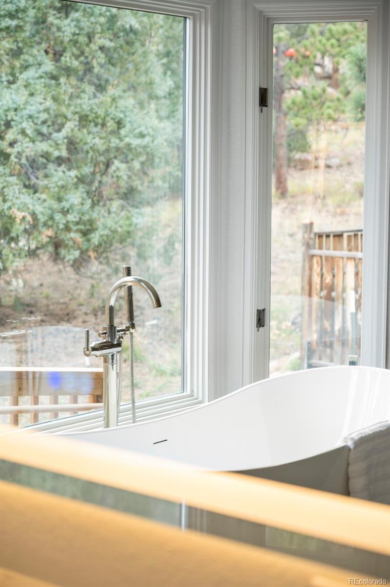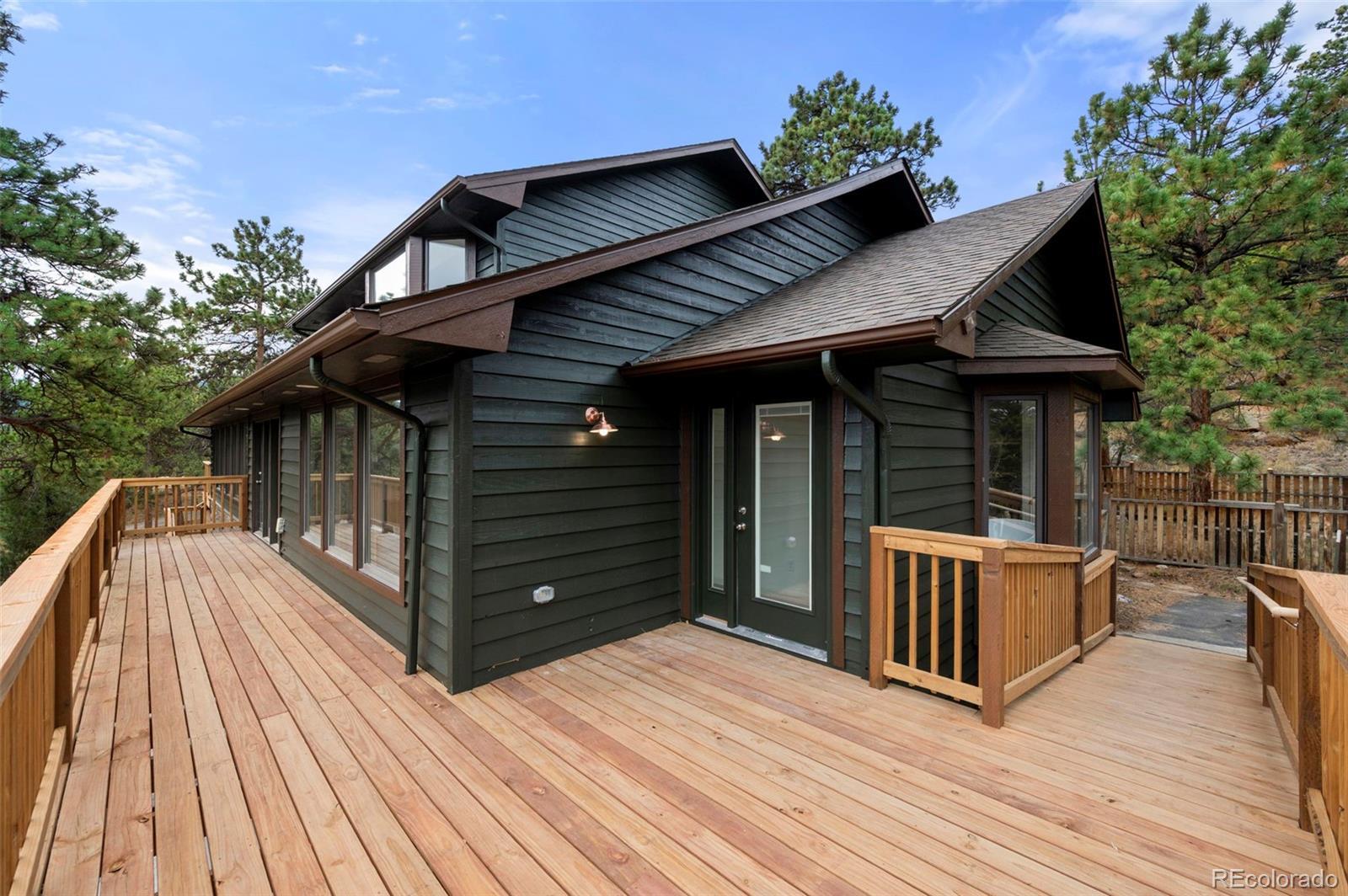 Tucked among whispering pines and breathtaking mountain vistas, this reimagined Estes Park retreat embodies luxury, serenity, and adventure. Set on one acre of fully usable land, this 4,037 sq ft home pairs timeless craftsmanship with a completely modern renovation — all new electrical, plumbing, and roof — ensuring comfort and confidence for years to come. Step inside to discover sun-filled living spaces wrapped entirely in glass, where every window frames postcard-perfect scenes of snow-capped peaks and whispering pines. A cozy natural-stone fireplace anchors the great room, creating the perfect ambiance for snowy winter evenings or spring mornings drenched in sunlight. The chef’s kitchen features a custom hood vent, luxury bosch appliances, and a hidden butler’s pantry with sliding doors, offering both style and function. Your nearly 1,000 sq ft master suite is a sanctuary of its own — complete with a private entrance, direct access to the wrap-around deck, and a spa-inspired primary bath boasting a makeup vanity, Euro-style shower with 12-inch rain head, and a soaking tub with expansive bay windows that invite the outdoors in. Imagine relaxing here, watching soft snow fall on the evergreens. Downstairs, find versatile living areas ideal for guests or hobbies, plus an oversized 4-car garage (over 1220sqft) and workshop with room for every mountain toy—ATVs, snowmobiles, or even a boat. The fully fenced yard and dedicated dog run complete the outdoor experience. Here, you’ll experience the true Estes Park lifestyle—where vibrant downtown shopping and dining meet miles of national park trails, local art, cozy cafés, and the tranquil rhythm of mountain life. Whether you’re entertaining, exploring, or unwinding, this home offers the rare opportunity to live immersed in Colorado’s natural beauty without compromise.