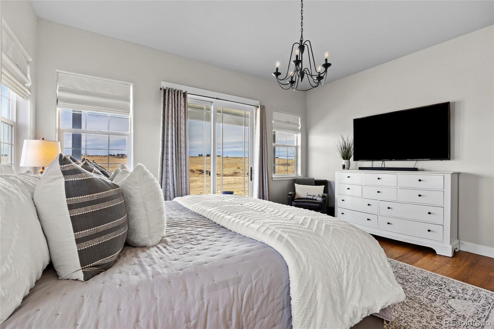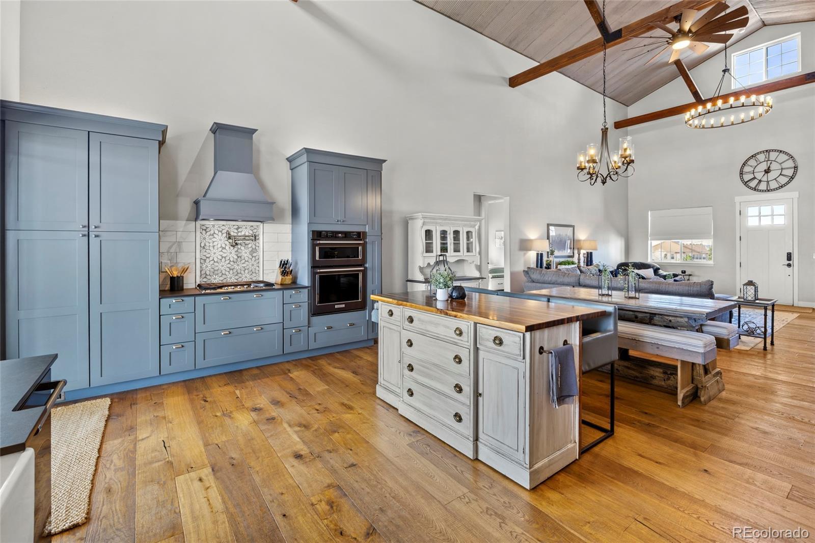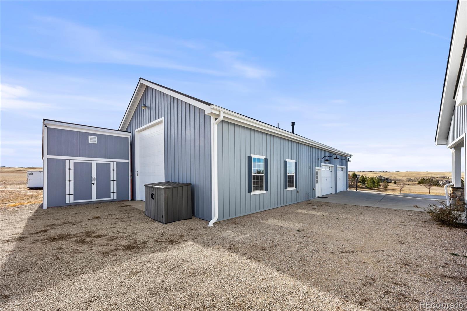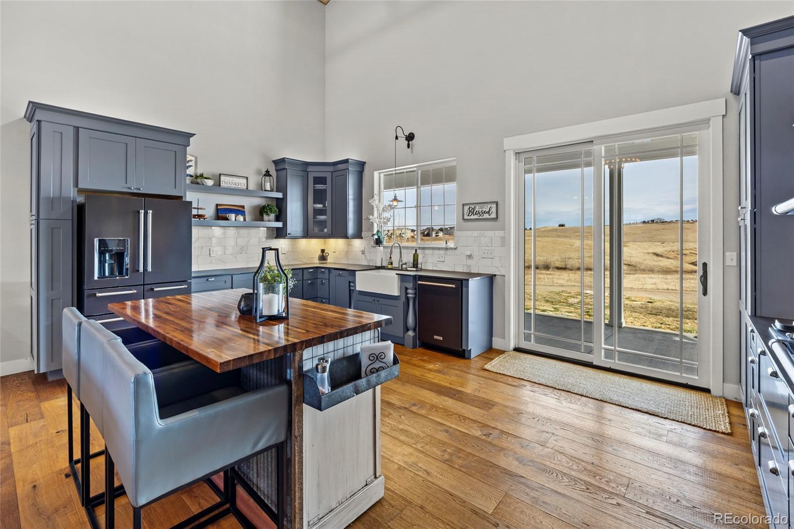 Meticulously maintained, this stunning ranch-style home sits on 2.86 acres backing to open space in the highly sought-after Spring Valley Ranch golf course community. Designed for effortless one-level living with no stairs, the property offers exceptional privacy, thoughtful functionality, and breathtaking mountain views. Set deep within the lot for enhanced privacy, the home welcomes you with an expansive front porch and charming porch swing—perfect for enjoying panoramic views. Inside, vaulted ceilings, wide-plank hardwood floors, exposed wood beams, and a striking river rock fireplace create a warm and inviting atmosphere. The chef’s kitchen is thoughtfully designed with stainless steel appliances, a gas cooktop with pot filler, double ovens, quartz countertops, custom cabinetry with pullouts, an automated mixer lift, and a movable island with a wood top—ideal for both everyday living and entertaining. The primary suite opens to a covered back porch and features a spa-like ensuite bath with a copper clawfoot tub, dual-head shower, dual-sided closets, and direct access to the laundry room. Two additional bedrooms share a Jack-and-Jill bath, while a fourth non-conforming bedroom (no closet) offers flexibility as a guest room or private office, complemented by a beautifully updated ¾ bath down the hall. A truly standout feature is the expansive 2,296 sq ft fully finished shop located just steps from the home. Complete with a living/office area, ¾ bath, heat, full insulation, epoxy floors, custom cabinetry, utility sink, and an oversized RV door, this versatile space is ideal for hobbies, car enthusiasts, entertaining, or a home-based business. A large additional storage shed provides even more room for tools and equipment. Additional highlights include a new Class 4 roof and fresh exterior paint on both home and shop, making this exceptional property truly move-in ready for buyers seeking acreage, privacy, and luxury ranch country living.