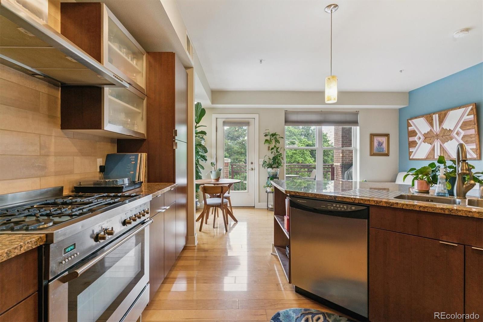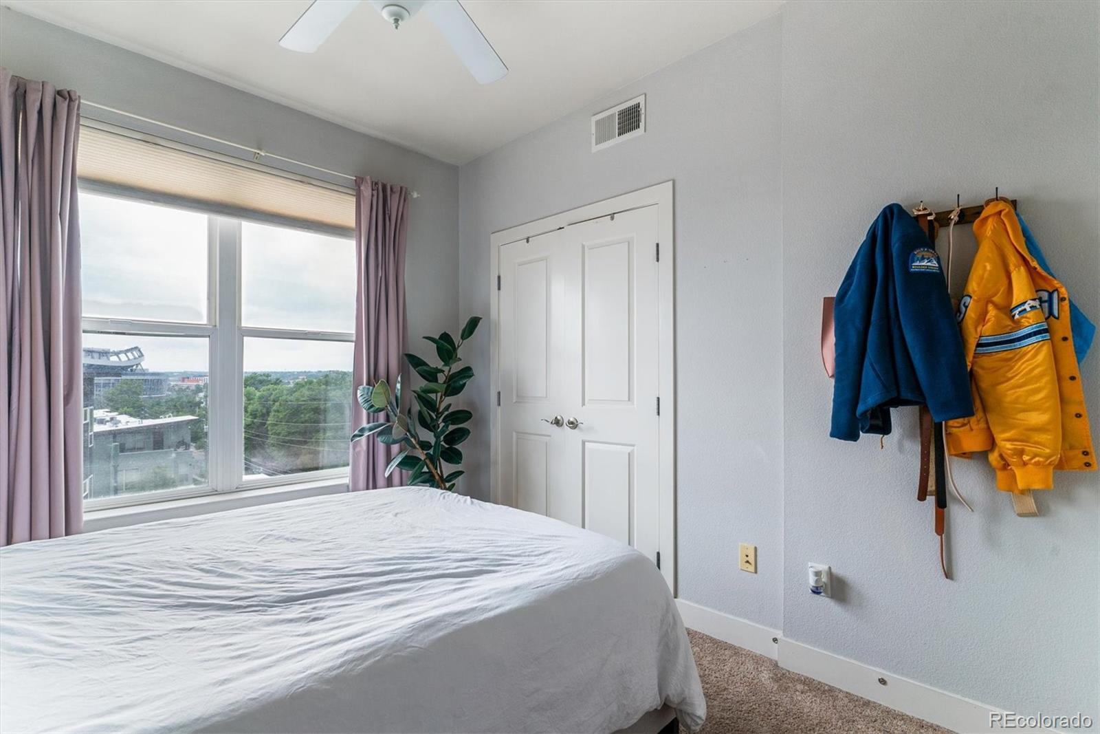 Stunning 4th-floor end-unit condo in coveted RiverClay with panoramic mountain views half the year and lush treetop views over Jefferson Park in summer/fall. Bright, open-concept layout with tons of natural light and a huge, partially covered balcony—perfect for relaxing, entertaining, or enjoying epic sunsets. Washer/dryer and all kitchen appliances included, newer water heater. RiverClay is Colorado’s first LEED Silver Certified condo building featuring rooftop solar, secure entry, private gym, bike storage, deeded underground parking, and more. Prime Jefferson Park/Highlands location near Mile High Stadium, Meow Wolf, and local hotspots. Live above it all in this move-in-ready, sustainable urban retreat!