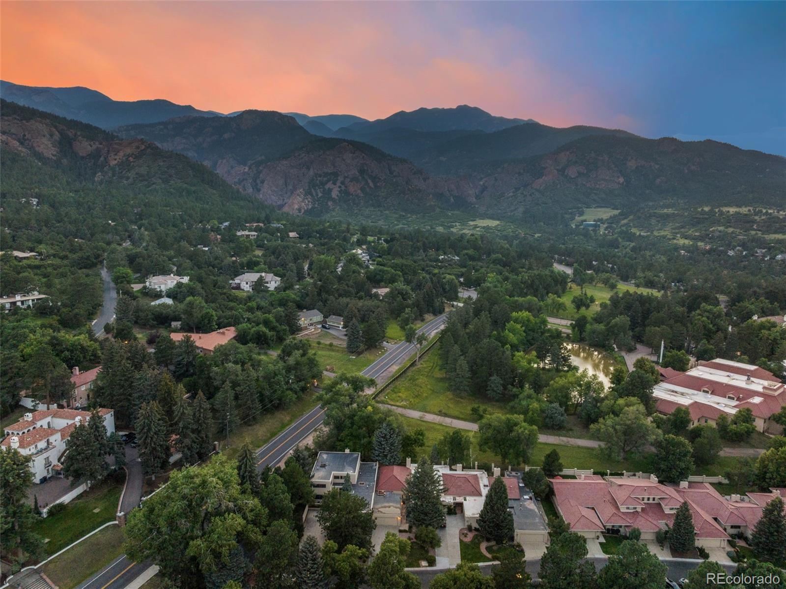 Elegance and quality abound in this beautifully updated 3BD/2BA townhome with a 2-car garage in a quiet, gated community behind The Broadmoor Hotel. Enjoy main-level living with oak hardwood floors, a 675 sf carpeted basement with built-in storage, and modern systems including a new 75-gal hot water heater, new electrical panel, whole-house humidifier, and smart thermostat and lighting. The spacious living room features a brick gas fireplace and French doors opening to a private patio backing to open space. Adjacent formal dining room also opens to the patio, creating a great indoor-outdoor flow. The gourmet kitchen boasts new flooring, KitchenAid stainless appliances, gas cooktop, granite counters, generous cabinetry, custom tile backsplash, island seating, and a cozy skylit breakfast nook. The primary suite is a private retreat with a California walk-in closet and luxurious 4-pc bath featuring a slipper tub, spa shower, travertine tile, and dual vanity with makeup area. Bedroom 2 accesses the full hall bath, while Bedroom 3—with French doors—is ideal as an office, den, or sitting area. The full bath includes a granite-top vanity, slipper tub, and spa shower. The finished 30x20 basement offers heat, lighting, and ample storage. The outdoor space is perfect for entertaining, with a built-in grill, refrigerator, and fire pit. Extras: central A/C, radon system, new hardware, stucco exterior, tile roof. Hear the Pauline Chapel chimes, walk to the Broadmoor Hotel, and enjoy views of the Will Rogers Shrine. Welcome home!