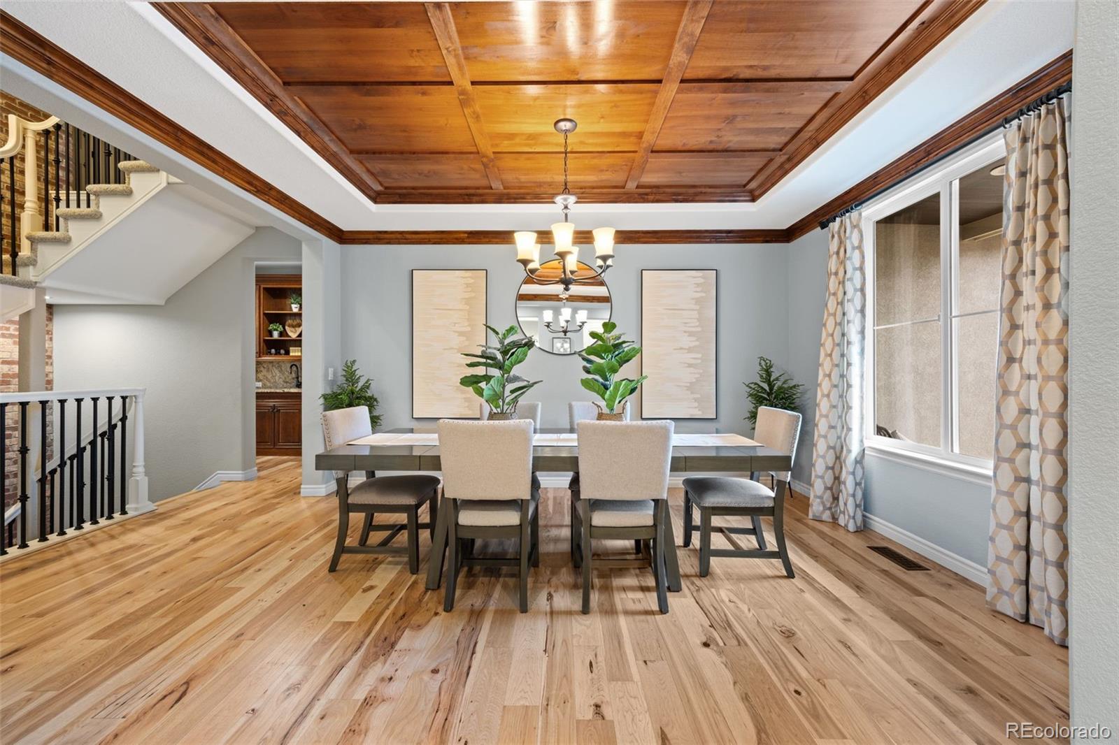 Welcome to this beautifully appointed 5-bedroom, 6-bathroom home nestled in a quiet Highlands Ranch cul-de-sac. Designed with both elegance & functionality in mind, the main level has newly refinished wood floors, a bedroom with en-suite bath, dining room & a chef’s kitchen featuring a gas range, warming drawer, double ovens, two dishwashers, a spacious walk-in pantry, extra island storage, & a generous butler’s pantry with appliance closet. The formal dining room is enhanced by a wood-beamed ceiling & a striking two-story brick accent wall, leading upstairs to 4 additional bedrooms. The primary suite has dual walk-in closets, a spa-style shower with dual shower heads. Secondary bedrooms include one bedroom with its own en-suite bath & two additional bedrooms sharing a Jack-and-Jill bath & private access to the upper sitting deck with mountain views. The finished basement is perfect for entertaining, complete with a wet bar & a striking double-sided brick fireplace. A tucked-away pocket office adds both convenience and privacy. Throughout the home, plantation shutters, rich wood accents, & premium finishes bring warmth & character. Step outside to enjoy a wraparound patio with a built-in grill, outdoor kitchen, and TV for year-round gatherings. Additional features include dual water heaters, dual-zone heating & cooling, automatic window shades in the main living room and kitchen, a Halo water system, furnace with humidifier, main-level laundry with sink, a three-car garage, newly painted exterior, & custom Jellyfish lighting to create the perfect ambiance in every season. This home seamlessly blends luxury, comfort, & convenience in one perfect package. The Backcountry neighborhood hosts amazing events for residents all year long...the golf cart friendly neighborhood amenities include a clubhouse, Campus Lounge for full service dining, Lost Coffee shop, fitness center, parks and miles of trails for walking, hiking & biking. Live & love the Backcountry Lifestyle!