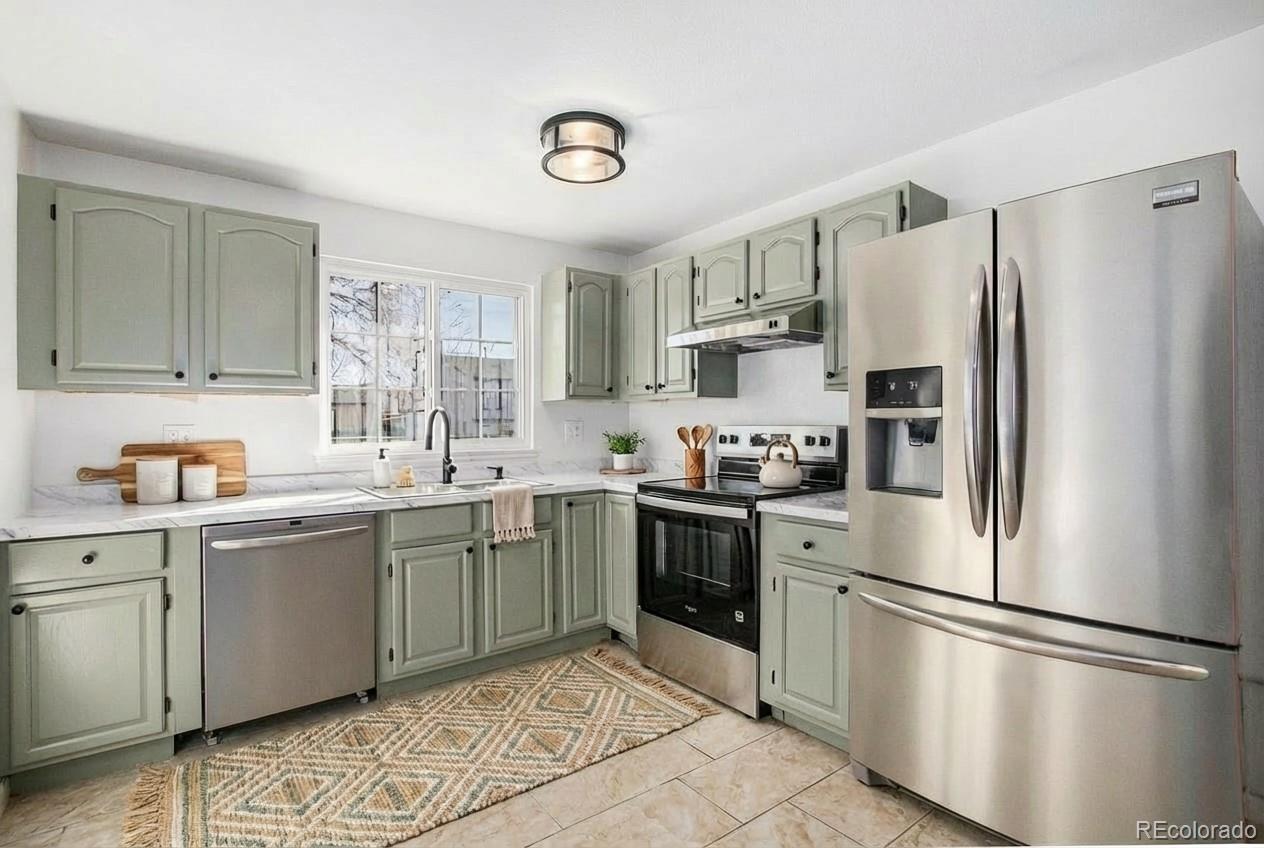 Welcome to this beautifully updated and highly desirable ranch-style home, ideally situated on an oversized 7,150 sq ft lot. Warm, charming, and thoughtfully modernized, this home offers both comfort and style from the moment you step inside. The heart of the home is the stunning kitchen, featuring trendy sage-green cabinetry, durable marble-look countertops, brand-new stainless steel appliances, and sleek black hardware and fixtures. The main level also offers a sun-filled living room, a spacious primary bedroom, a comfortable secondary bedroom, and a beautifully refreshed bathroom with contemporary finishes. The fully finished basement extends your living space with two additional bedrooms, another updated bathroom, and a versatile flex room perfect for movie nights, a playroom, home gym, or office—whatever suits your lifestyle best. Enjoy brand-new interior paint, plush carpet, luxury vinyl plank flooring, and updated fixtures throughout. Plus, the brand-new sewer line replacement offers valuable peace of mind for years to come. Outside, the expansive backyard provides ample room to entertain, garden, relax, or play. With a spacious two-car attached garage and a convenient setting that offers quick connections to daily essentials, parks, and commuter routes, this home truly fits seamlessly into modern life. A fantastic opportunity to own a beautifully updated, move-in-ready home with generous space and desirable features—all at an exceptional value. ***Seller is offering a $3k Seller Credit for front yard landscaping!***