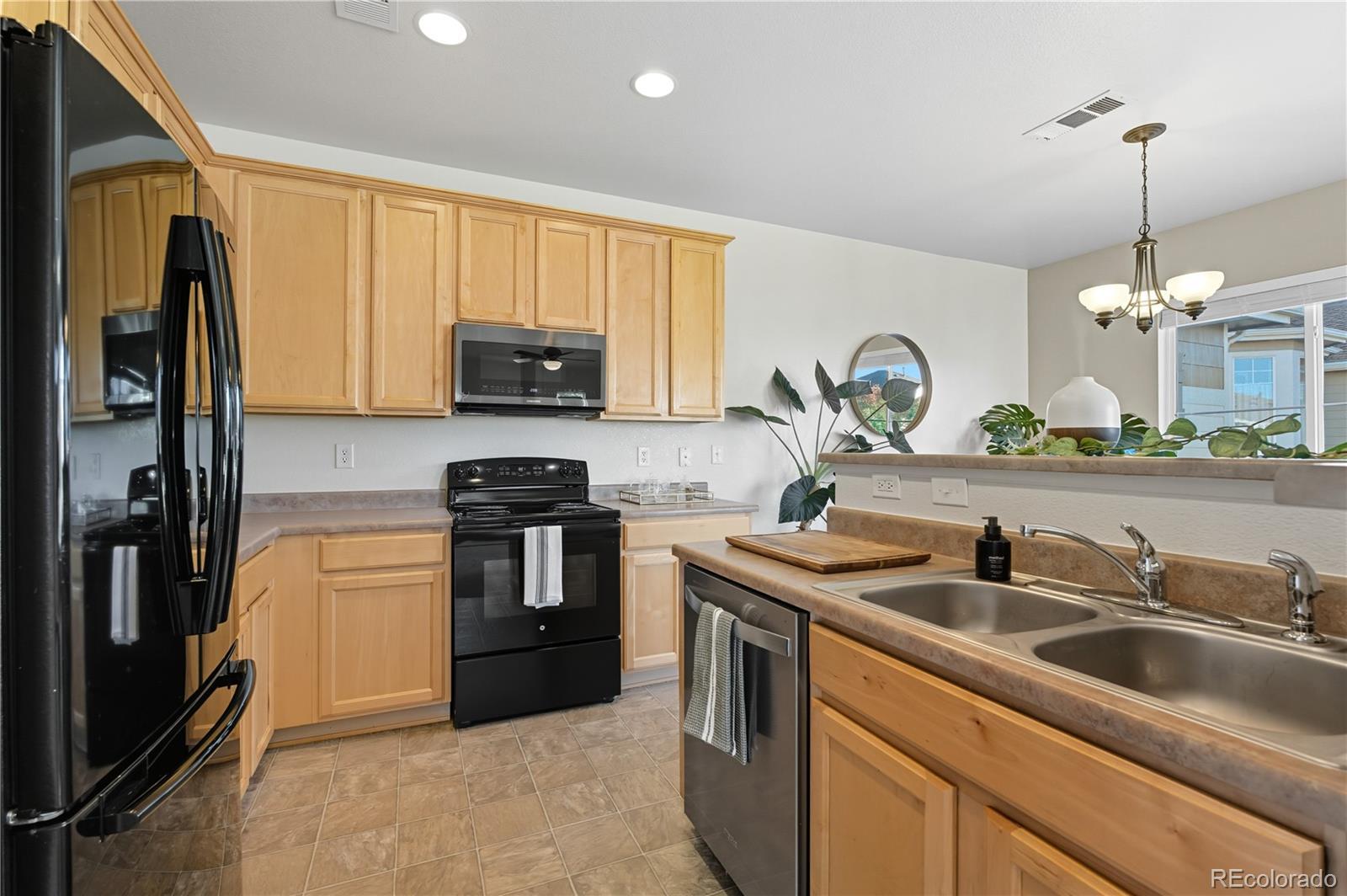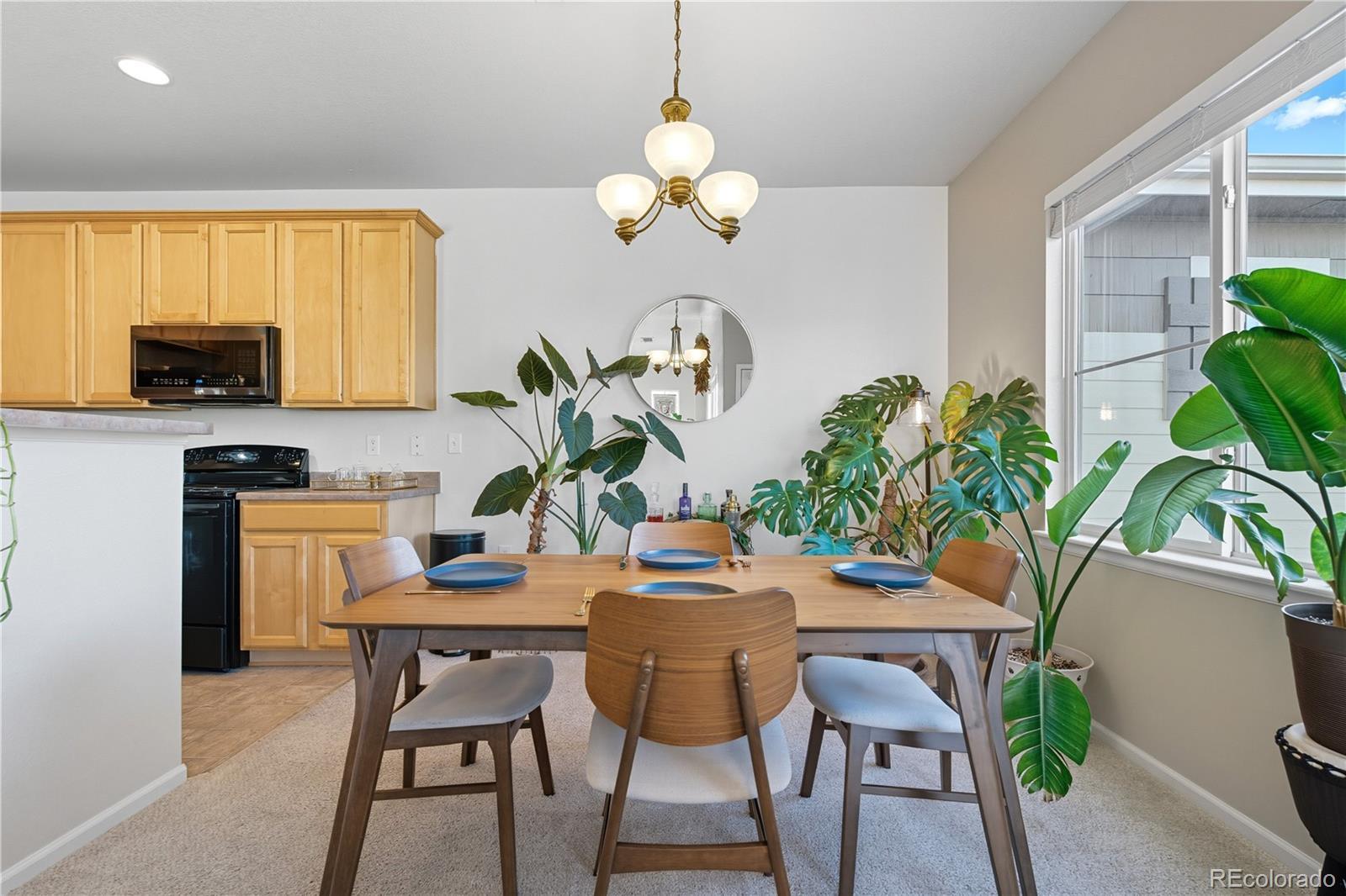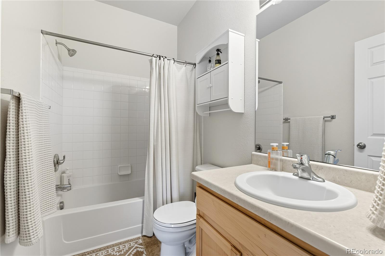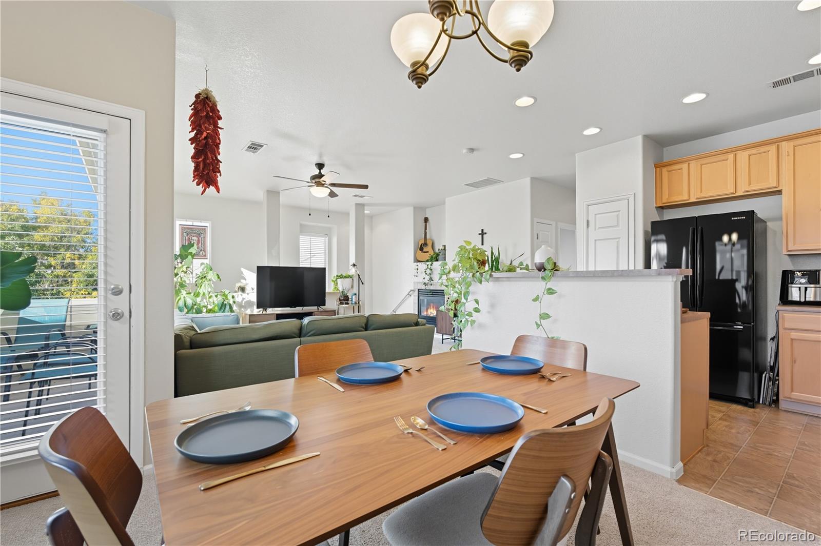 Welcome to Thorncreek Village living! This inviting condo is move-in ready and just waiting for your personal touch. You’ll love the convenience of a 1-car attached garage with private interior access for parking or extra storage. Head upstairs to a spacious, light-filled living room featuring a cozy gas fireplace and expansive south- and west-facing windows that flood the space with sunshine. The open-concept kitchen offers an island with bar seating, ample counter space, and a pantry for all your storage needs. Just off the kitchen, the dining area flows seamlessly to a private balcony, perfect for morning coffee, grilling, or relaxing in the fresh Colorado air. The main level includes a full bathroom, a secondary bedroom with a ceiling fan, and the primary suite. The primary retreat features dual exposures, a ceiling fan, a large walk-in closet, and a private en-suite with a soaking tub and extra-wide vanity. For added convenience, the washer and dryer are included in the unit. Enjoy access to the community pool and clubhouse just down the road, with neighborhood paths offering mountain and Thorncreek Golf Course views. Commuters will appreciate easy highway access, and the location puts you minutes from shopping, dining, and entertainment. Denver Premium Outlets, Top Golf, Costco, and Larkridge Retail Center are all just a short drive away. The perfect blend of comfort, convenience, and Colorado lifestyle, welcome home!