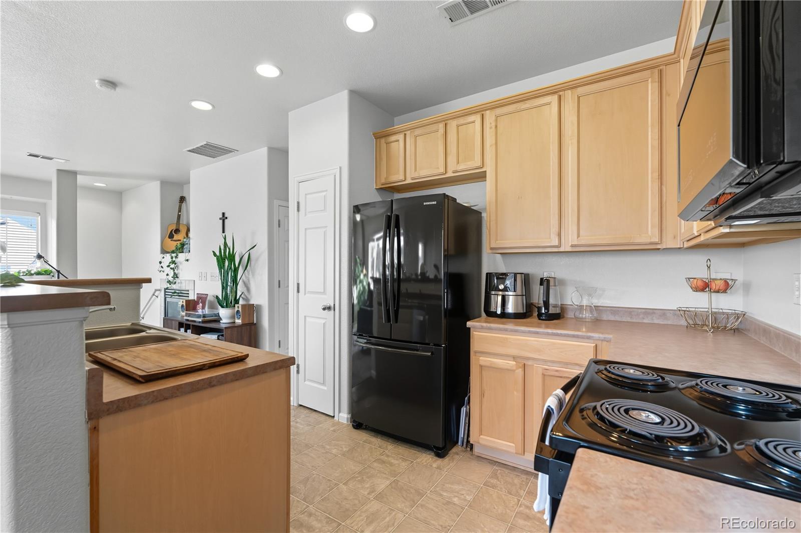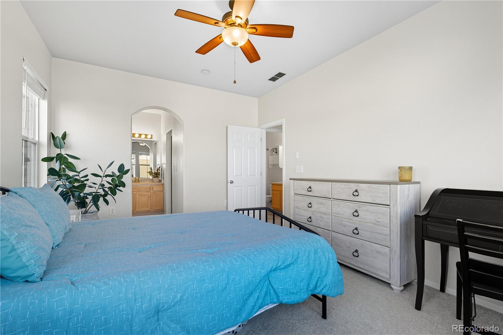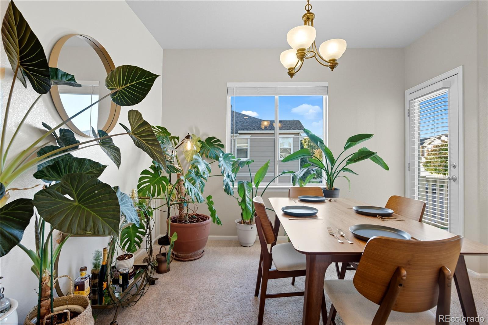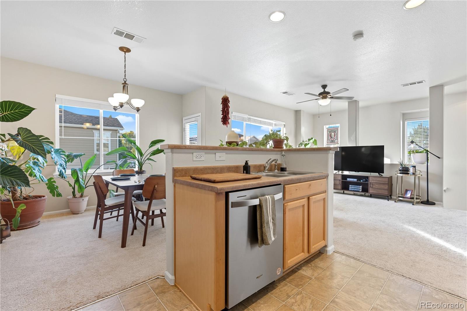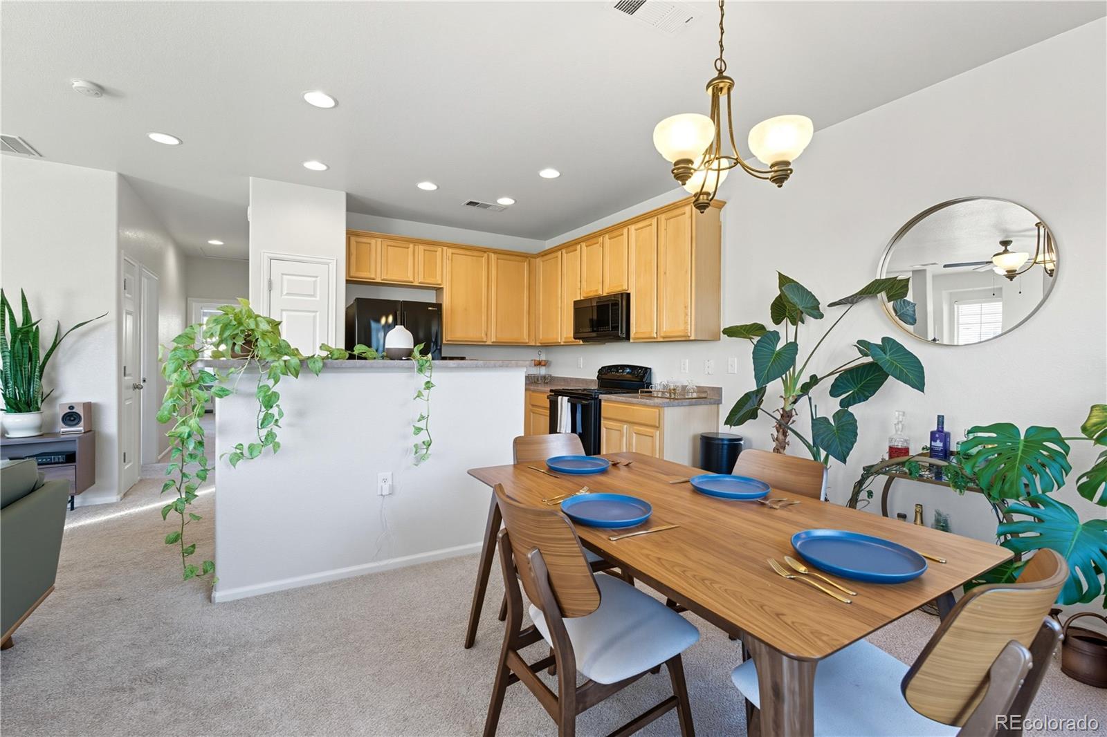 Welcome to Thorncreek Village living! This inviting condo is move-in ready and just waiting for your personal touch. You’ll love the convenience of a 1-car attached garage with private interior access for parking or extra storage. Head upstairs to a spacious, light-filled living room featuring a cozy gas fireplace and expansive south- and west-facing windows that flood the space with sunshine. The open-concept kitchen offers an island with bar seating, ample counter space, and a pantry for all your storage needs. Just off the kitchen, the dining area flows seamlessly to a private balcony, perfect for morning coffee, grilling, or relaxing in the fresh Colorado air. The main level includes a full bathroom, a secondary bedroom with a ceiling fan, and the primary suite. The primary retreat features dual exposures, a ceiling fan, a large walk-in closet, and a private en-suite with a soaking tub and extra-wide vanity. For added convenience, the washer and dryer are included in the unit. Enjoy access to the community pool and clubhouse just down the road, with neighborhood paths offering mountain and Thorncreek Golf Course views. Commuters will appreciate easy highway access, and the location puts you minutes from shopping, dining, and entertainment. Denver Premium Outlets, Top Golf, Costco, and Larkridge Retail Center are all just a short drive away. The perfect blend of comfort, convenience, and Colorado lifestyle, welcome home!