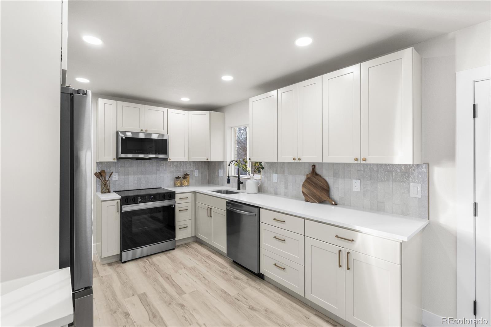 Fully renovated and brilliantly designed, this Arvada ranch delivers modern living on every level. The main floor offers three bright bedrooms including a primary suite with its own ensuite bath, all anchored by an open concept living space and a sleek new kitchen. Downstairs adds two additional bedrooms, a full bath, and a spacious second living area perfect for guests, media nights, or extra workspace. Major updates bring total peace of mind, including a new roof, new HVAC system, new windows, and fresh finishes throughout. Outside, you’ll find a private backyard retreat complete with a firepit for summer evenings, plus a one car attached garage for added convenience and storage. Set in a well established Arvada neighborhood close to parks, trails, and the charming shops of Olde Town Arvada, this home blends comfort, character, and a full top to bottom refresh. Thoughtfully updated and move in ready, this one makes living easy.