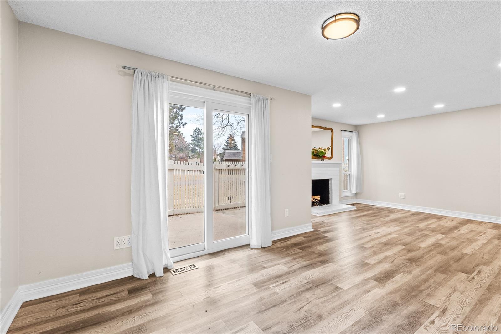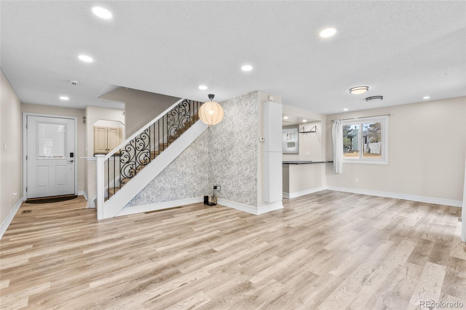 Beautiful community, centrally located with all appliances included. Nestled in a serene community surrounded by greenbelt and walking trails, this beautifully updated 4 bedroom end-unit townhome offers the best of low maintenance living. Thoughtfully designed with stylish upgrades, the home features a bright and inviting kitchen with custom cream cabinets, soft-close doors and drawers, honed slab granite countertops, and sleek stainless steel appliances. Durable and elegant luxury vinyl flooring spans the main level, where a spacious living room welcomes you with views of the greenbelt and a cozy wood-burning fireplace. The adjacent dining area leads to a private fenced patio with gated access to the walking path—perfect for enjoying the outdoors. A convenient powder room rounds out the main floor. An intricately detailed wrought iron staircase leads to the upper level, where you'll find three bedrooms, including the primary suite with a private ¾ bath, as well as a full bathroom. The finished basement adds versatility with a fourth bedroom, an additional ¾ bathroom, and a laundry area. The attached two-car garage is a standout feature, boasting a professionally coated floor, a heater, and a water/hose bib for added convenience. Located in the highly regarded Cherry Creek School District, The Shores community offers an array of amenities, including scenic trails, three picturesque ponds, indoor and outdoor pools, a clubhouse, and more! This is a fantastic opportunity to enjoy comfort, convenience, and a prime location.
