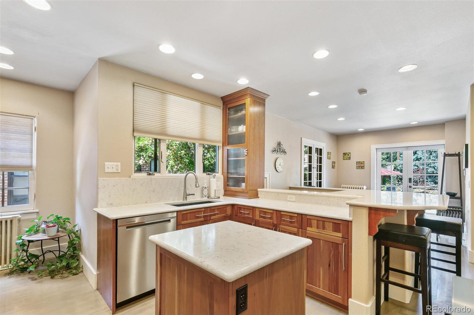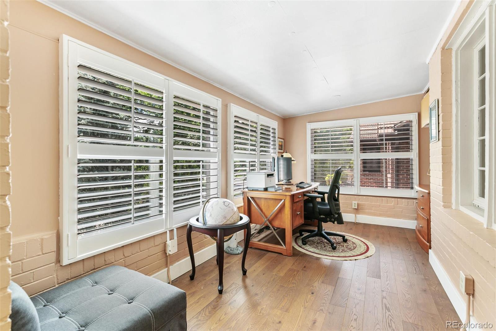 Welcome to 4621 E 17th Avenue Parkway: a stately 1923 brick Tudor that effortlessly blends timeless historic character with refined modern comfort. Positioned on an elevated, picturesque lot in highly sought-after South Park Hill, this home offers unparalleled privacy and sophistication along Denver's most iconic and prestigious tree-lined boulevard. For the discerning buyer, this residence represents a unique opportunity to acquire an irreplaceable piece of Denver real estate. While perfectly maintained, it offers a superb canvas for custom vision, providing significant potential for immediate equity growth and personalization. A grand foyer introduces light-filled living spaces, defined by gleaming hardwood floors and bespoke plantation shutters. The thoughtful layout includes a dedicated main-level office and spacious front rooms built for comfort and entertaining. At the heart of the home, the eat-in kitchen features quartz countertops, premium appliances, and custom cabinetry—a beautiful marriage of form and function. Upstairs, the luxurious and expansive primary suite is a true retreat, offering two generous closets and elegant stained-glass detailing that elevates the home’s sense of craftsmanship and enduring traditional style. The finished lower level extends the footprint with an additional bedroom, full bathroom, a comfortable laundry room, and ample storage. French doors open to a private, beautifully landscaped backyard sanctuary, ideal for quiet enjoyment or elegant alfresco dining. This residence preserves its Tudor charm while delivering modern comfort. With a prime South Park Hill location—moments from City Park, premier dining, and top-tier schools—this is the definitive opportunity for those who appreciate history, prestige, and the ultimate Denver lifestyle.