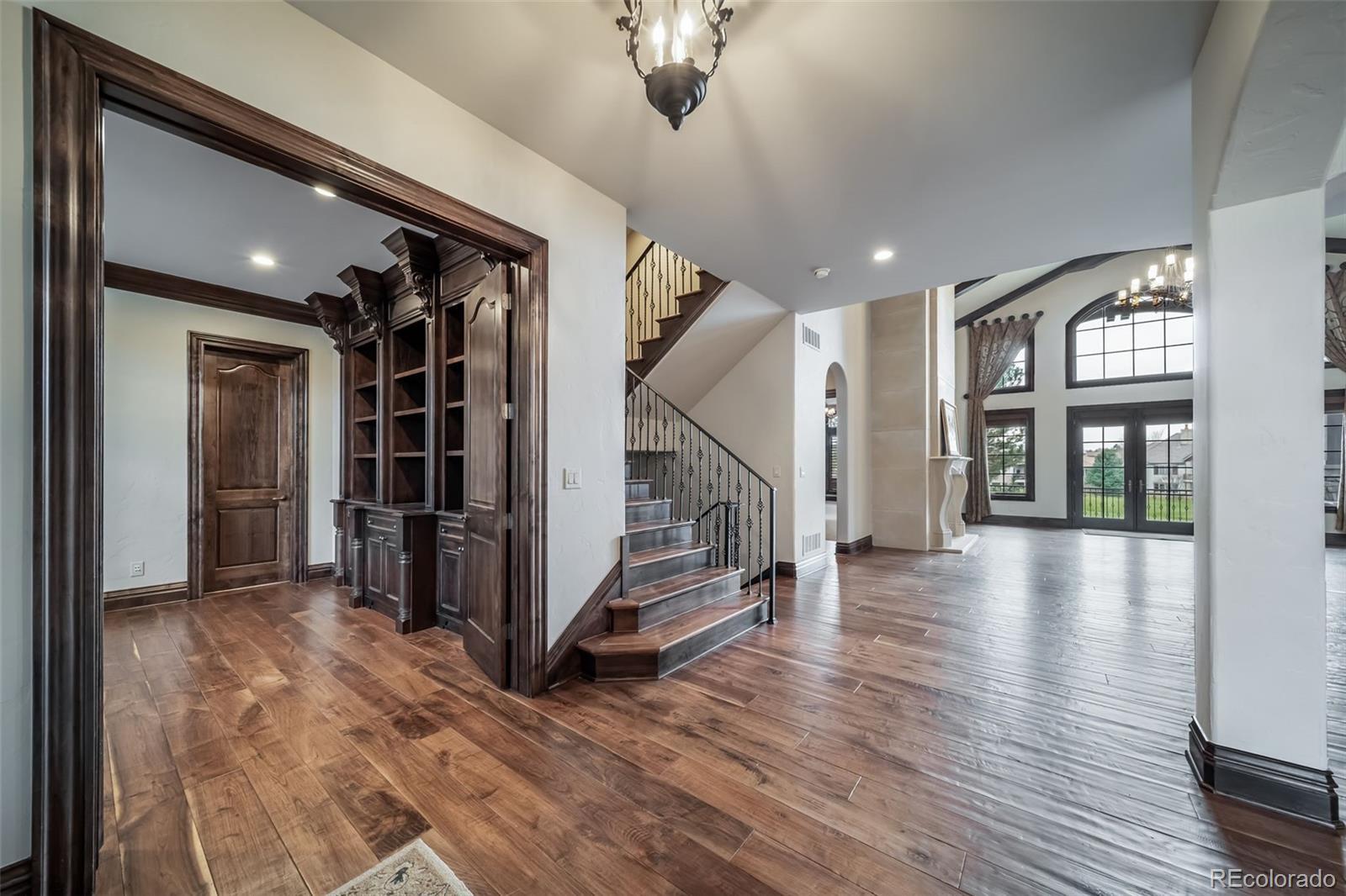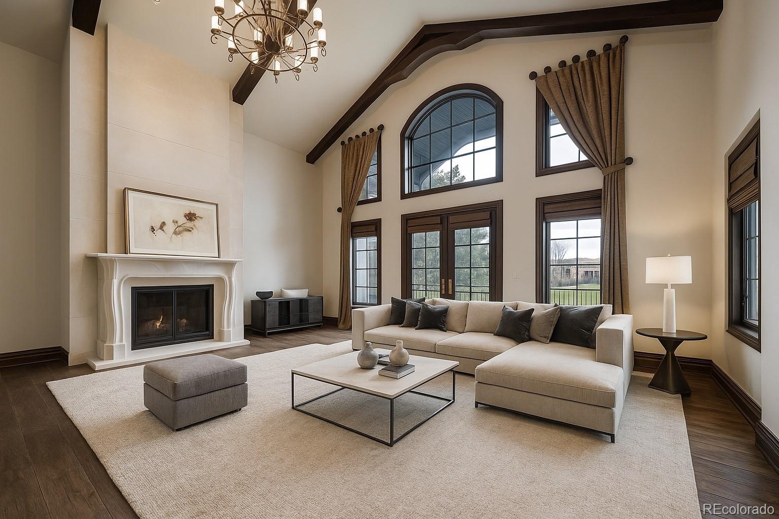 For the Most Discerning buyer seeking Unmatched Elegance, Convenience, and Colorado lifestyle, this Extraordinary Estate Home nestled within the Pristine Fairways of Cherry Creek Country Club delivers an Uncompromising blend of Luxury and Timeless Design. The Effortless Flow of the home is felt immediately upon entry, where Expansive Windows invite Abundant Natural Light and frame Serene Views of the golf course and lush surroundings. At the heart of the main level is a Majestic Great Room adorned with Vaulted, Beamed Ceilings, creating a warm yet impressive centerpiece for daily living and entertaining. The chef’s kitchen is a dream, equipped with high-end Viking appliances, generous prep areas, a large island, and seamless connection to the dining spaces. A well appointed Butler’s Pass with wine fridge enhances the home’s effortless capabilities. The coveted Main Floor Primary Suite offers refined finishes with spa qualities and Steam Shower, while a Sophisticated Study/Library provides added space for work or reading. Outdoor living is showcased with an expansive upper terrace with unforgettable Colorado sunsets. The Walkout Basement Family Room expands the living experience with a full wet bar featuring a Mini Viking Refrigerator and Dishwasher. Just outside, a covered patio invites year-round enjoyment and connects gracefully to the upper level through a striking spiral staircase, enhancing the harmonious flow between indoor and outdoor living. Additional comforts include a Heated Driveway, Three car garage plus dedicated Golf Cart Bay, 943 square feet of extra storage and a thoughtfully integrated elevator offering ease of movement between levels. Living in Cherry Creek Country Club provides a resort-style experience with private club membership (available separately), granting access to the Jack Nicklaus Signature golf course, dining, fitness, spa, tennis, pickleball, and a 24-hr gated entrance. This Exceptional Property embodies refined living at every turn.