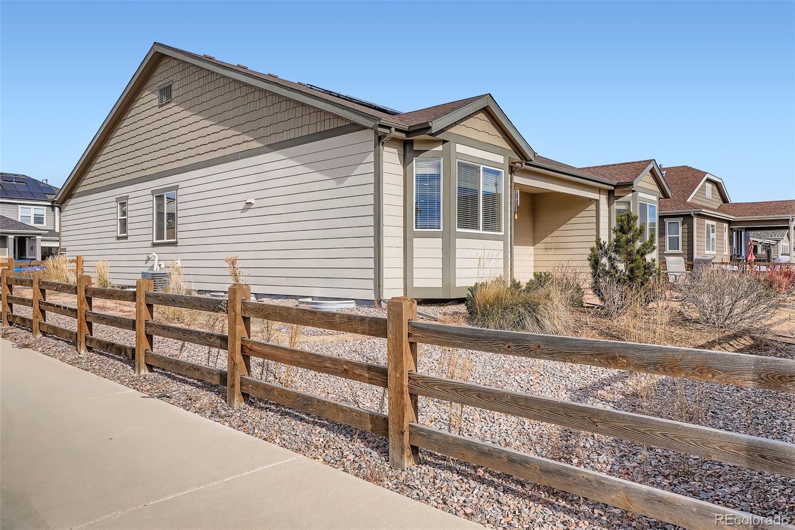 MOTIVATED SELLERS! Welcome to this corner-lot BEAUTY in highly sought-after Cobblestone Ranch a personal retreat crafted for COMFORT, functionality, and effortless living. This thoughtfully designed 3-bed, 3-bath ranch blends modern ELEGANCE with wide-open spaces, offering the freedom to live LARGE without the upkeep of a sprawling home. Step inside to an inviting open-concept main level filled with natural light. At the HEART of the home, the gourmet kitchen seamlessly connects to the living and dining areas, creating an ideal setting for entertaining, relaxing, or hosting unforgettable gatherings. The HIDDEN door oversized primary suite serves as a true SANCTUARY, providing PEACEFUL mornings, RESTFUL evenings, and plenty of room to UNWIND. Convenient main-floor laundry adds to the ease of everyday living. The finished basement EXPANDS your living space with flexibility and STYLE, featuring a media-ready area, that includes guest bedroom that has ANOTHER HIDDEN DOOR, full bath, and abundant storage perfect for hobbies, gear, and seasonal items. OUTDOORS, enjoy a private backyard designed for low-maintenance relaxation. It’s the perfect spot for morning coffee, casual get-togethers, or evenings under the Colorado sky. Additional highlights include a dedicated home office, a spacious 2-car garage, and SELLER OWNED solar panels that offer valuable long-term energy SAVINGS. This home delivers a polished, carefree lifestyle in a vibrant Castle Rock community. Sophisticated, Sun-Filled Living in Castle Rock Where Style Meets Ease! SCHEDULE a showing today!!