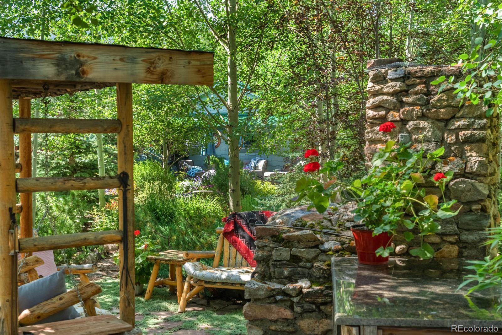 South-facing mountain hideaway in a Secret Garden. Surrounded by a true privacy fence with fairy lights for nighttime, a roaring fireplace for cool evenings, plus nooks and room for fountains in different hidden areas of the magical garden to experience with morning coffee, evening wine time... as the daylight changes. Lots 12 & 13, Block 19 #717 Lake Avenue $768,000 If you choose to share your new property with others, offer garden tours... Let it be an extraordinary venue for weddings, family reunions, a place for co-workers to gather during a mountain retreat, community events... The carport provides an option to enjoy the party, no matter what the weather. The restroom inside should be enough to accommodate the number of guests you will host. After a wedding, the newlyweds could even spend the first night of their honeymoon right here on site in the cozy cabin in the Secret Garden, re-living the day's memories. Only a special few have been invited inside the gate over the years and the tall privacy fence has heightened the curiosity of those who walk by; it preserves the magic.