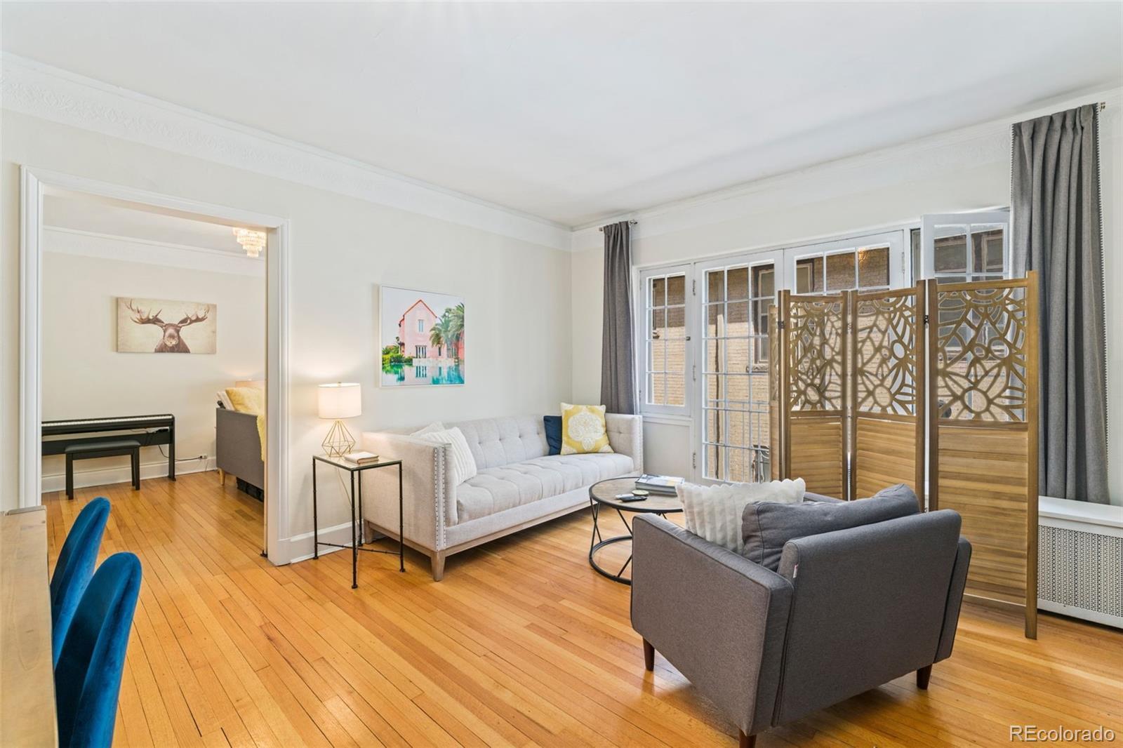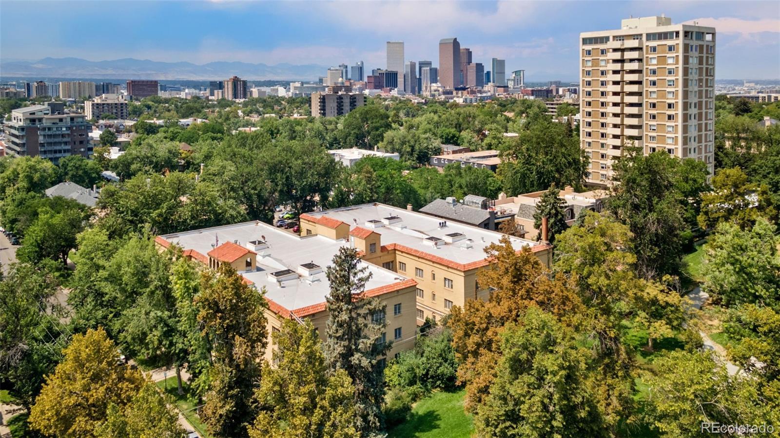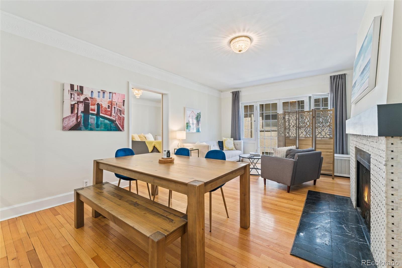 Welcome to the Waldman at Cheesman Park. Step inside this European inspired condo and experience timeless elegance in the heart of downtown Denver. Built in 1923 by the award winning architectural firm Fisher & Fisher, all of the original Art Deco details remain intact: large French windows, high ceilings, rich hardwood floors, wide hallways, and stained glass windows. The building has managed to keep it's character, while also being upgraded for 2025. This beautiful and historic condo offers a big primary bedroom and views of a private courtyard overlooking the park. Blissfully peaceful, and just minutes from the capital of Colorado! A fully updated bathroom and kitchen will better suit the modern lifestyle - stainless appliances, new countertops, tile backsplash, and a gas range. A curated office area with built-in cabinetry & crown molding exudes tasteful and timeless charm. You can only find that character in a historic building like the Waldman. The main living space has Juliet balconies that allow the perfect amount of natural light to shine into the home, and a fireplace that is wonderful for the snowflake covered winter days. The formal dining space can easily be converted into a 2nd bedroom at the discretion of the next owners. Don't forget your butler's entry to make sure groceries go straight to the kitchen once you arrive home, and that huge hallway of built in storage closets. Authentic turn of the century charm. This condo is a Denver gem! There is a covered parking spot in the garage and plenty of street parking for visitors. Membership to the Denver Botanic gardens included with ownership. Pablo's Coffee Shop, City o' City, Angelo's, Byblos Cafe, and Whole Foods all within 'short walk' distance. Come experience authentic Denver for yourself in the heart of downtown. Click the Virtual Tour link to view the 3D walkthrough. Discounted rate options and no lender fee future refinancing may be available for qualified buyers of this home.