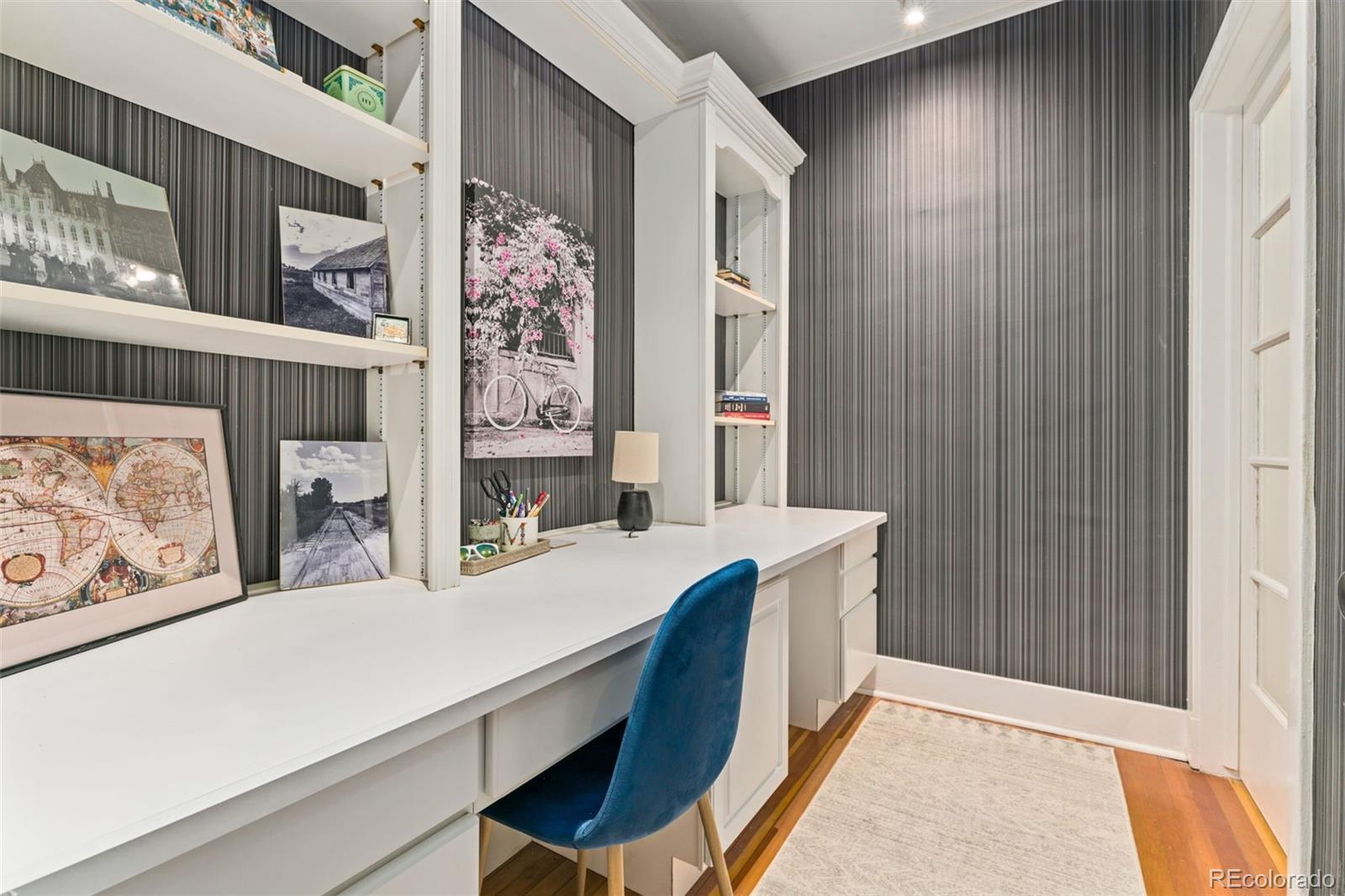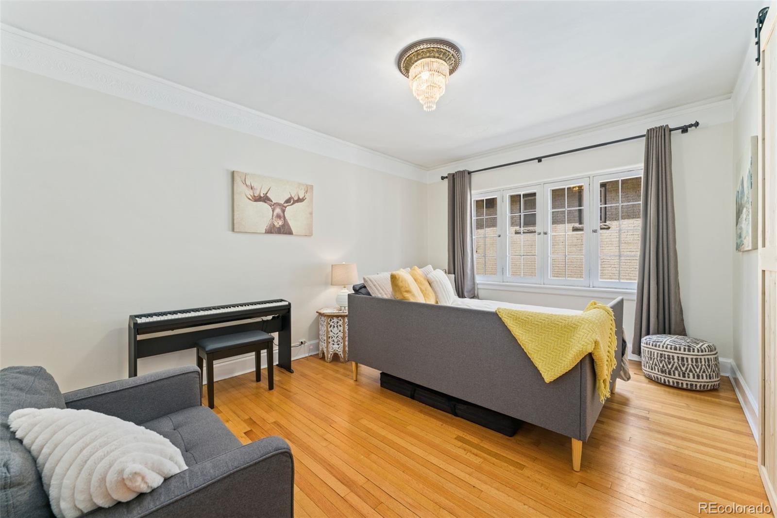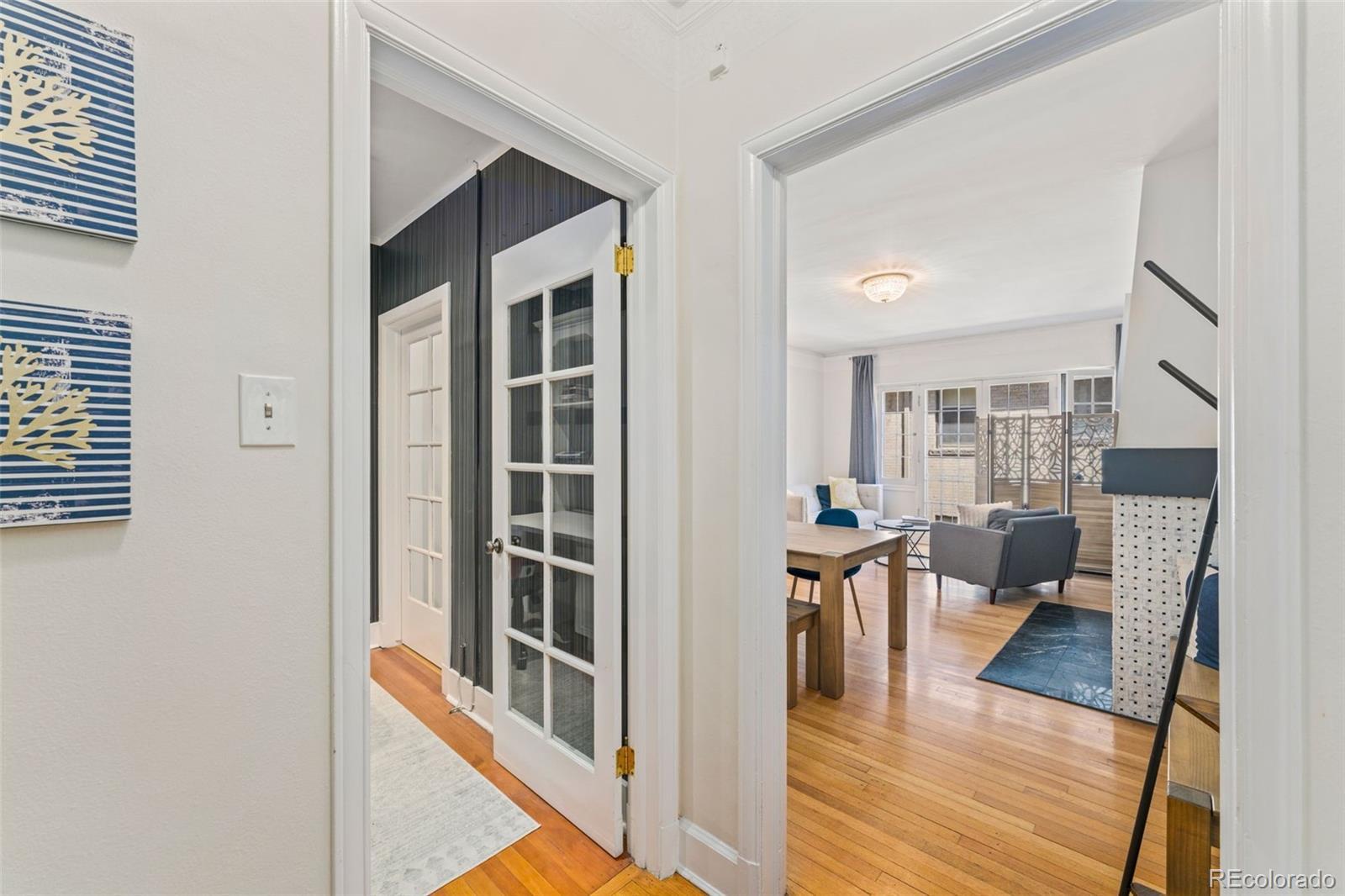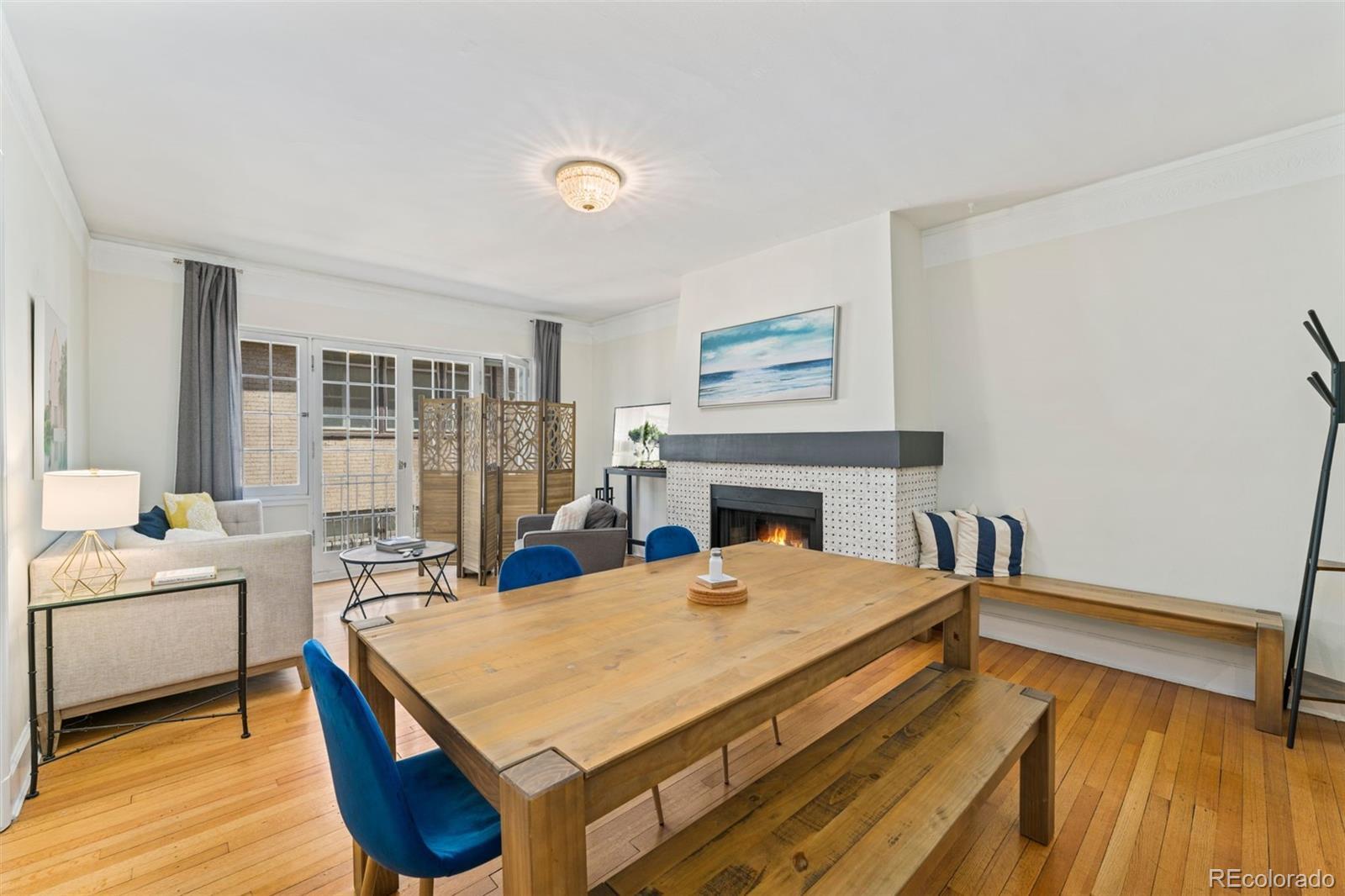 Welcome to the Waldman at Cheesman Park. Step inside this European inspired condo and experience timeless elegance in the heart of downtown Denver. Built in 1923 by the award winning architectural firm Fisher & Fisher, all of the original Art Deco details remain intact: large French windows, high ceilings, rich hardwood floors, wide hallways, and stained glass windows. The building has managed to keep it's character, while also being upgraded for 2025. This beautiful and historic condo offers a big primary bedroom and views of a private courtyard overlooking the park. Blissfully peaceful, and just minutes from the capital of Colorado! A fully updated bathroom and kitchen will better suit the modern lifestyle - stainless appliances, new countertops, tile backsplash, and a gas range. A curated office area with built-in cabinetry & crown molding exudes tasteful and timeless charm. You can only find that character in a historic building like the Waldman. The main living space has Juliet balconies that allow the perfect amount of natural light to shine into the home, and a fireplace that is wonderful for the snowflake covered winter days. The formal dining space can easily be converted into a 2nd bedroom at the discretion of the next owners. Don't forget your butler's entry to make sure groceries go straight to the kitchen once you arrive home, and that huge hallway of built in storage closets. Authentic turn of the century charm. This condo is a Denver gem! There is a covered parking spot in the garage and plenty of street parking for visitors. Membership to the Denver Botanic gardens included with ownership. Pablo's Coffee Shop, City o' City, Angelo's, Byblos Cafe, and Whole Foods all within 'short walk' distance. Come experience authentic Denver for yourself in the heart of downtown. Click the Virtual Tour link to view the 3D walkthrough. Discounted rate options and no lender fee future refinancing may be available for qualified buyers of this home.