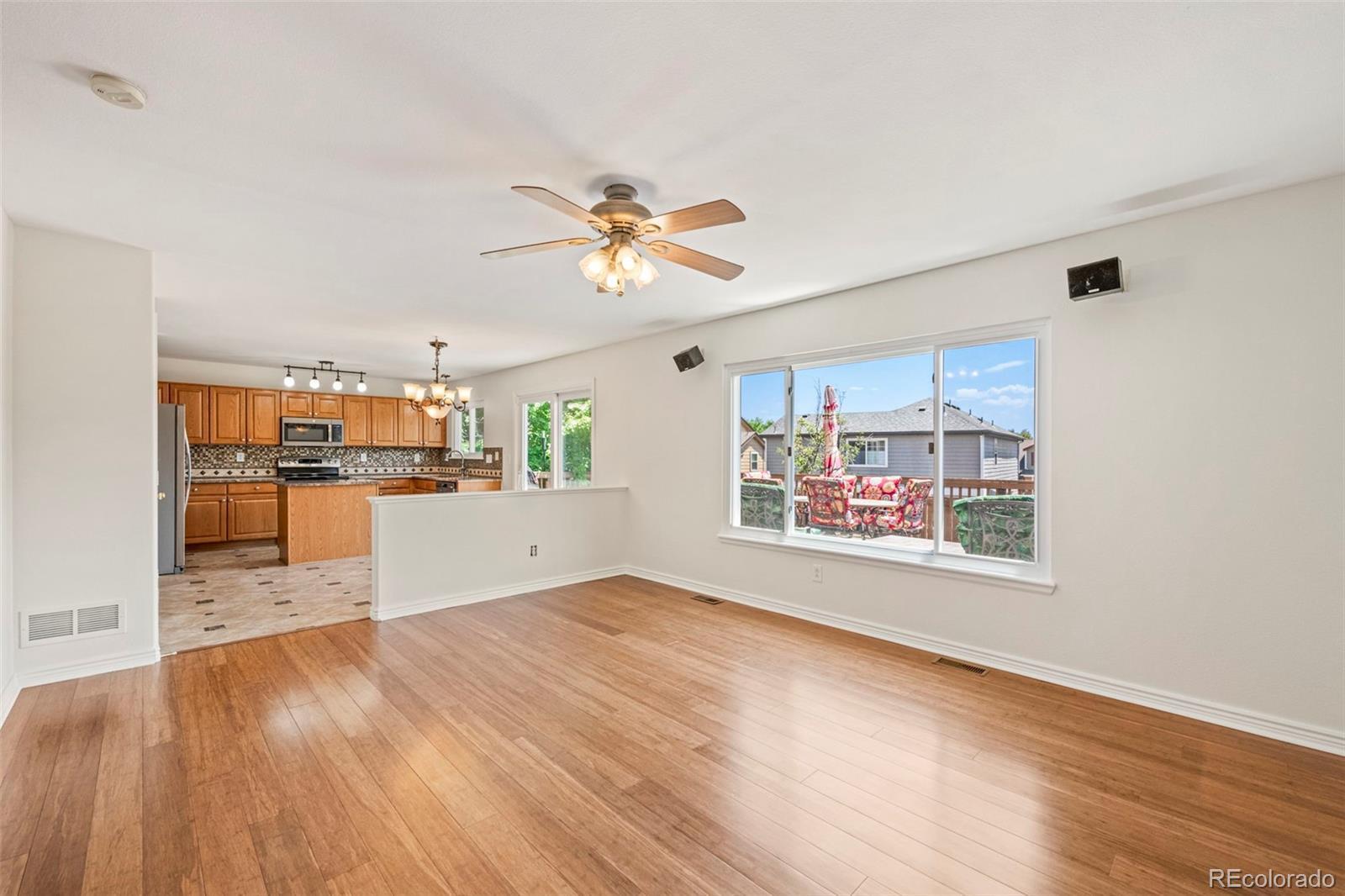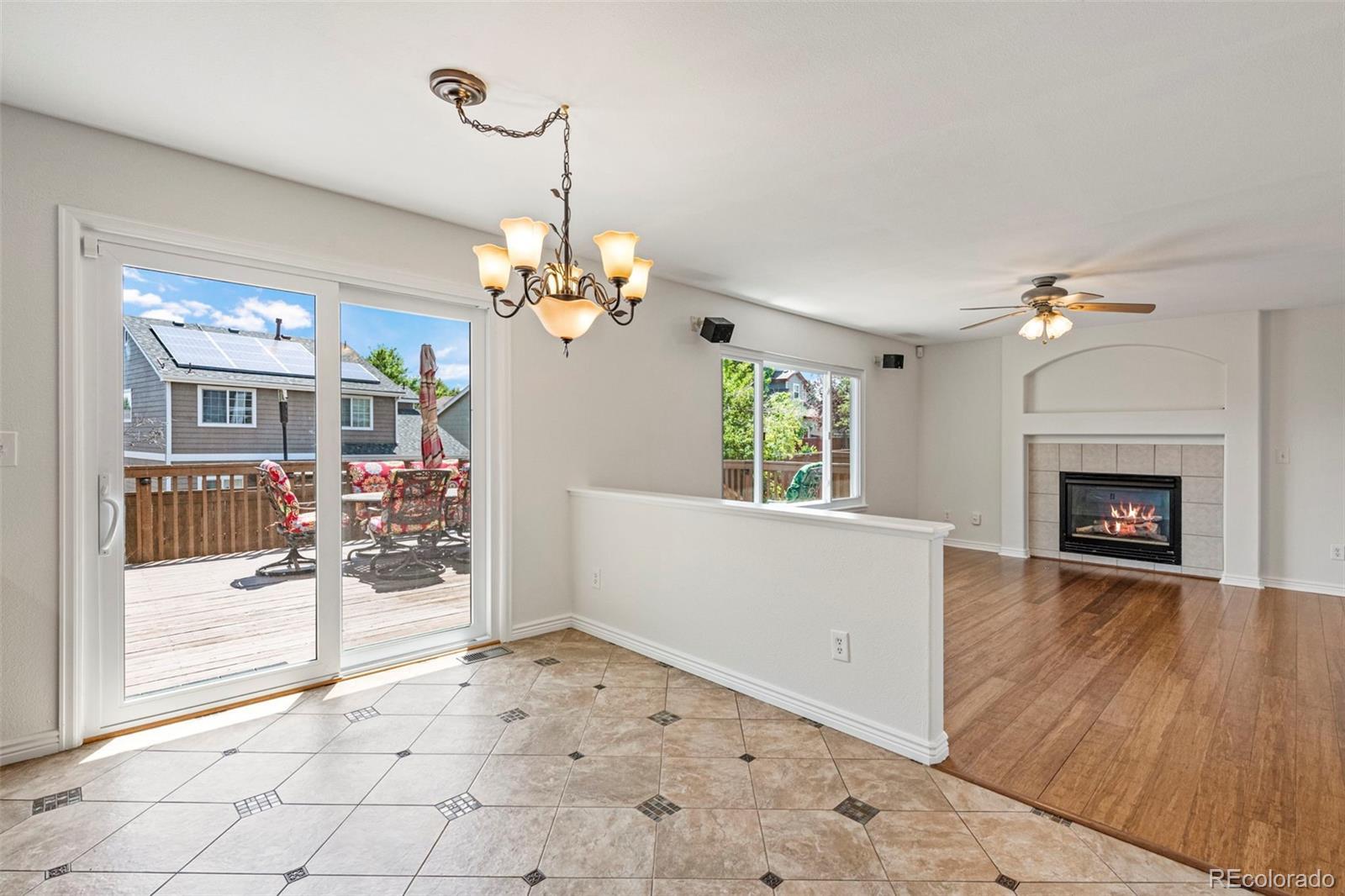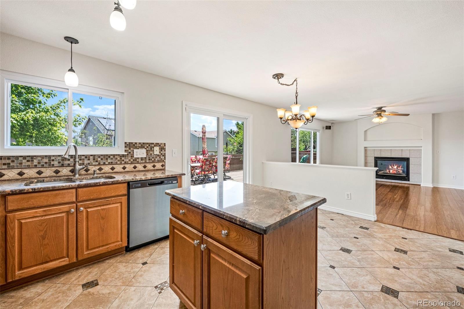Nestled in a quiet pocket of Highlands Ranch and just steps from Arrowwood Elementary, this spacious five-bedroom, three-bath single-family home offers comfort, style, and convenience. The high ceilings in the living room welcome you with natural light and warmth, complemented by a cozy gas log fireplace in the nearby family room. The main-floor bedroom can easily serve as a spacious office. The open-concept kitchen boasts granite countertops and sleek stainless steel appliances—perfect for entertaining or daily living. Step outside to enjoy a large wood deck ideal for summer barbecues, all framed by a beautifully maintained backyard. The freshly painted interior adds a crisp, updated touch throughout, while all-new energy-efficient windows installed in 2021 ensure year-round comfort and savings. A two-car garage provides ample storage and convenience. Located near the Southridge Rec Center and the scenic Highlands Ranch Backcountry wilderness area with trails, this home blends suburban tranquility with access to nature and community amenities. A one-year home warranty adds peace of mind to your investment.
