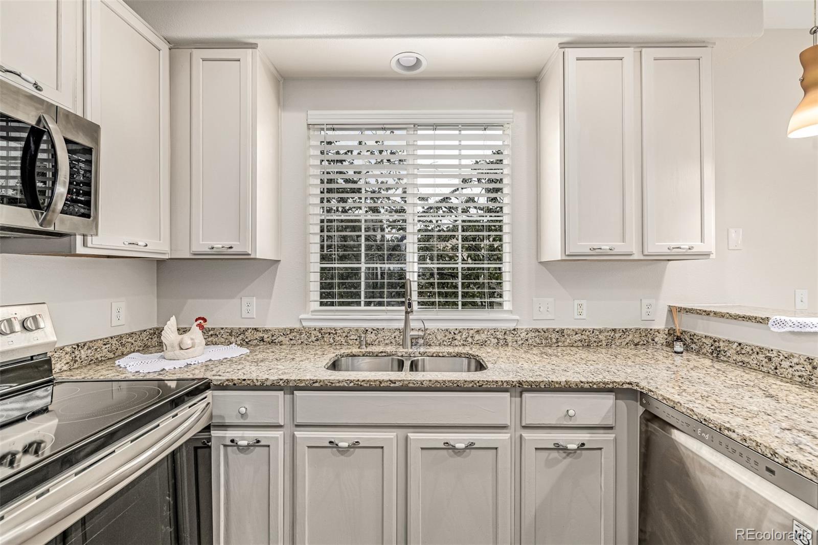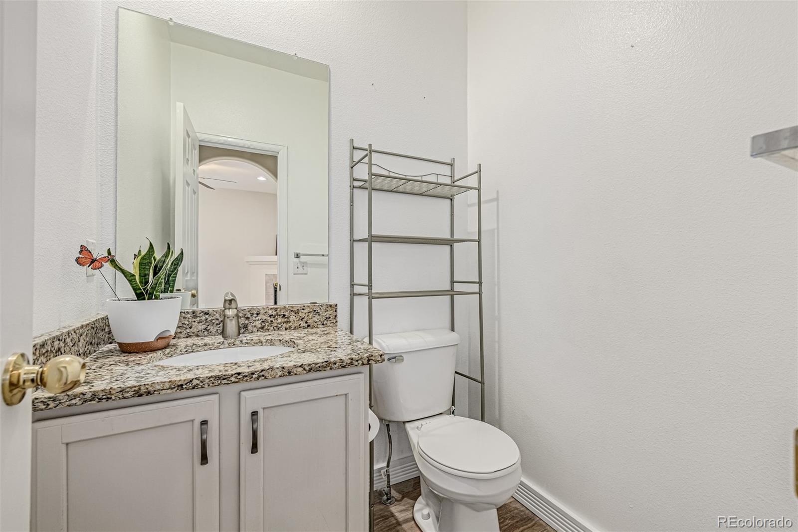 *Likely Assumable FHA Loan, Interest Rate: 3.375* Welcome to your home in Terrace at Columbine!*BRAND NEW FLOORING ON MAIN FLOOR & FRESH PAINT! NEW KITCHEN APPLIANCES, NEWLY REBUILT FURNACE, NEW AC, NEW WATER HEATER, NEW ROOF, NEW PORCH/SIDEWALK*This beautifully maintained 2 story residence is a perfect blend of comfort & style, showcasing a beautiful facade with classic wood siding and tasteful brick veneer accents. As you approach you'll notice the charming front porch, where you can sit back and enjoy your morning coffee. Come inside to discover a modern yet homely atmosphere, with a custom palette and soft carpet underfoot in all the right places. The central living area boasts a gas log fireplace to keep you and your loved ones warm and cozy during the coming winter months. You'll also find a formal dining area with a stylish chandelier and direct outdoor access, the perfect place for hosting a memorable dinner party! The gorgeous kitchen lies just to side, equipped with everything the aspiring chef needs, ample white cabinetry, polished granite countertops, recessed lighting, and high-end stainless steel appliances. Additionally, the main level also includes a powder room for the convenience of your guests. Continue upstairs and into the beautiful primary bedroom, a true retreat complete with vaulted ceilings, large windows for plenty of natural light, a walk-in closet for all your personal belongings & a full ensuite w/ elegant wood-look flooring and dual sinks. You will also find a second bedroom and full bathroom on the upper level. Don't forget about the the lovely balcony bathed in sunshine, it's the ideal place for setting up a small garden or relaxing after a hard day's work. Also including a 2-car rear entry garage with auto door opener, and nestled right next to one of the Community's lush greenbelts, this is the one! Easy access to all transportation, foothills, reservoirs, hiking/biking, shopping, restaurants and more!
