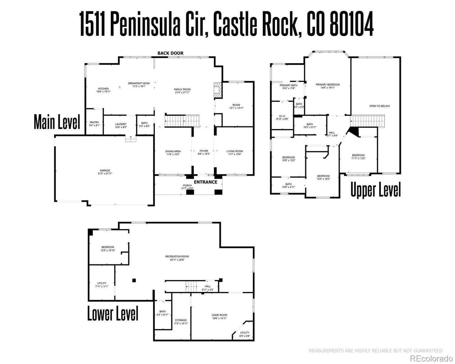 Renovated and move-in ready home with instant equity- recently appraised at $1,000,000. Nearly 4,700 sqft of finished living space on the 10th hole of Plum Creek Golf Course, New High efficiency Furnace and AC, Custom 5 piece master suite, Finished basement with wet bar, Open concept main floor with a walk in pantry, vaulted ceilings, gas fireplace, formal dining room, office, 3 car garage, Refinished hardwood floors, Upgraded high performance tile-like crack resistant LVP, New quartz countertops, ceiling fans in every bedroom, new carpet and fresh paint. Upstairs is the custom master suite complete with a walk-in shower and soaking tub, 3 bedrooms (2 conjoining with a jack and jill bathroom) and additional bathroom. Downstairs is complete with 2 large bedrooms, a full bathroom, wet bar, generous entertaining space with recessed lighting, additional storage space, large crawl space and fully accessible utility room. Easy access to I-25, downtown Castle Rock, shopping, dining, parks and top schools. Sellers are motivated and will seriously consider all offers.
