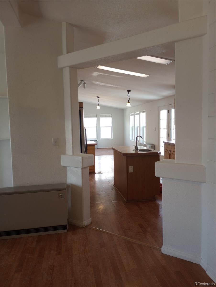 Modular UBC Not Mobile Home on permanent foundation. Homeowner is Licensed Independent Real Estate Agent Domestic Well. depth of approx 200 ft. Others in area restricted to household well and only approx 80 ft Attached to Grid Solar will be completely paid for at closing Growing neighborhood Updated light fixtures Amazing Views of Mt. Blanca Freshly Painted inside and out. Fenced yard Huge detached 2 car garage with a room for shop or office wood burning stove and insulated. Sold As Is
