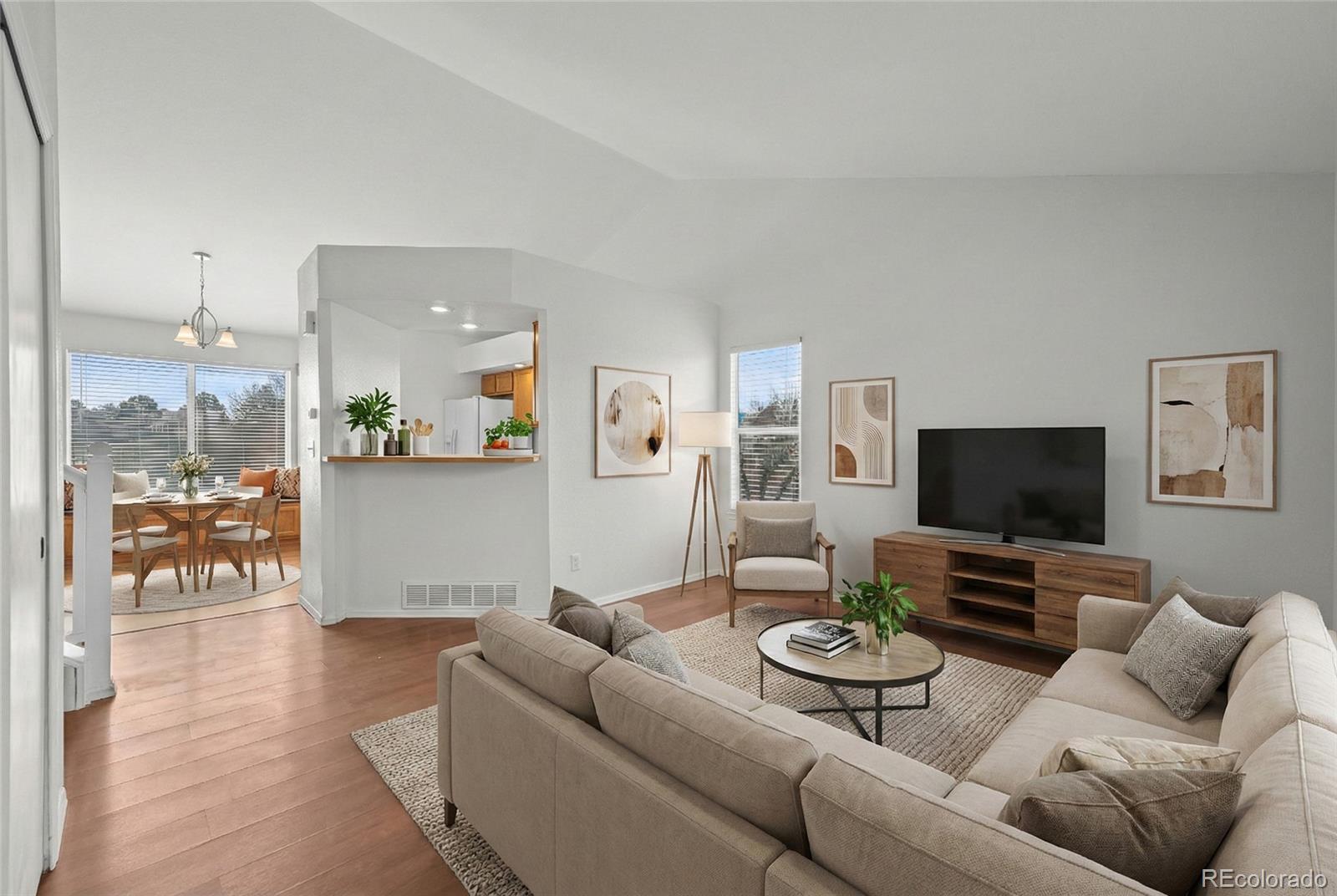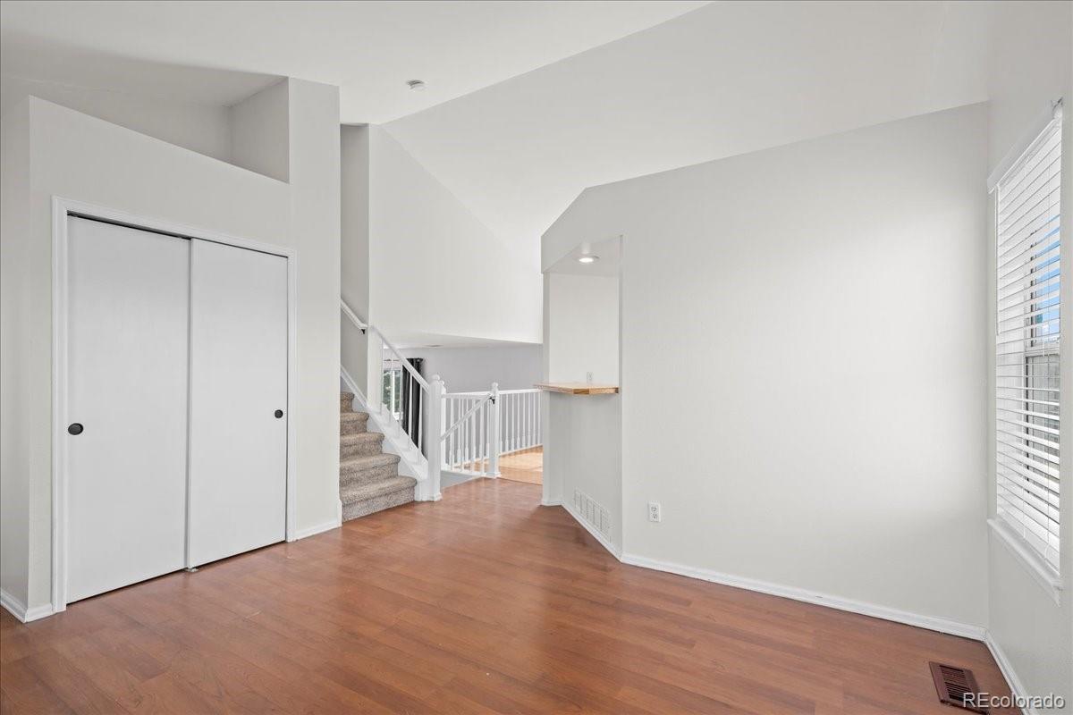 A rare find with a larger lot, this home offers added privacy with no neighbors directly behind or on one side, backing and siding to green space. A welcoming front porch leads into a bright living room with vaulted ceilings and large windows that bring in abundant natural light. The open kitchen and dining area are well suited for everyday living and include a cozy window seat. Just off the kitchen, the family room features a fireplace and sliding glass doors that open to a deck overlooking the backyard—ideal for outdoor dining and relaxing. Upstairs, the primary suite features vaulted ceilings, a walk-in closet, and a private bath. Two additional bedrooms and a full bathroom complete the upper level. The walk-out basement includes laundry and offers the opportunity to finish for additional living space. A large crawl space provides excellent storage with future build-out potential. The fully fenced backyard backs and sides to green space with no homes behind, creating a more private, natural setting—perfect for gardening, play, or entertaining. Recent improvements include a new roof, gutters, fresh paint, and smooth ceilings. Conveniently located near parks, trails, recreation centers, shopping, dining, and I-25, with McCoy Hills Park just up the street.