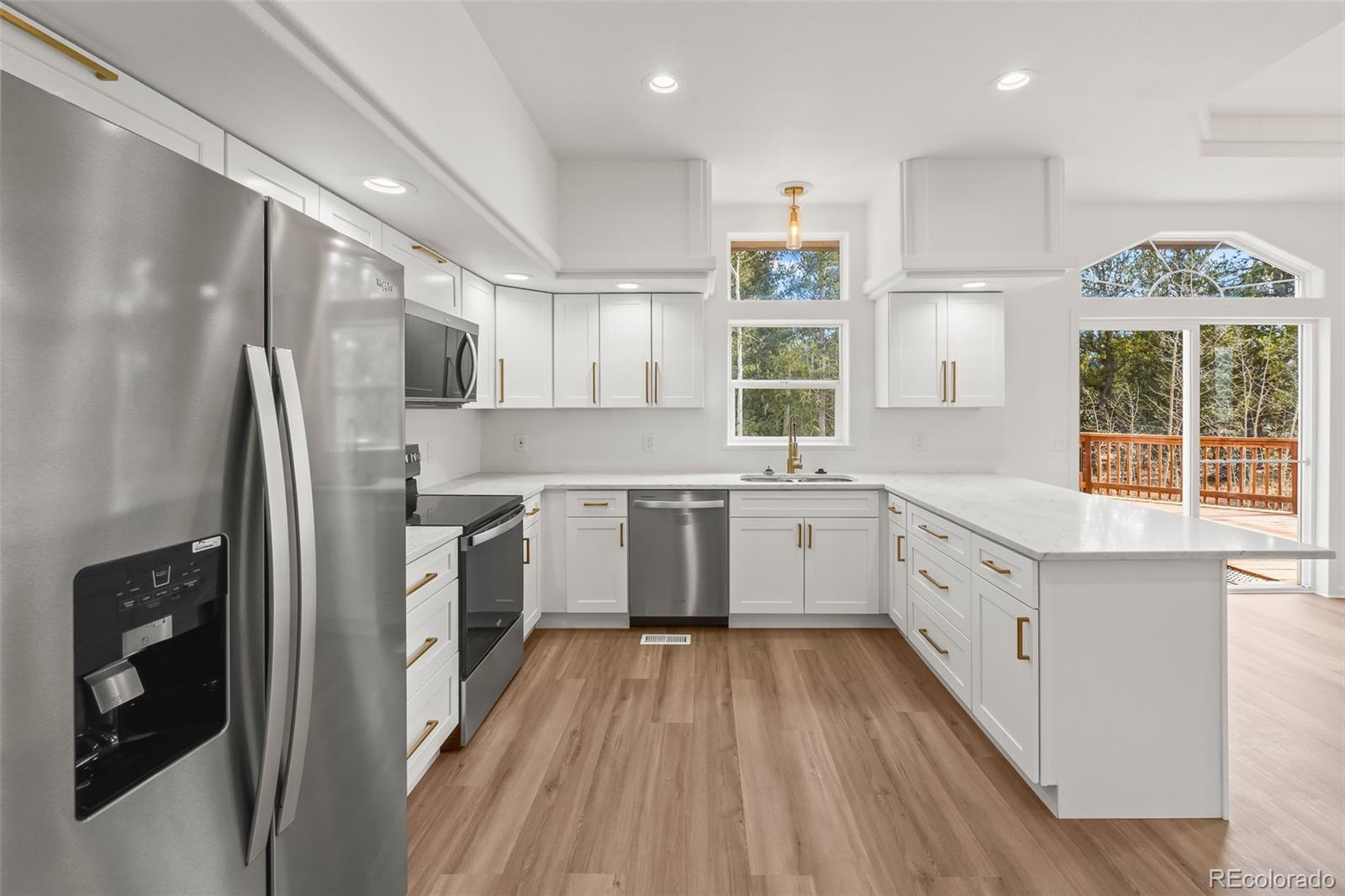 Discover your perfect mountain retreat in this fully renovated 3-bedroom, 2-bathroom home nestled on a heavily wooded, level lot in the heart of Fairplay, Colorado. This charming residence has been completely transformed with stunning new flooring throughout, gleaming stainless steel appliances, and beautiful new kitchen cabinets that create a modern yet cozy atmosphere. The thoughtfully renovated bathrooms add a touch of luxury to your daily routine. The primary bedroom offers a peaceful sanctuary, while two additional bedrooms provide flexibility for family, guests, or a home office. Step outside to enjoy your private outdoor space surrounded by towering trees that provide natural privacy and a true mountain living experience. Large wrap and deck and cover patio. Location couldn't be better for both relaxation and adventure. You'll find yourself close to local restaurants and shopping, making daily conveniences easily accessible. Nature enthusiasts will appreciate proximity to Horseshoe Campground for weekend getaways, while outdoor recreation beckons at nearby Mosquito Pass and Montgomery Reservoir. Winter sports lovers will delight in reasonable access to world-class skiing at Breckenridge and Keystone resorts. This gated community property offers excellent potential as a rental income opportunity, given the desirable location and recent renovations. Whether you're seeking a permanent mountain residence, vacation home, or investment property, this turnkey home delivers comfort and convenience in one of Colorado's most scenic settings. The level lot provides easy maintenance and plenty of space for outdoor activities year-round.